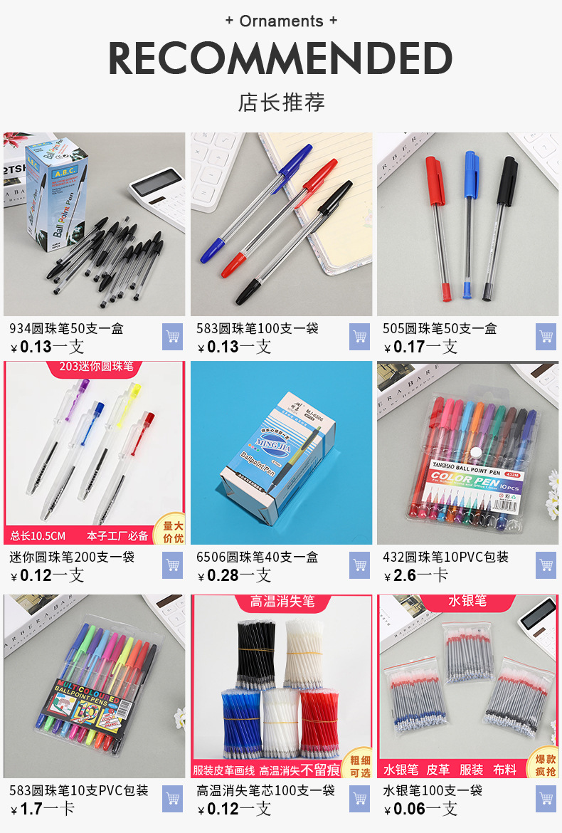 Fengting 문구 934 총알 유형 1.0 볼펜 잉크가 새지 않는 간단한 투명 볼펜 호텔 케이터링스토어 가기