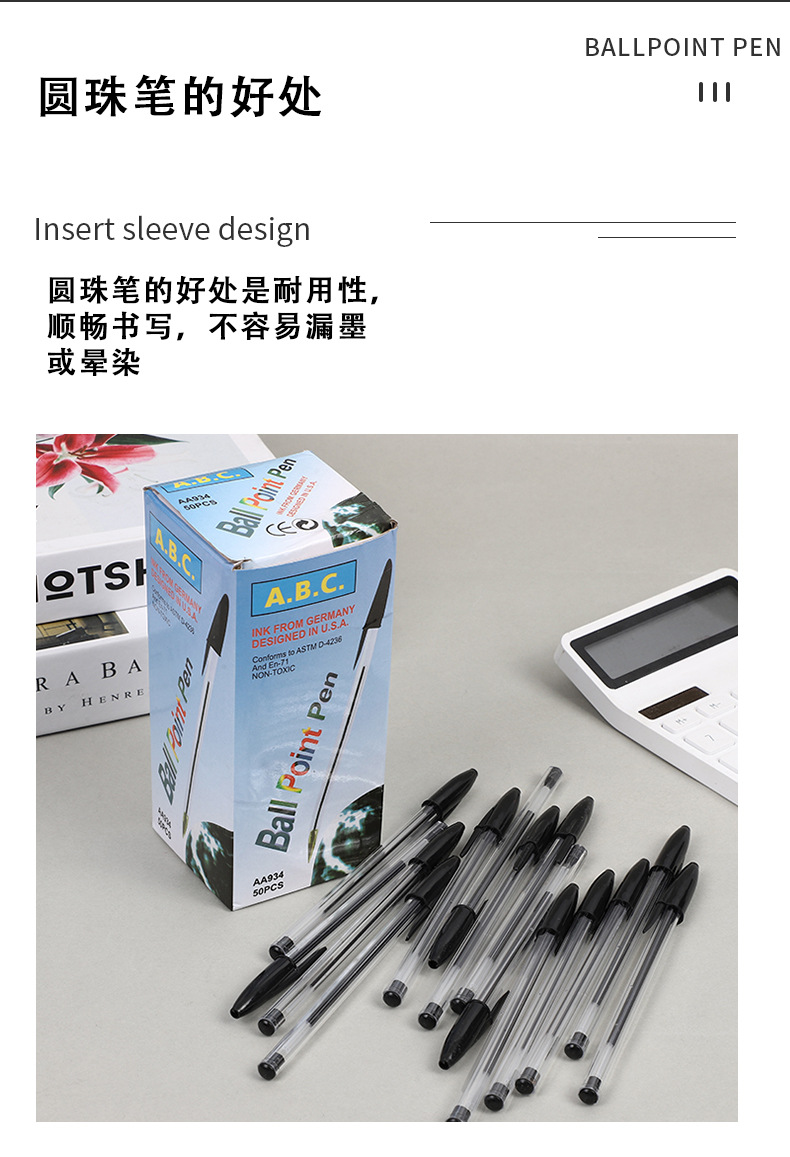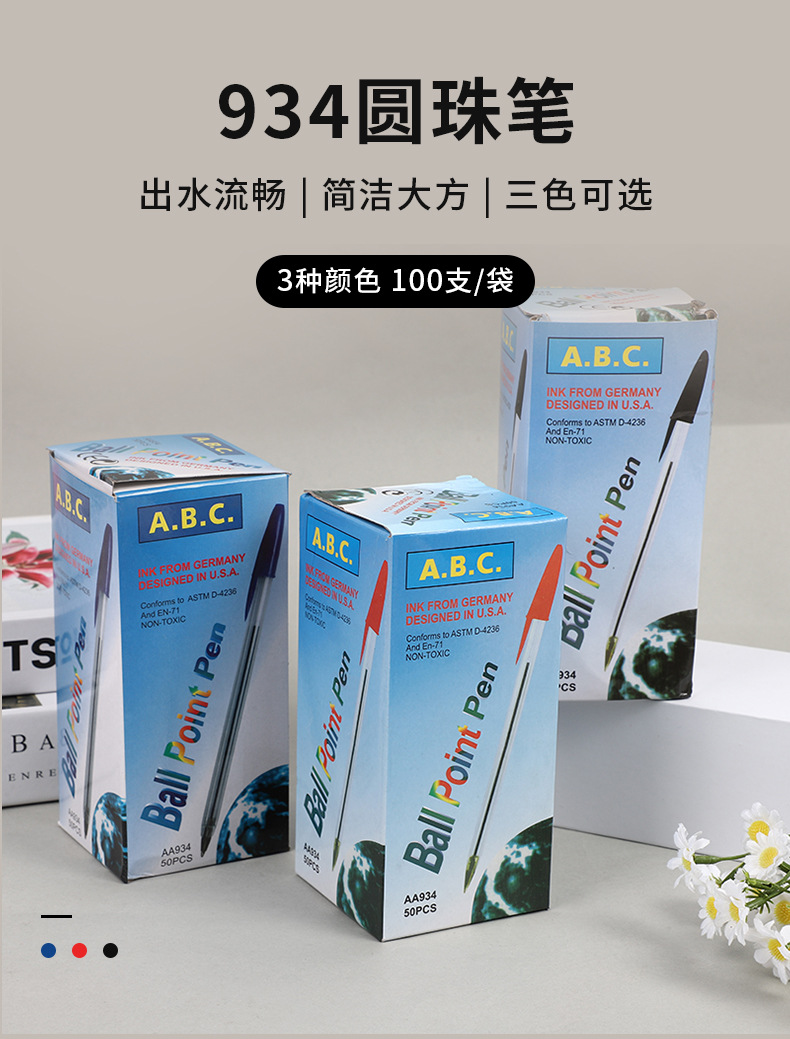 Fengting 문구 934 총알 유형 1.0 볼펜 잉크가 새지 않는 간단한 투명 볼펜 호텔 케이터링