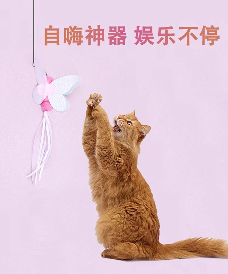공장 도매 폭발 재미있는 고양이 스틱 교체 헤드 봉제 나비 애벌레 마우스 교체 머리 전환 가능한 고양이 장난감