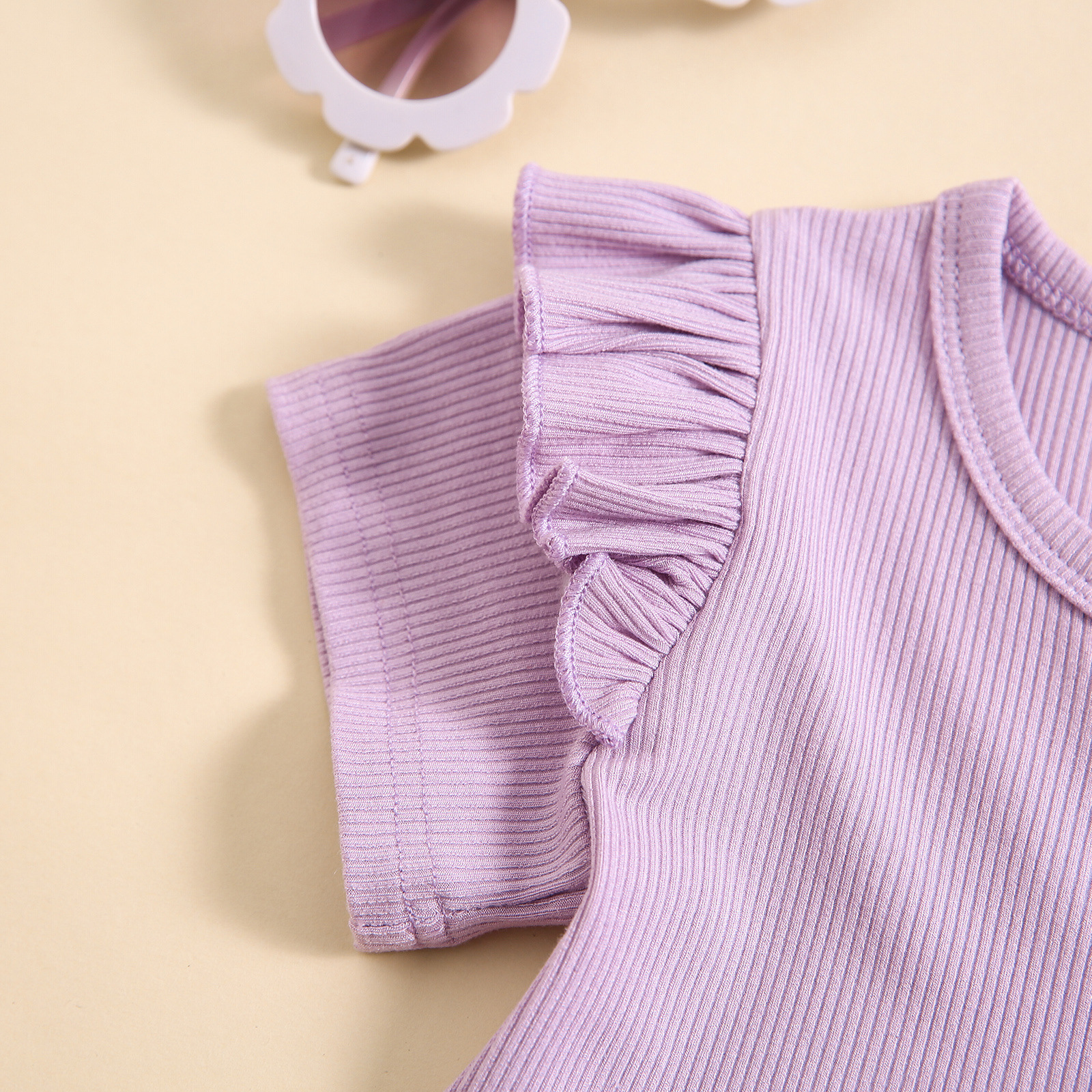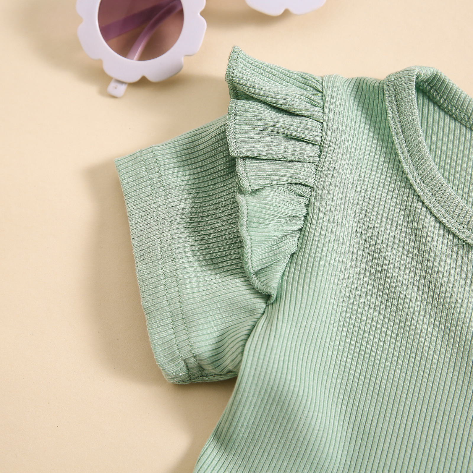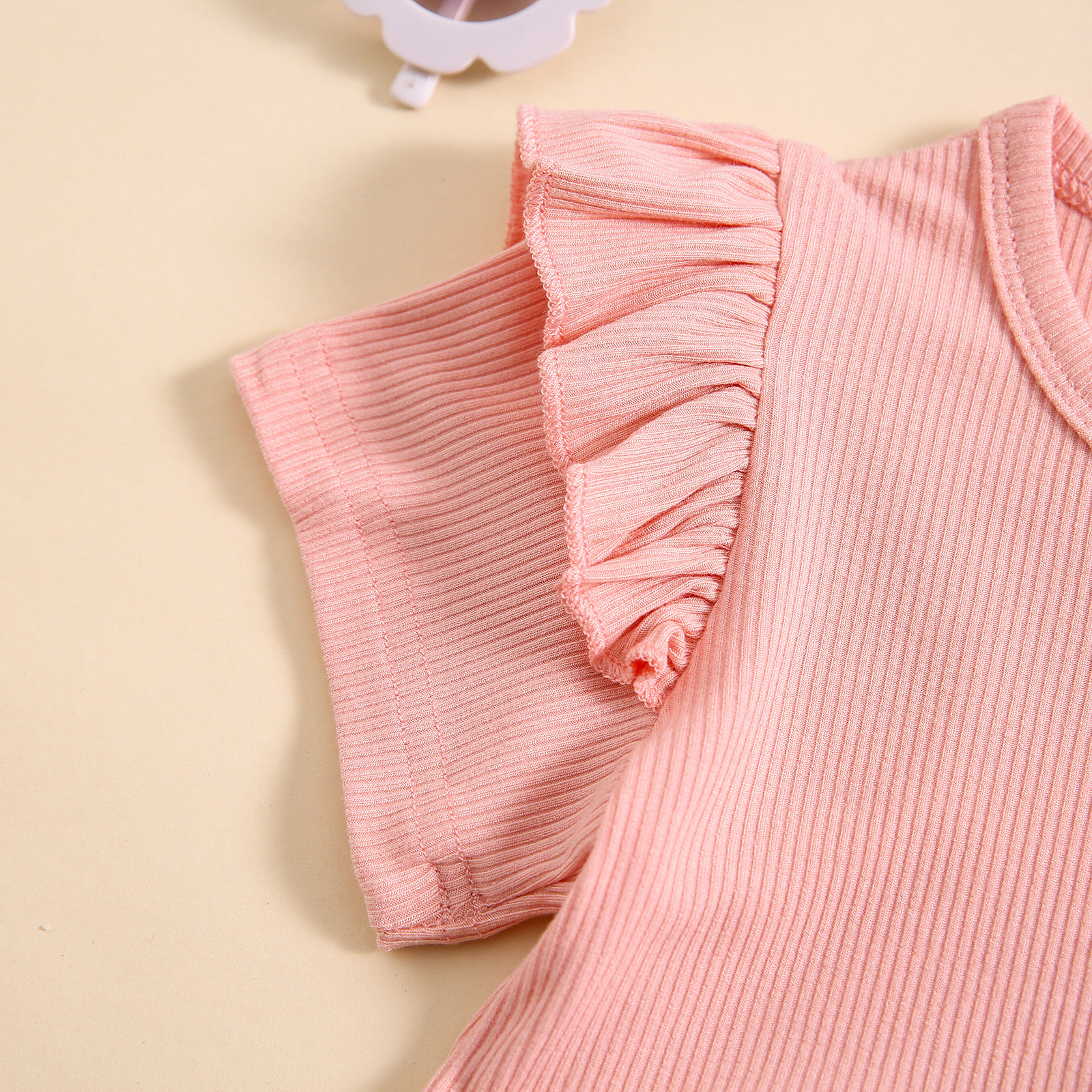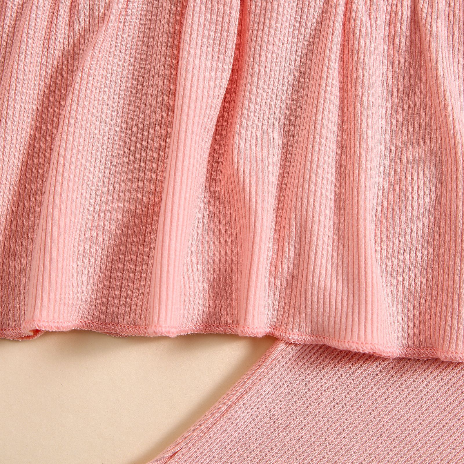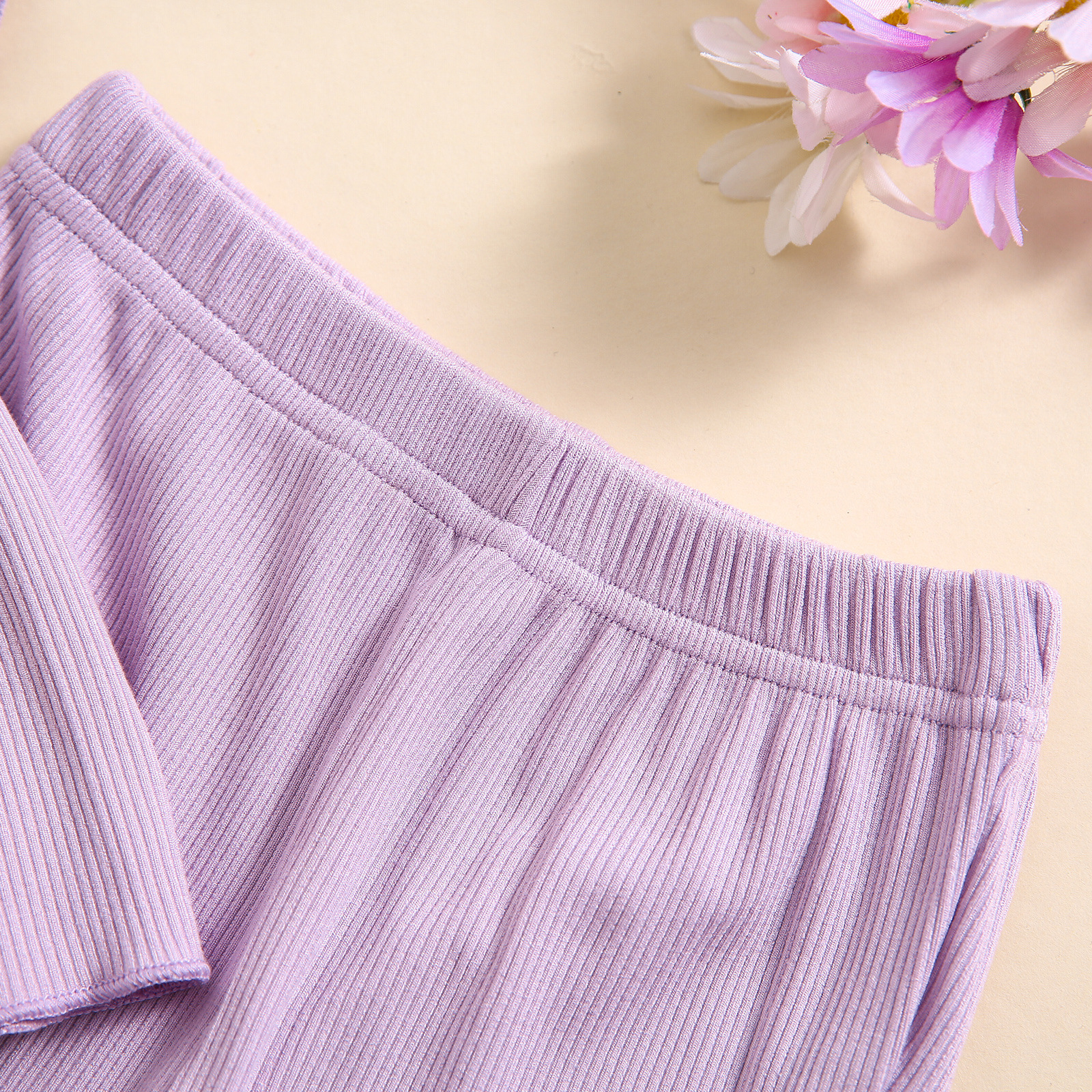 소녀 대외 무역 국경 새 피트 스트립 컬 버블 소매 단색 반팔 스커트 긴 플레어 바지 세트스토어 가기