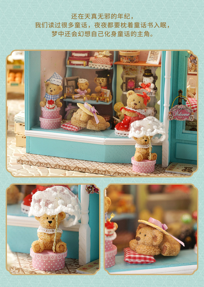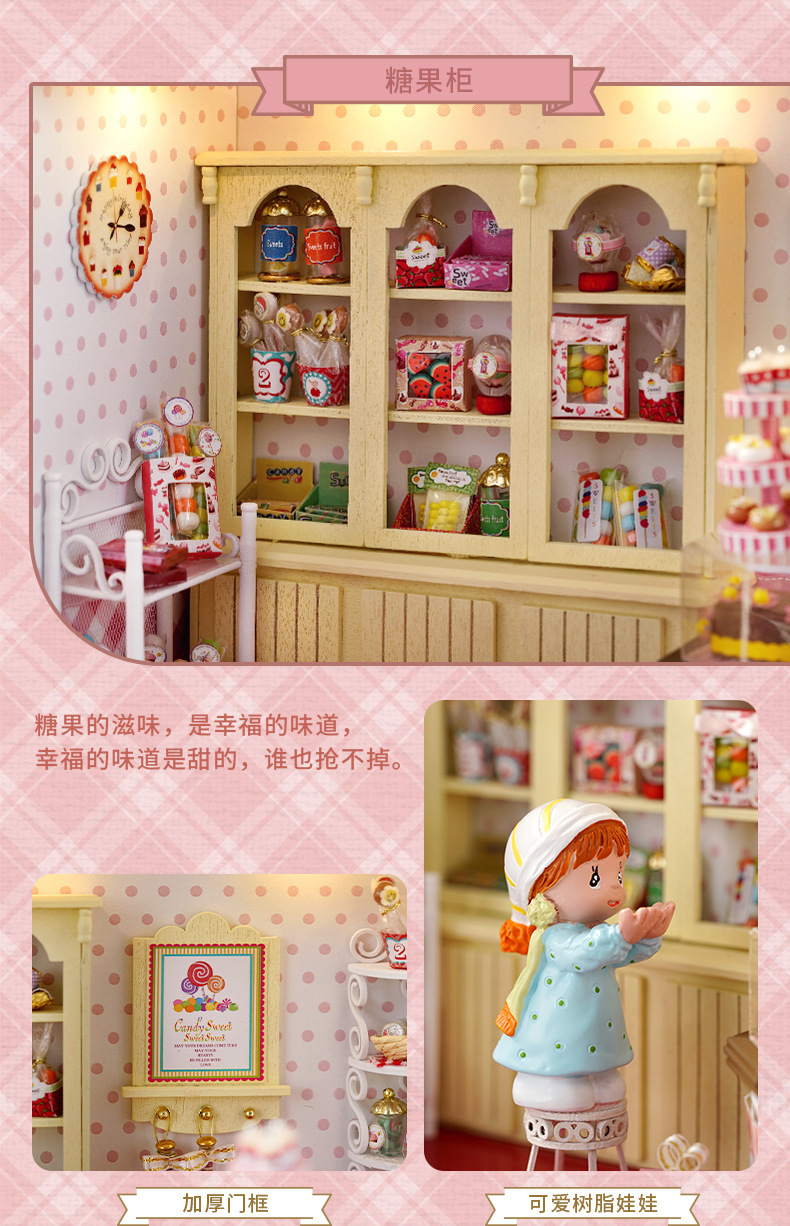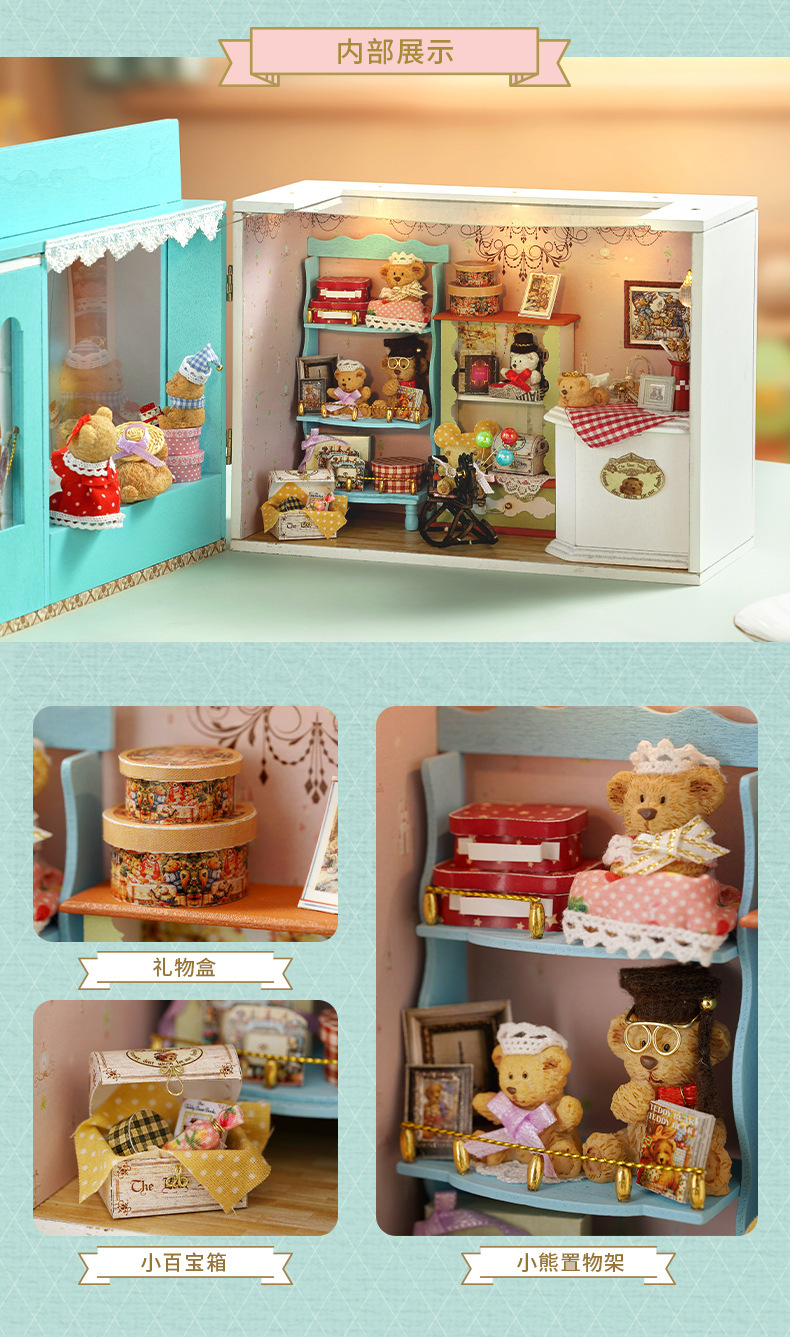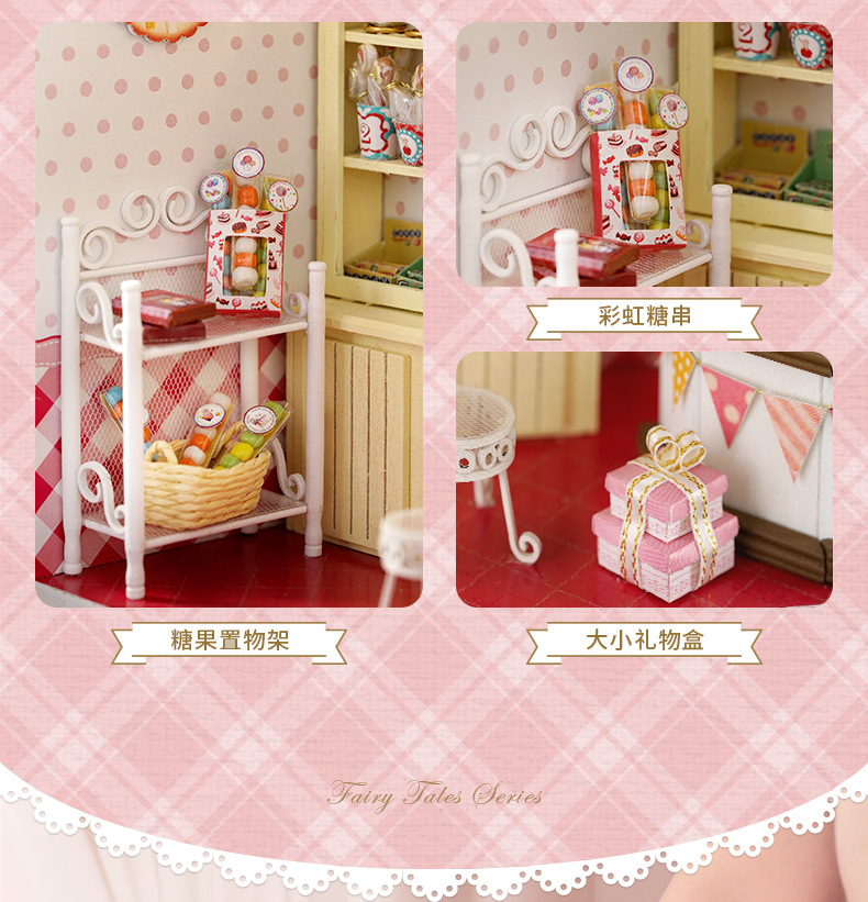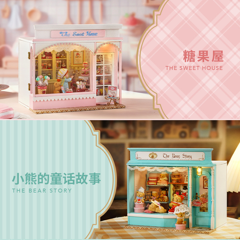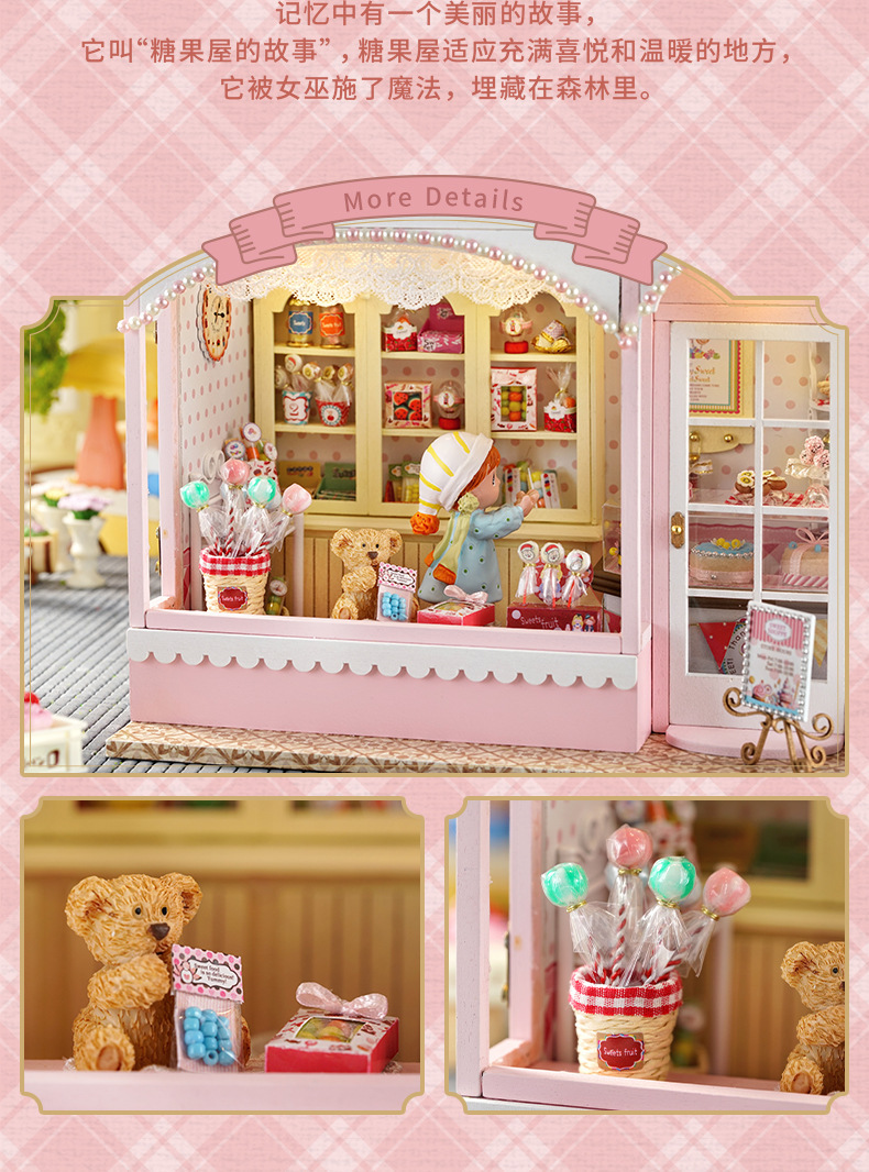 손으로 붙여 넣은 DIY 3 차원 퍼즐 미니어처 샵 장식품 사탕 곰 소녀들을위한 작은 집 생일 선물