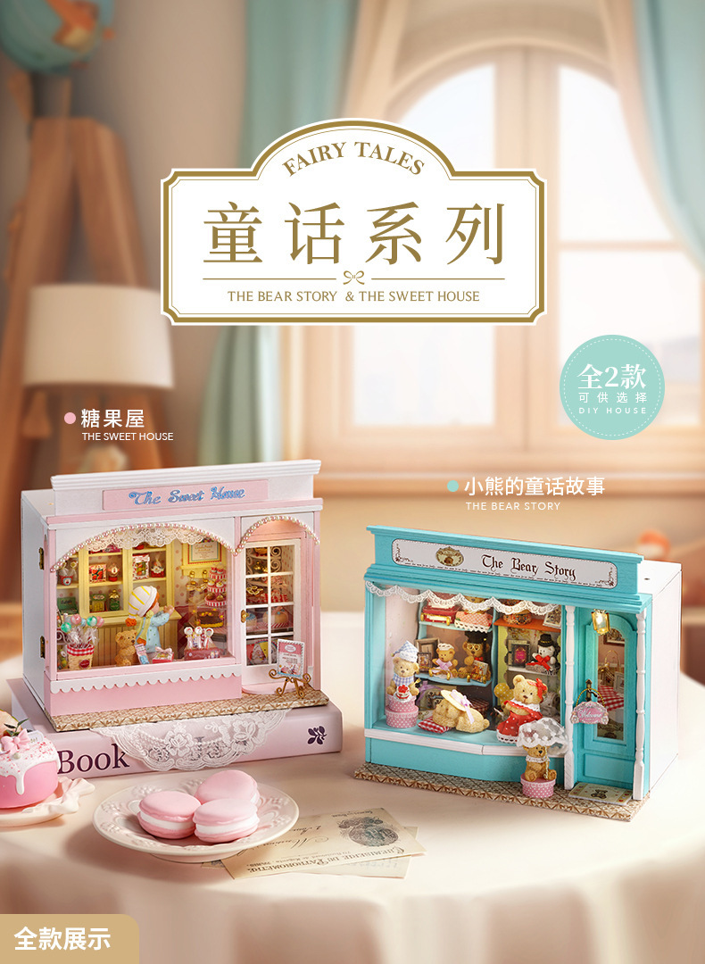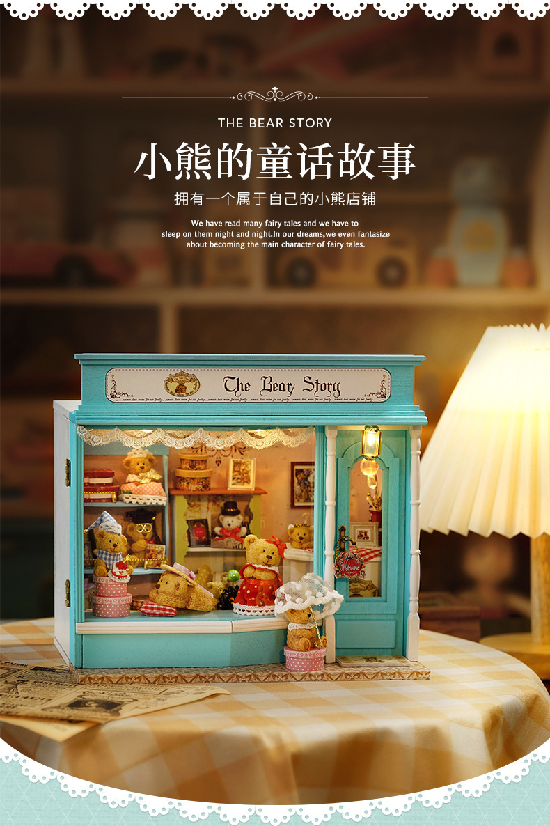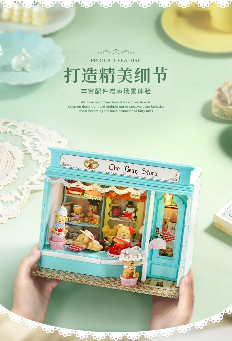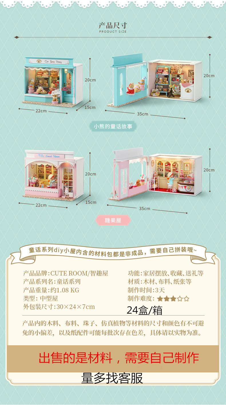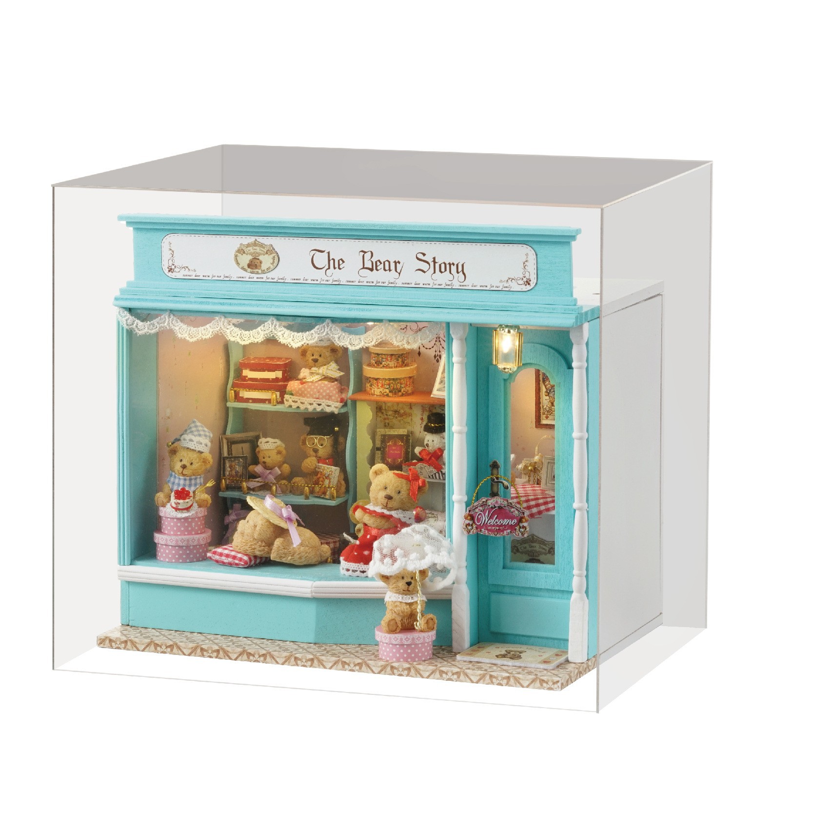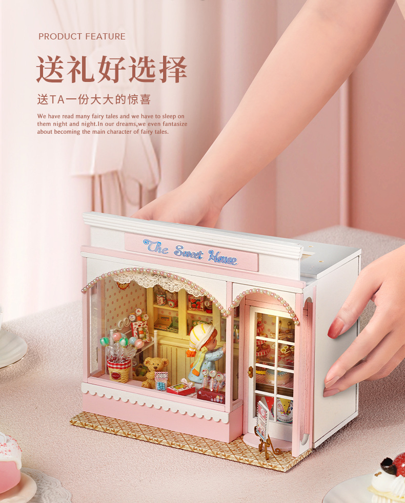 손으로 붙여 넣은 DIY 3 차원 퍼즐 미니어처 샵 장식품 사탕 곰 소녀들을위한 작은 집 생일 선물