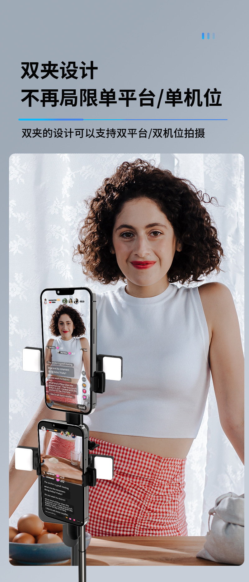 • 더블 필 라이트 듀얼 위치 1.7m 블루투스 원격 제어 알루미늄 합금 3 축 흔들림 방지