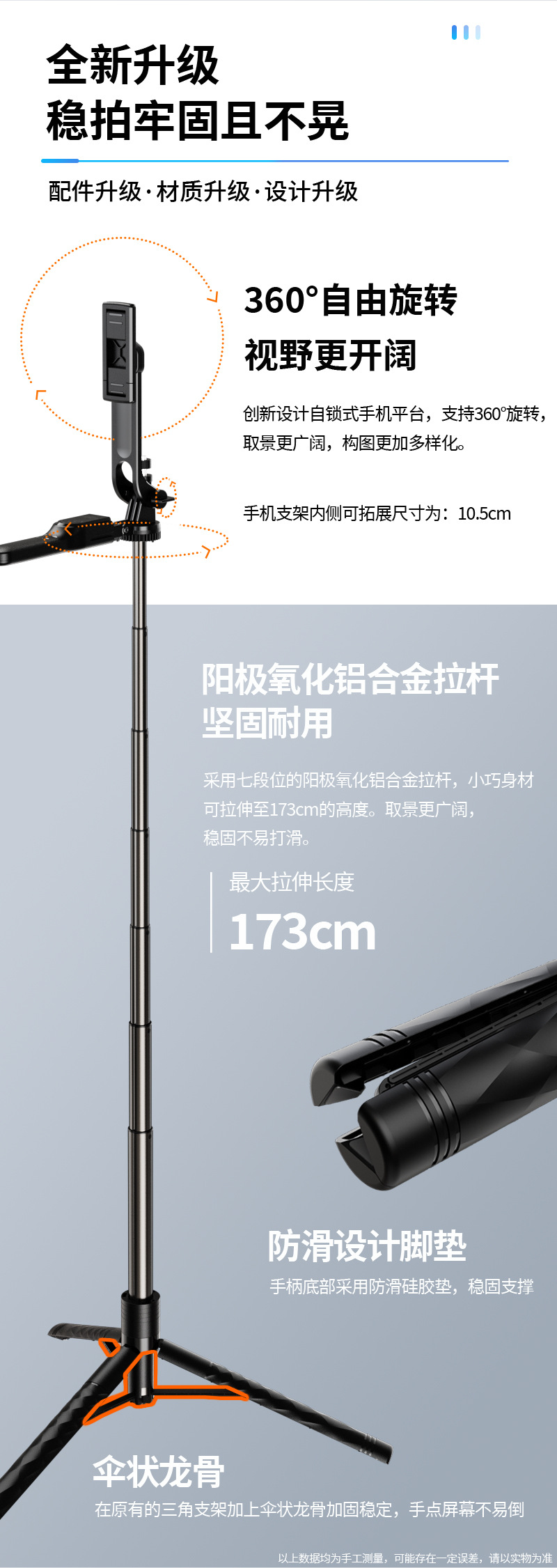 • 1.7m 블루투스 원격 제어 알루미늄 합금 3 축 흔들림 방지