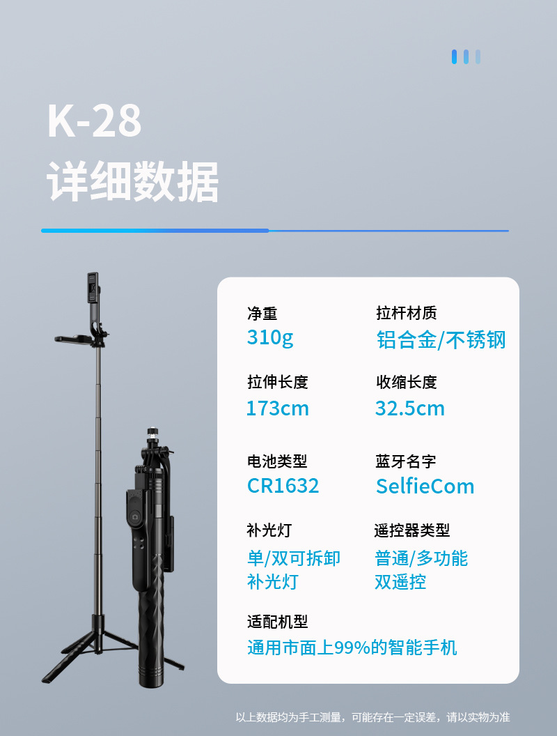 • 더블 보충 빛 1.7m 블루투스 원격 제어 알루미늄 합금 3 축 흔들림 방지