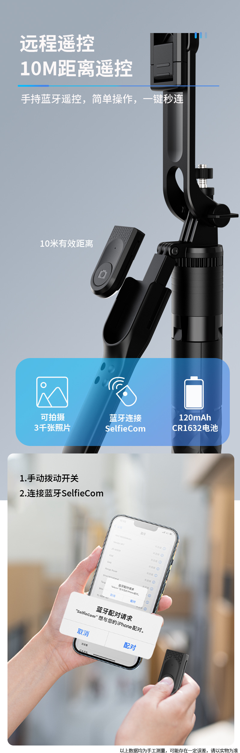 • 듀얼 위치 1.7m 블루투스 원격 제어 알루미늄 합금 3 축 흔들림 방지