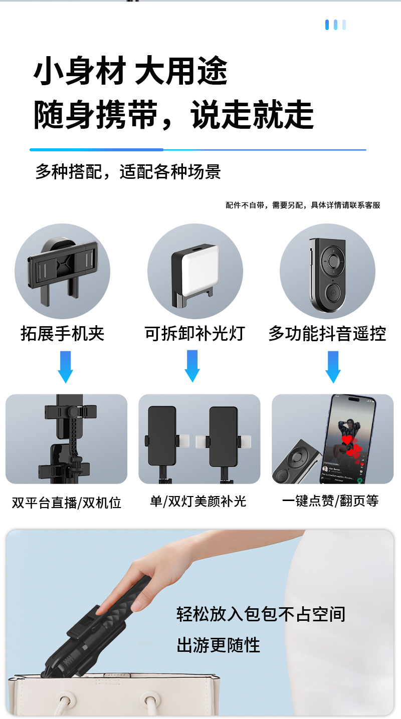 1.7 미터 1.8 미터 안정적인 사각대 블루투스 셀카 스틱 휴대 전화 브래킷 라이트 착륙 휴대용 범용 다기능스토어 가기
