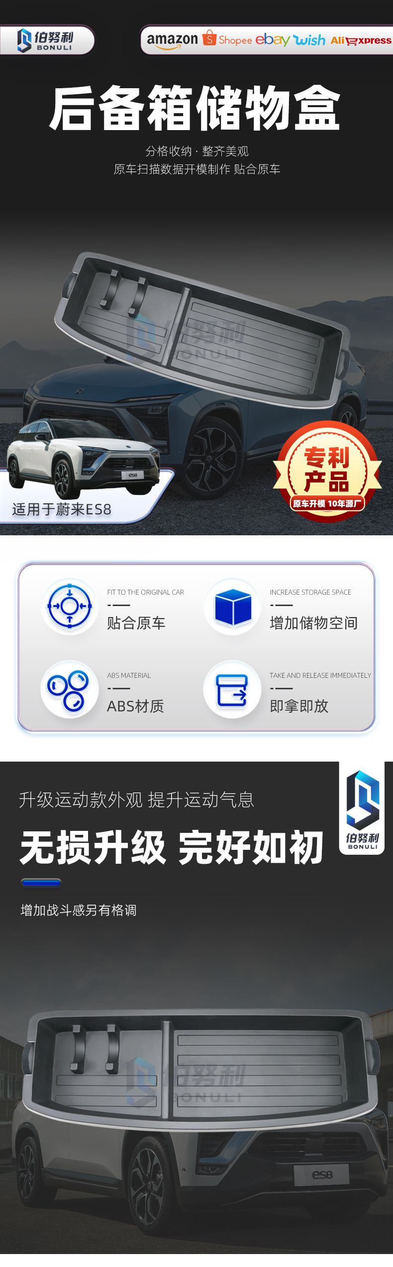 Bernoulli 제조업체는 Weilai ES8 트렁크 보관함 자동차 개조 Weilai 트렁크 보관함을 맞춤 제작했습니다.스토어 가기