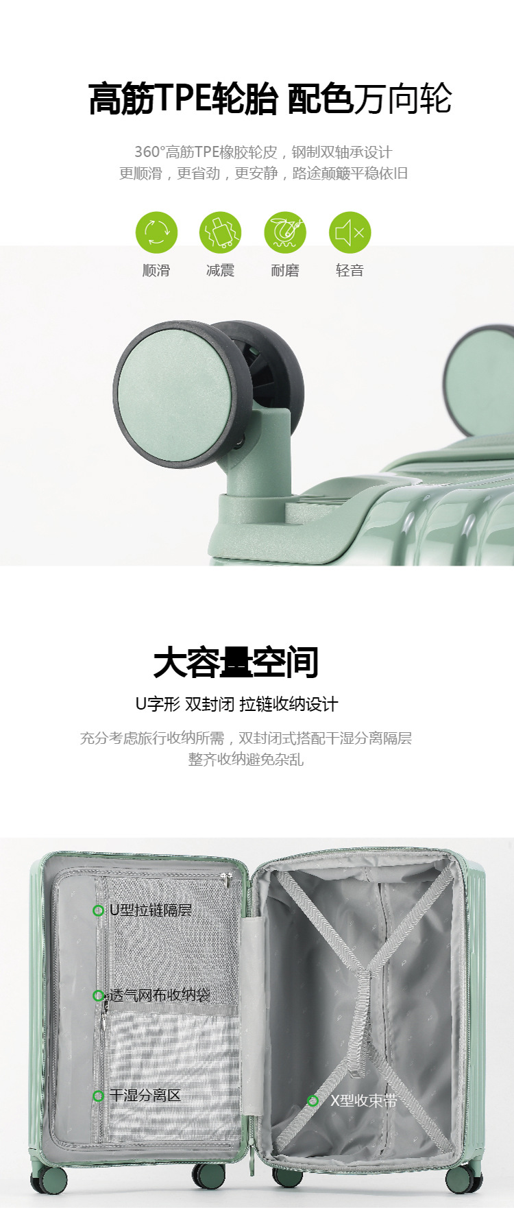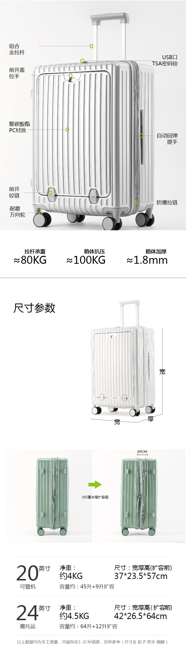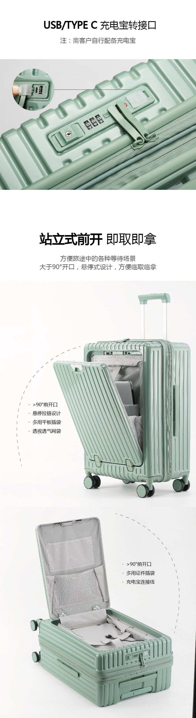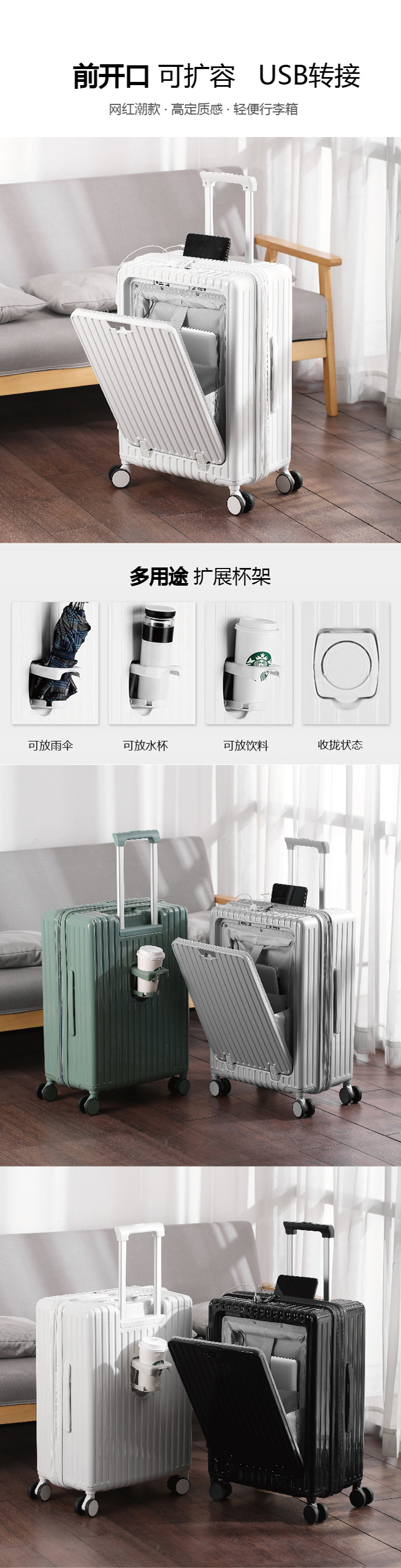 전면 개방 여성 수하물 케이스 남성 지퍼 케이스 유니버설 휠 20/24 인치 확장 가능한 가방 usb 충전 트롤리 케이스