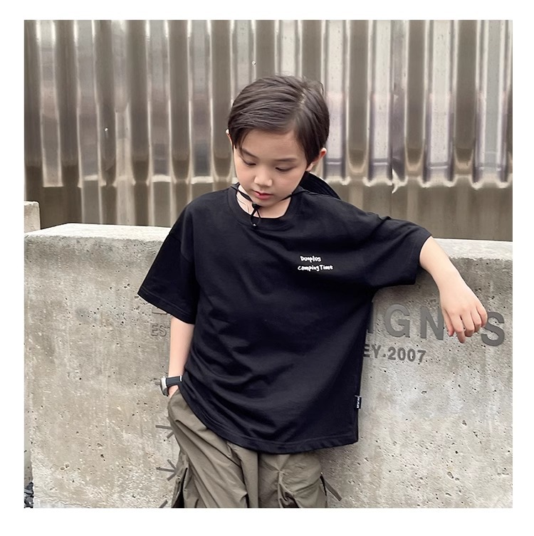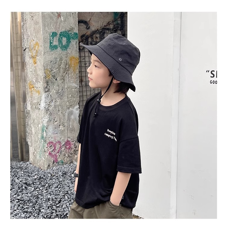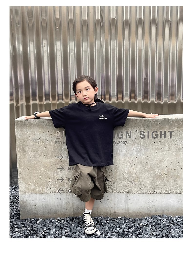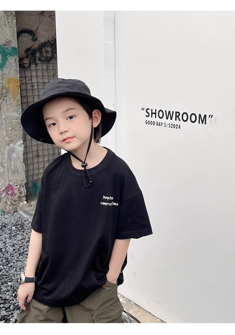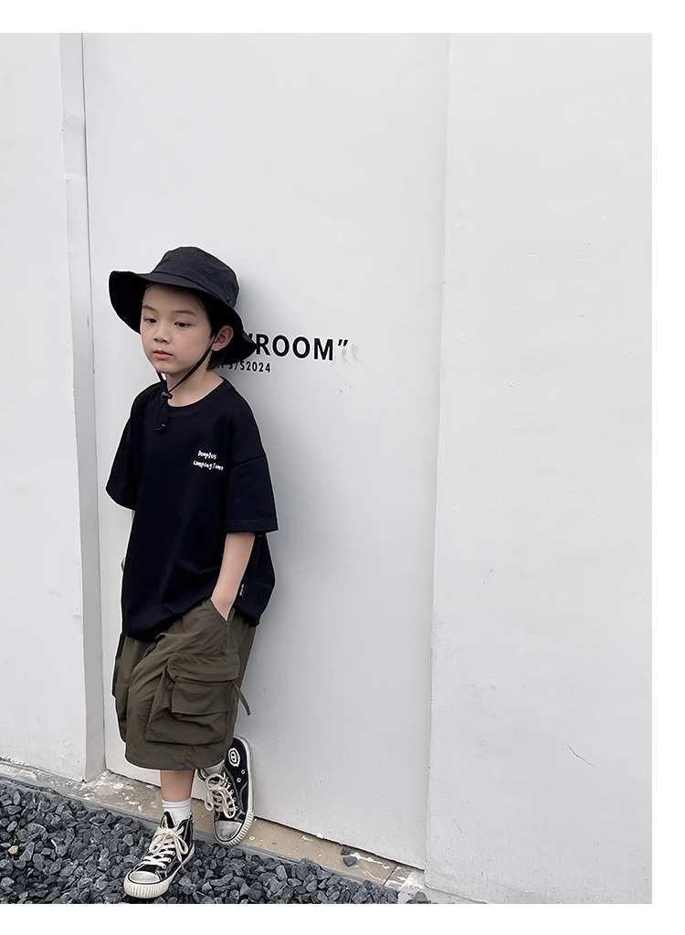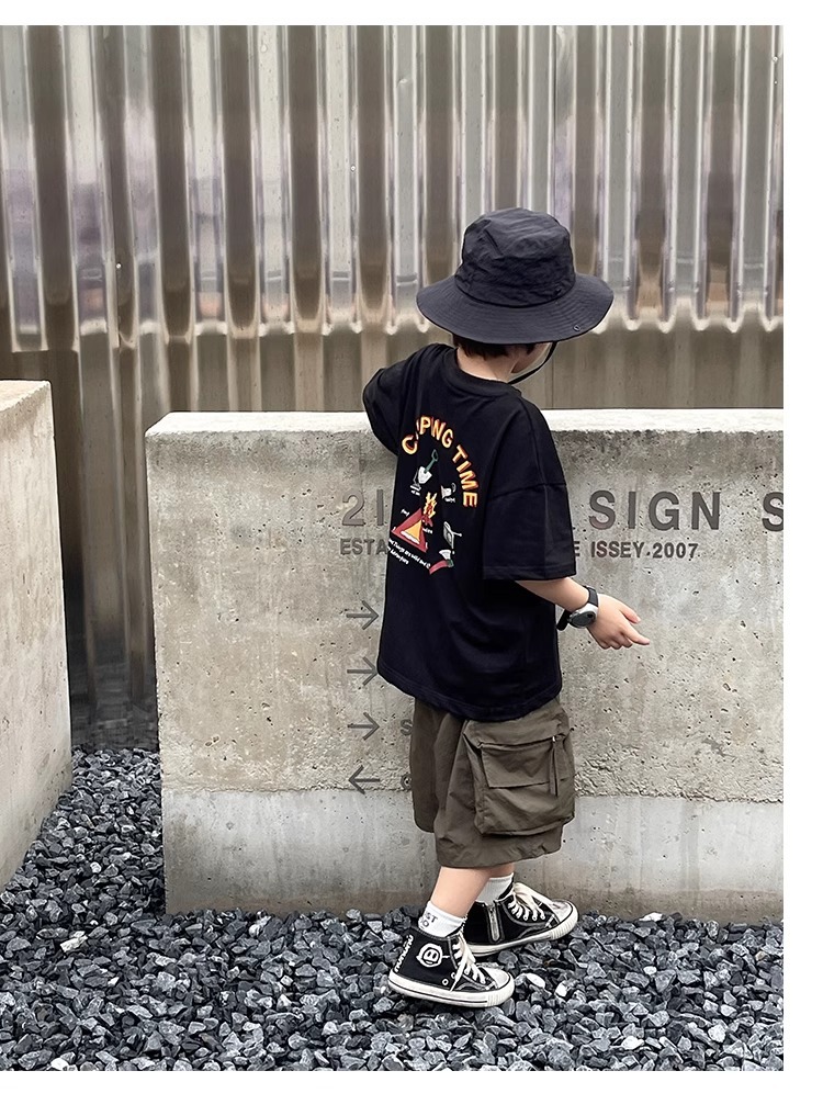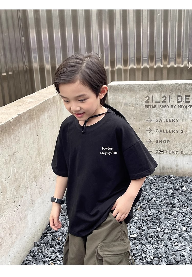 면 아동복 소년 캠핑 반팔 티셔츠 2024 새로운 어린이 반소매 아기의 여름 스타일 인쇄 탑스토어 가기