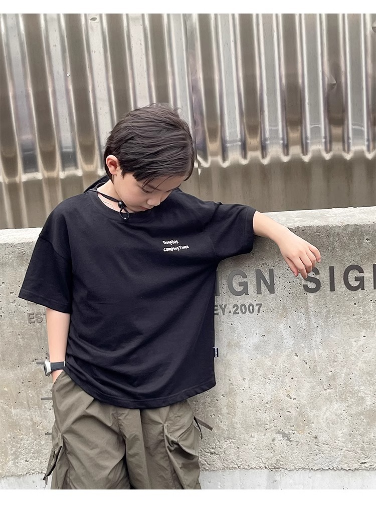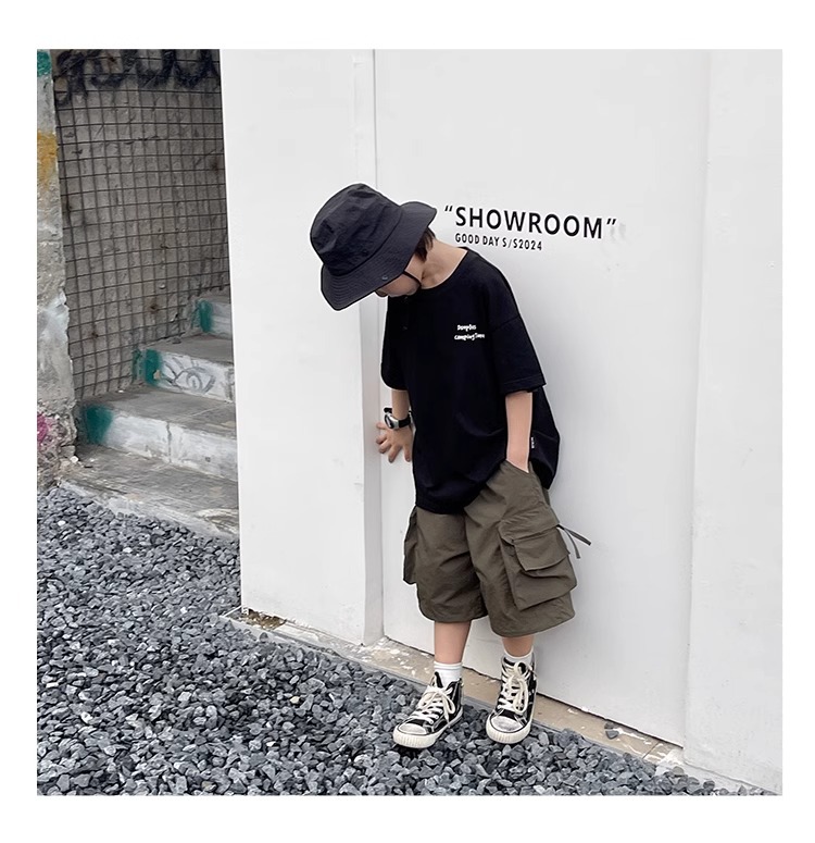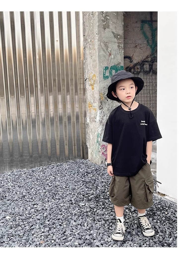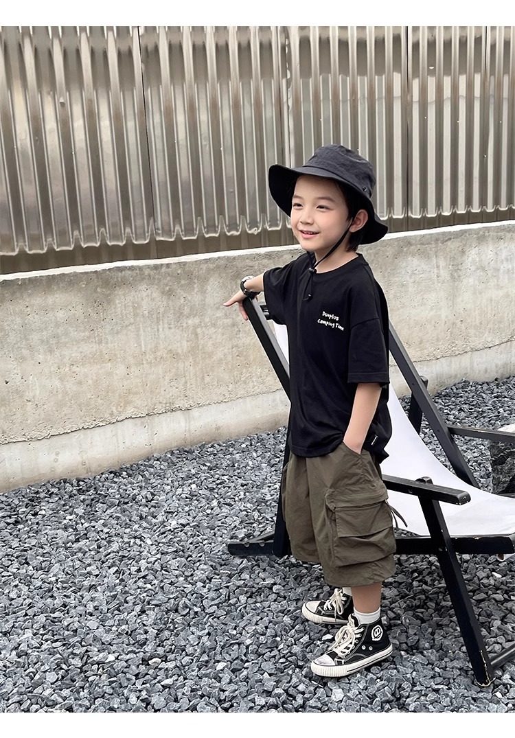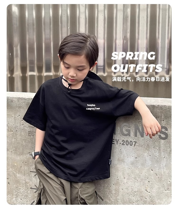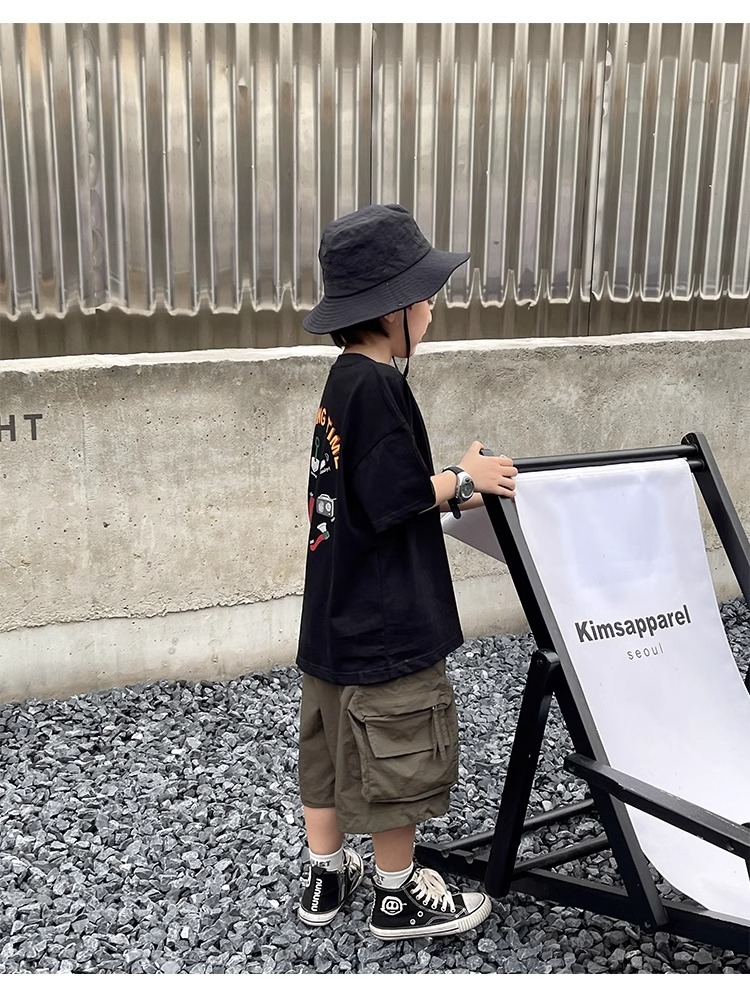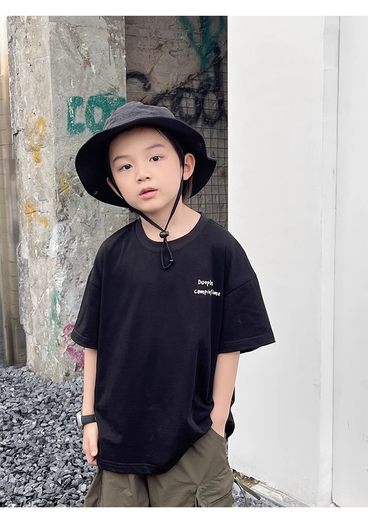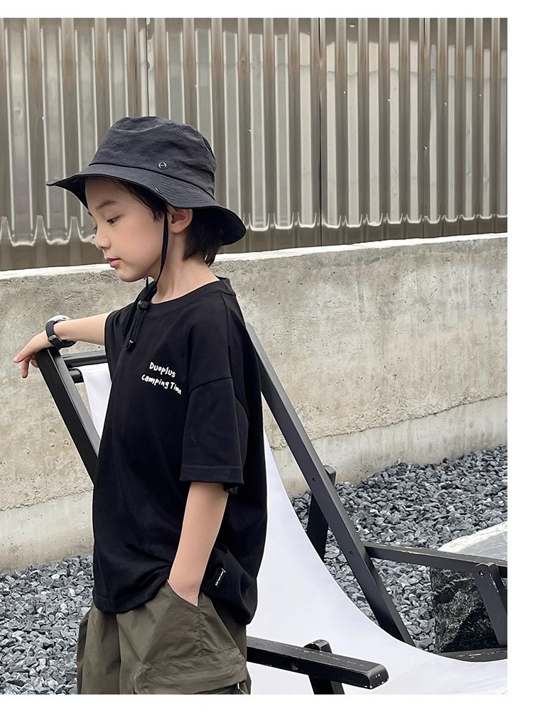 면 아동복 소년 캠핑 반팔 티셔츠 2024 새로운 어린이 반소매 아기의 여름 스타일 인쇄 탑스토어 가기