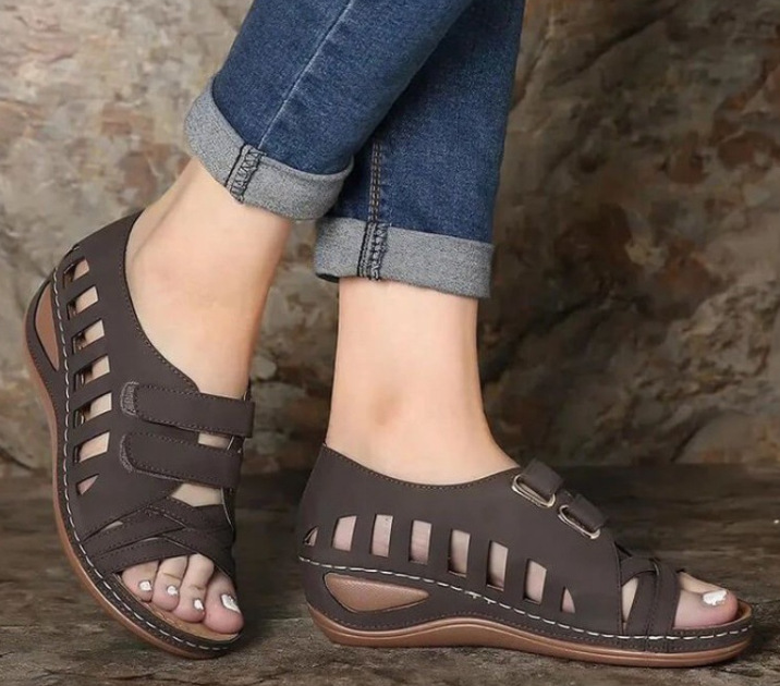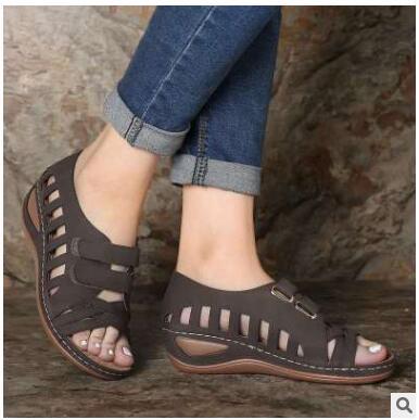 국경 간 플러스 사이즈 유럽과 미국 샌들 2020 새로운 스윙 라인 웨지 속이 빈 로마 생선 입 여성용 샌들 대외 무역 도매스토어 가기