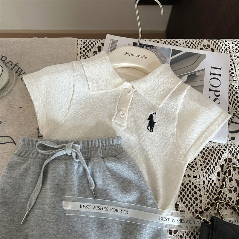 한국판 아동복 2026년 신상 여름 여아 니트 폴로셔츠 반팔 티셔츠 다용도 그레이 스커트 팬츠 투피스 세트스토어 가기