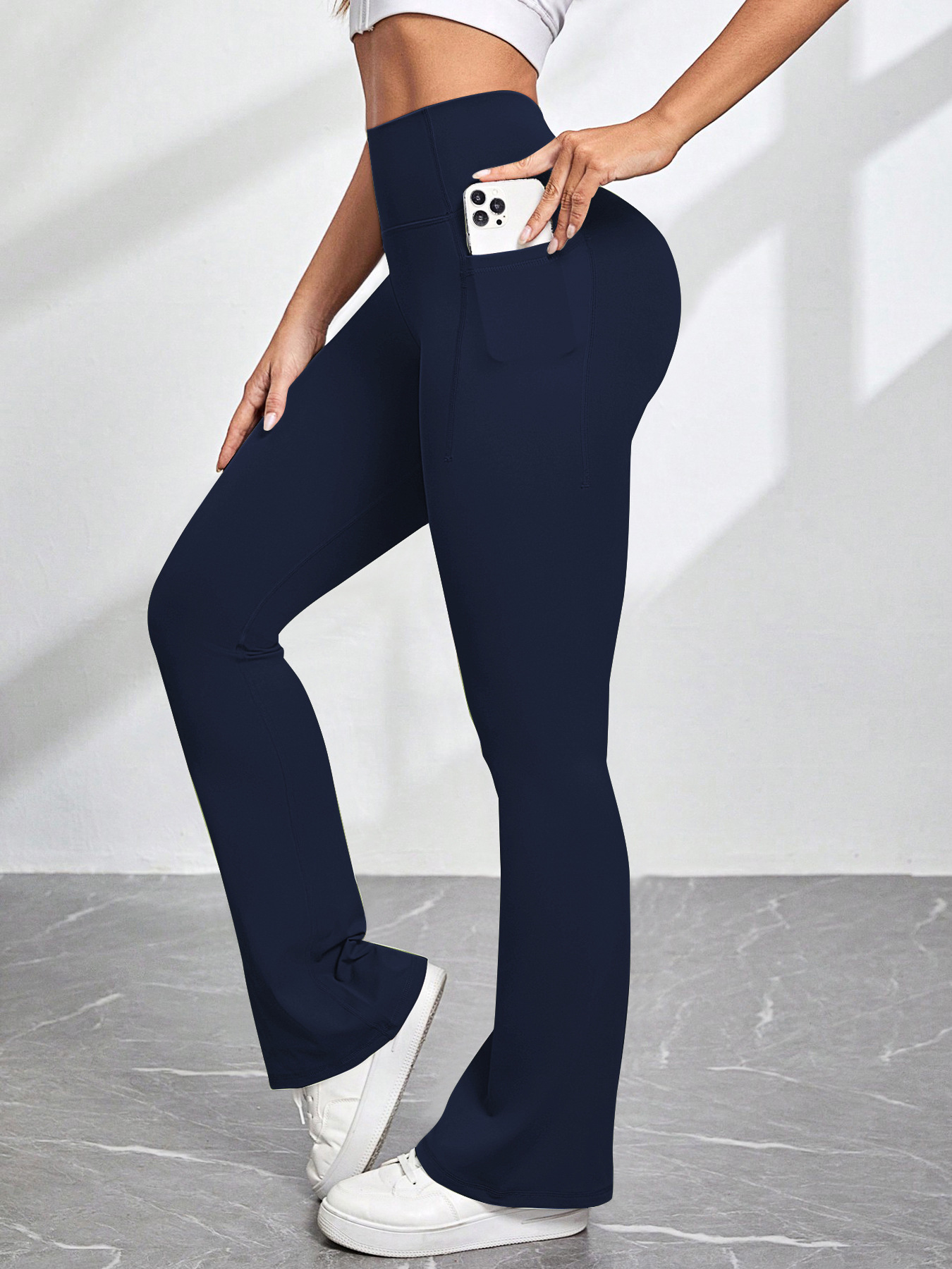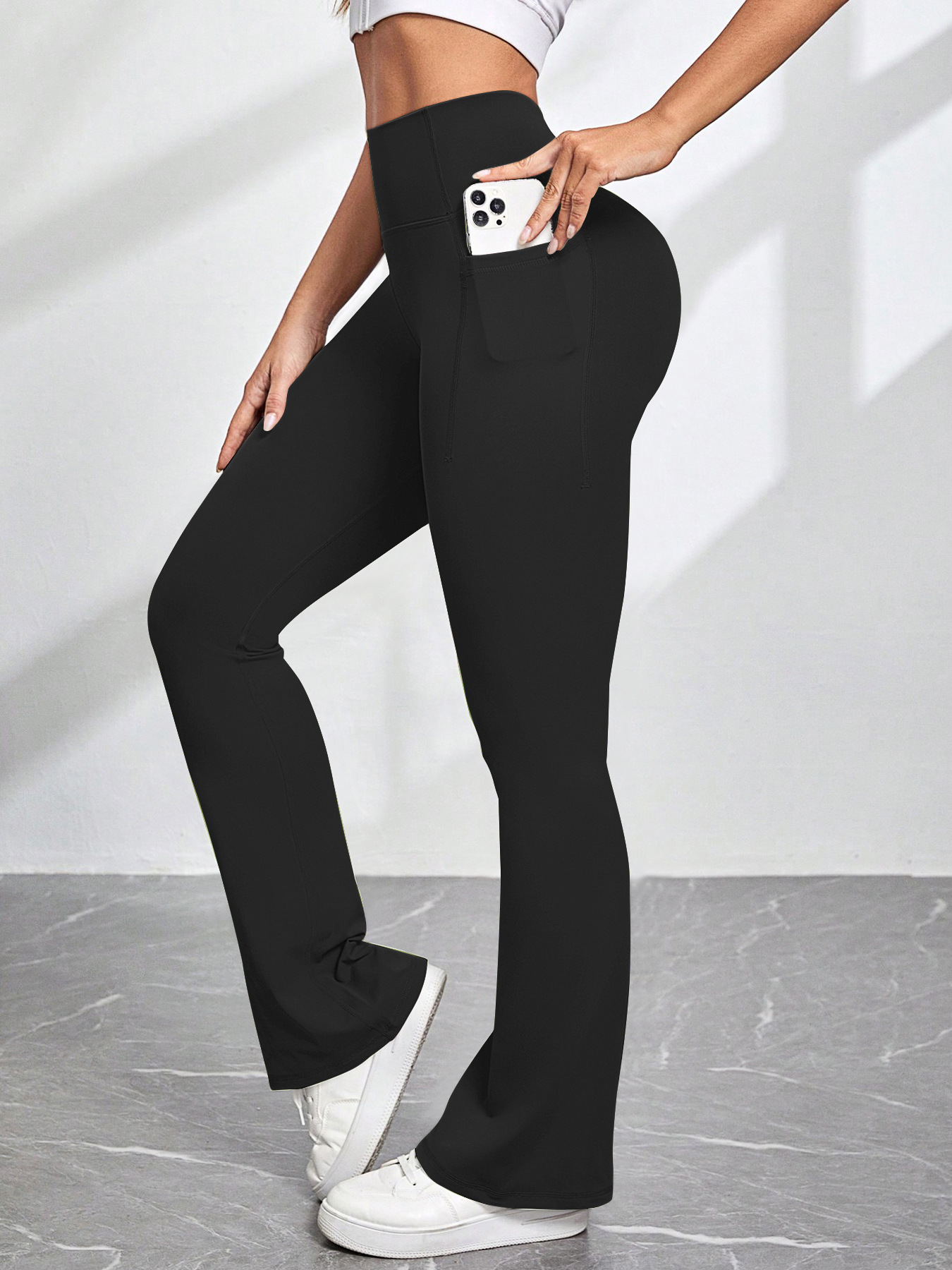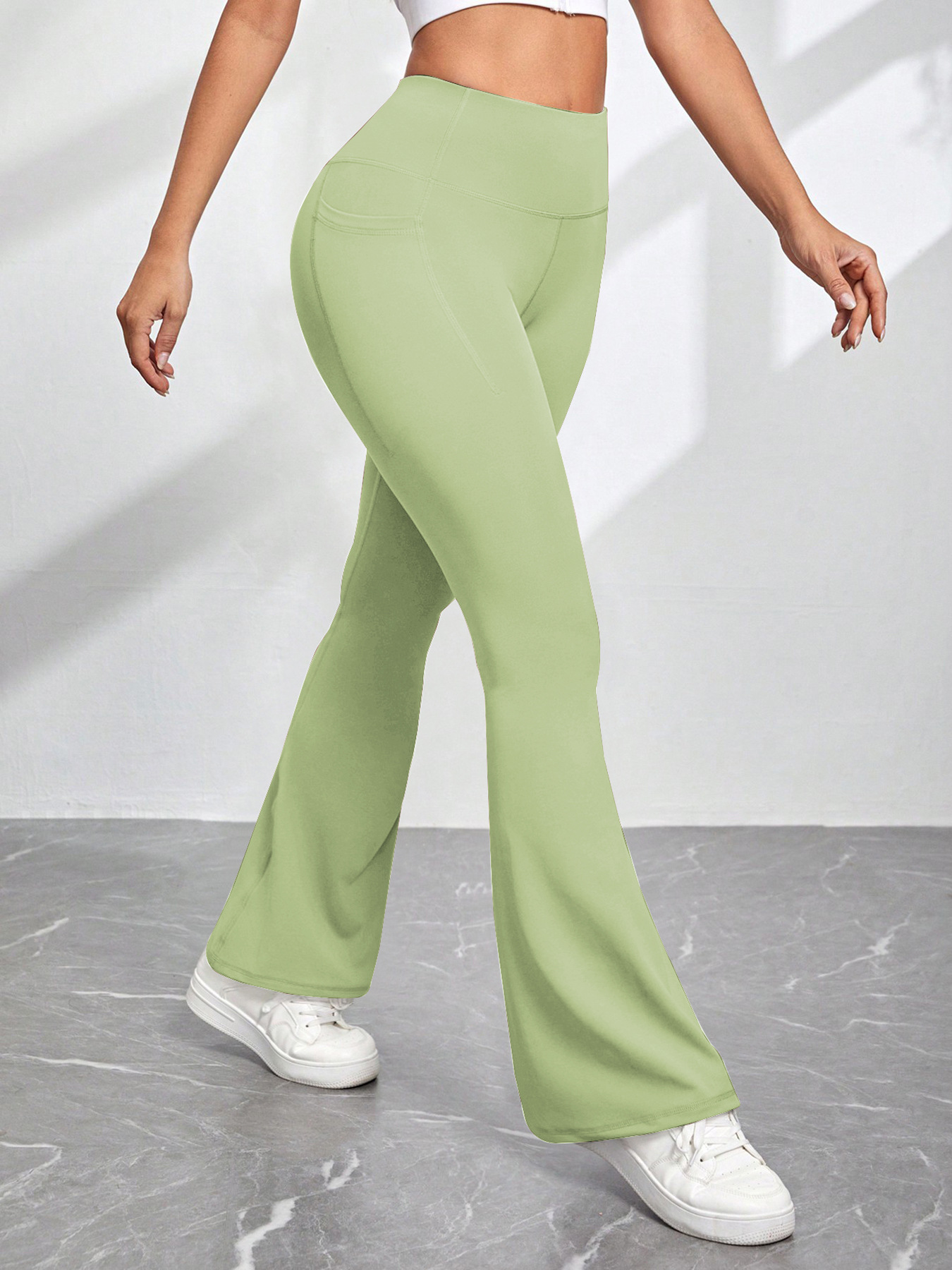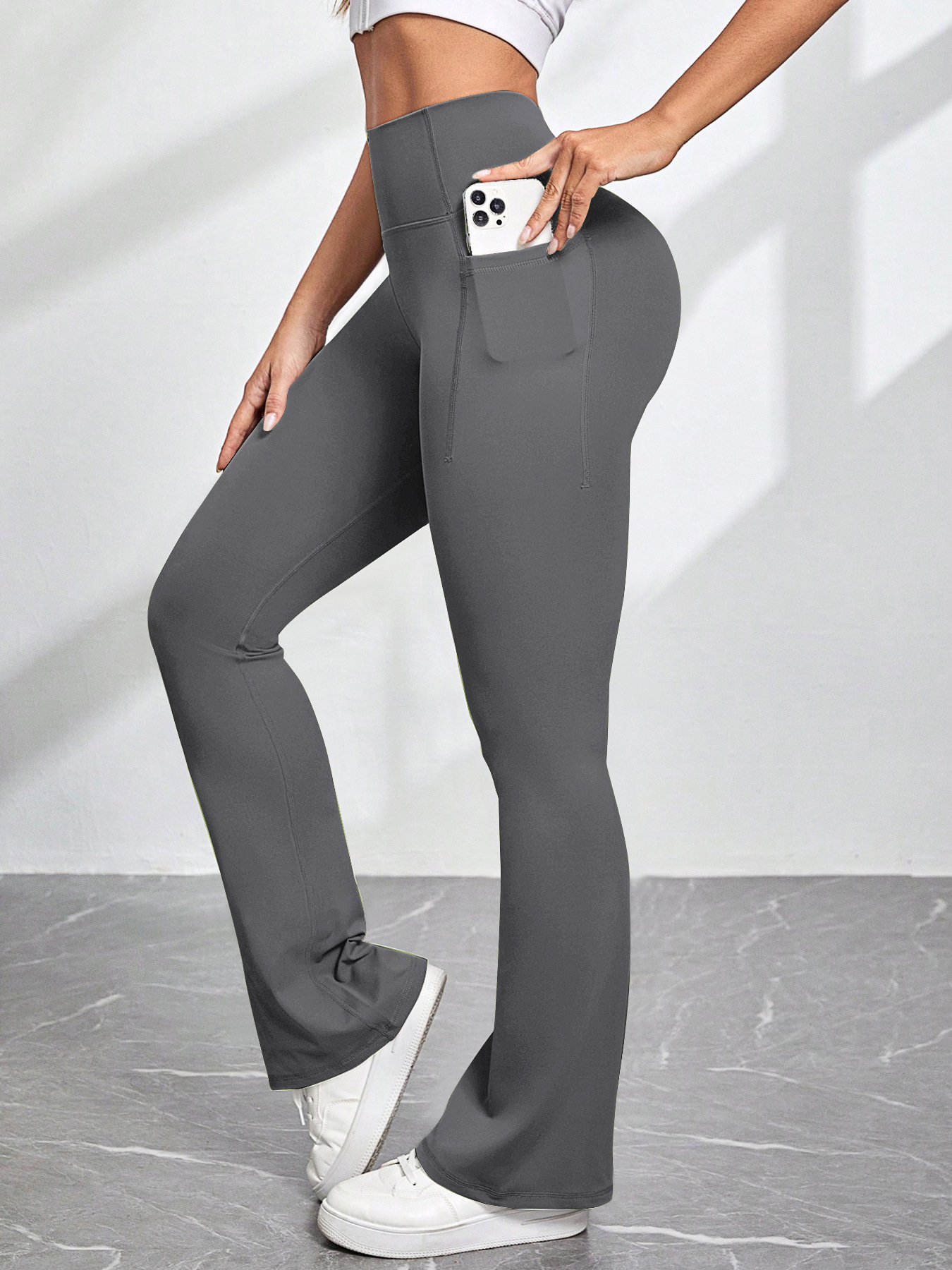 TK 아마존 핫 세일 높은 허리 엉덩이 포켓 바지 캐주얼 스포츠 플래 팬츠 슬림 핏 야외 피트니스 요가 바지 여성