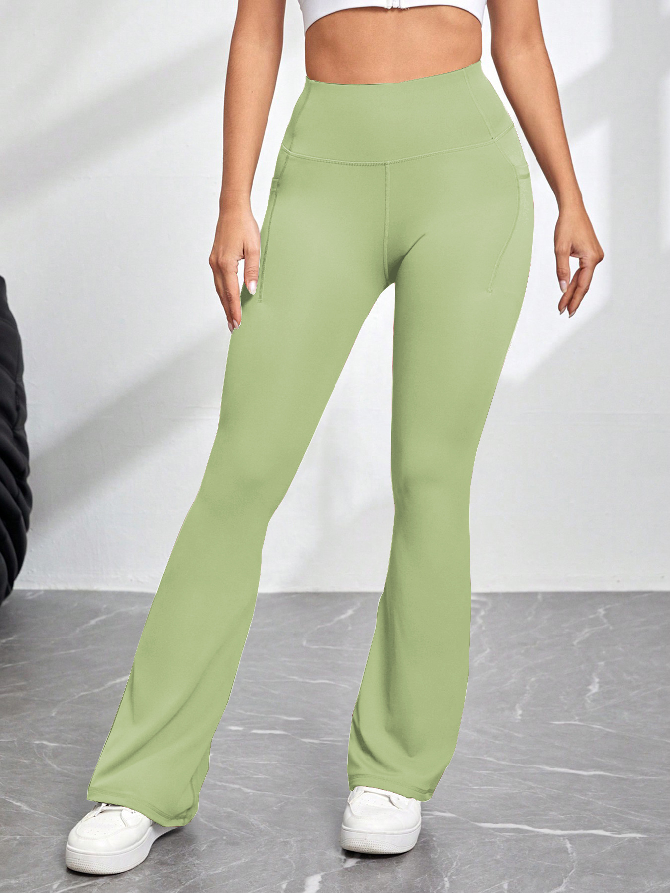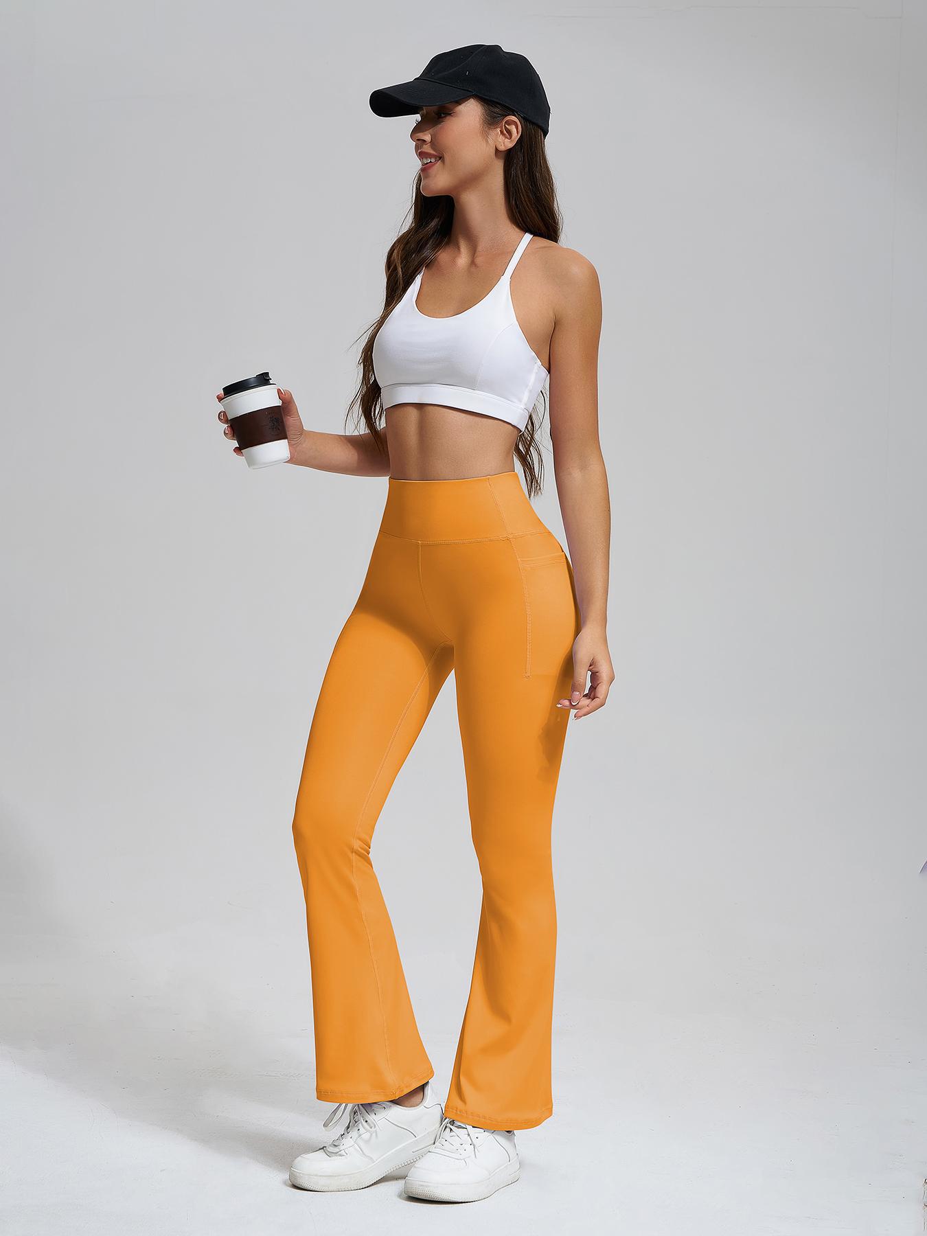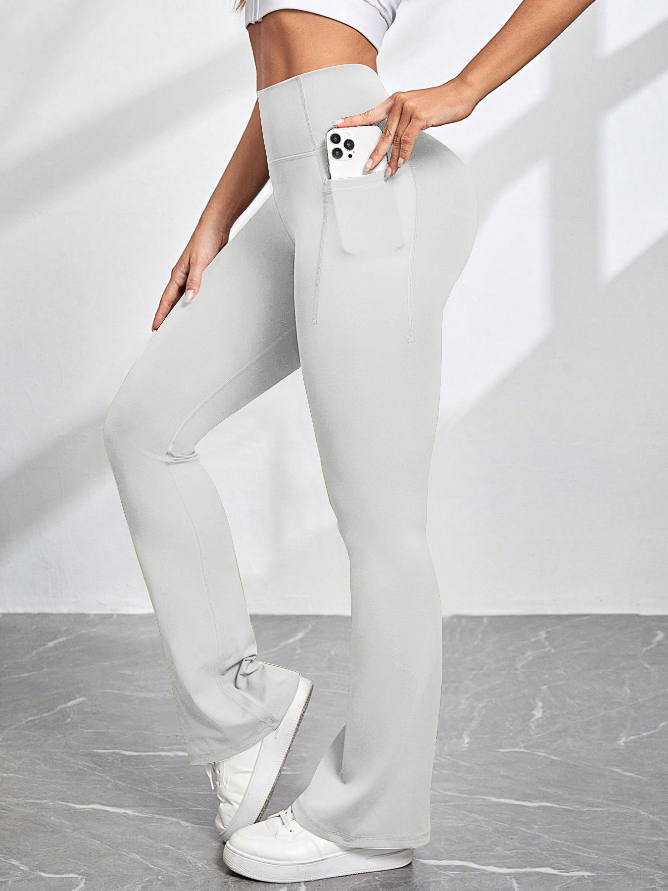 TK 아마존 핫 세일 높은 허리 엉덩이 포켓 바지 캐주얼 스포츠 플래 팬츠 슬림 핏 야외 피트니스 요가 바지 여성