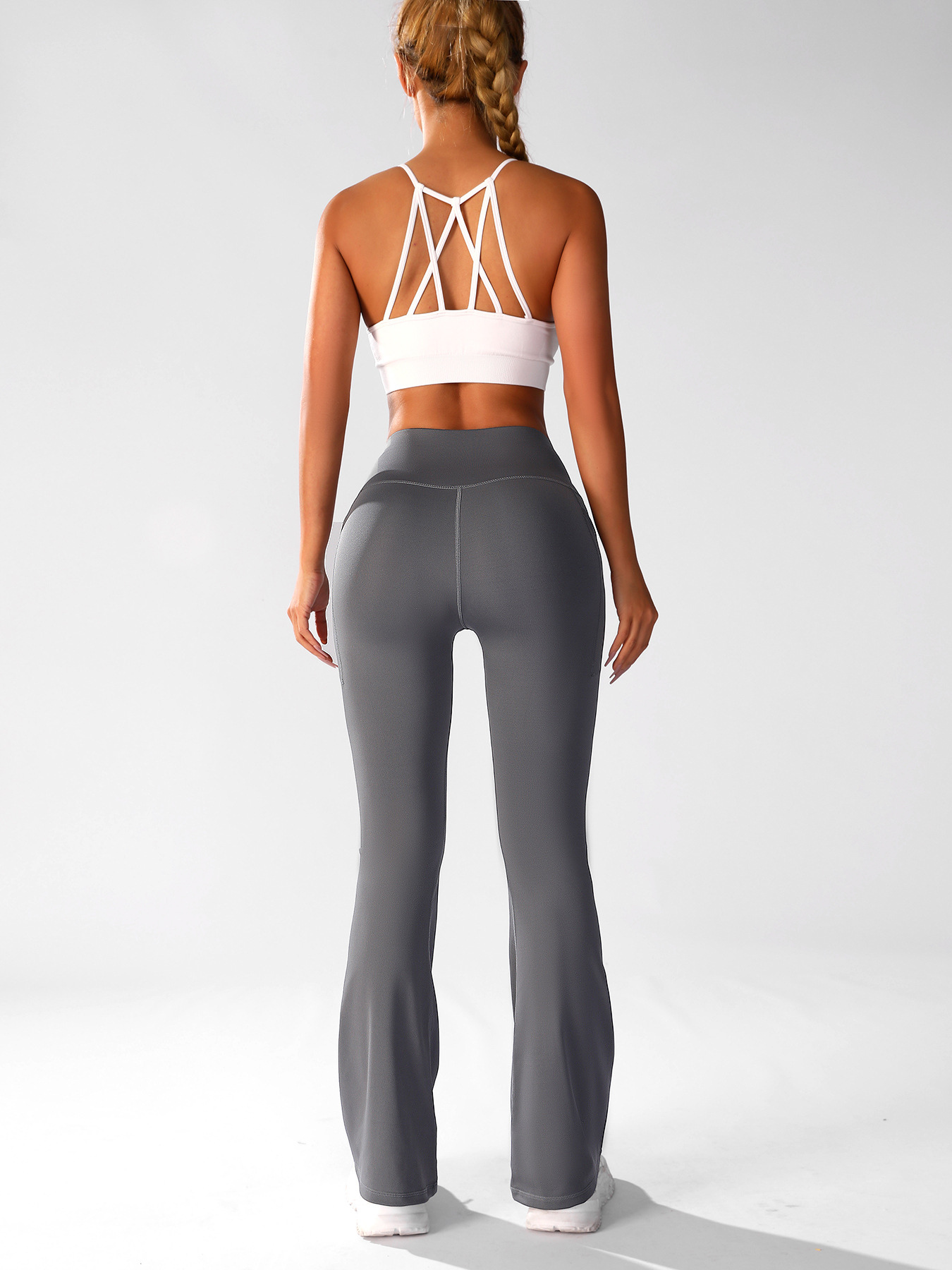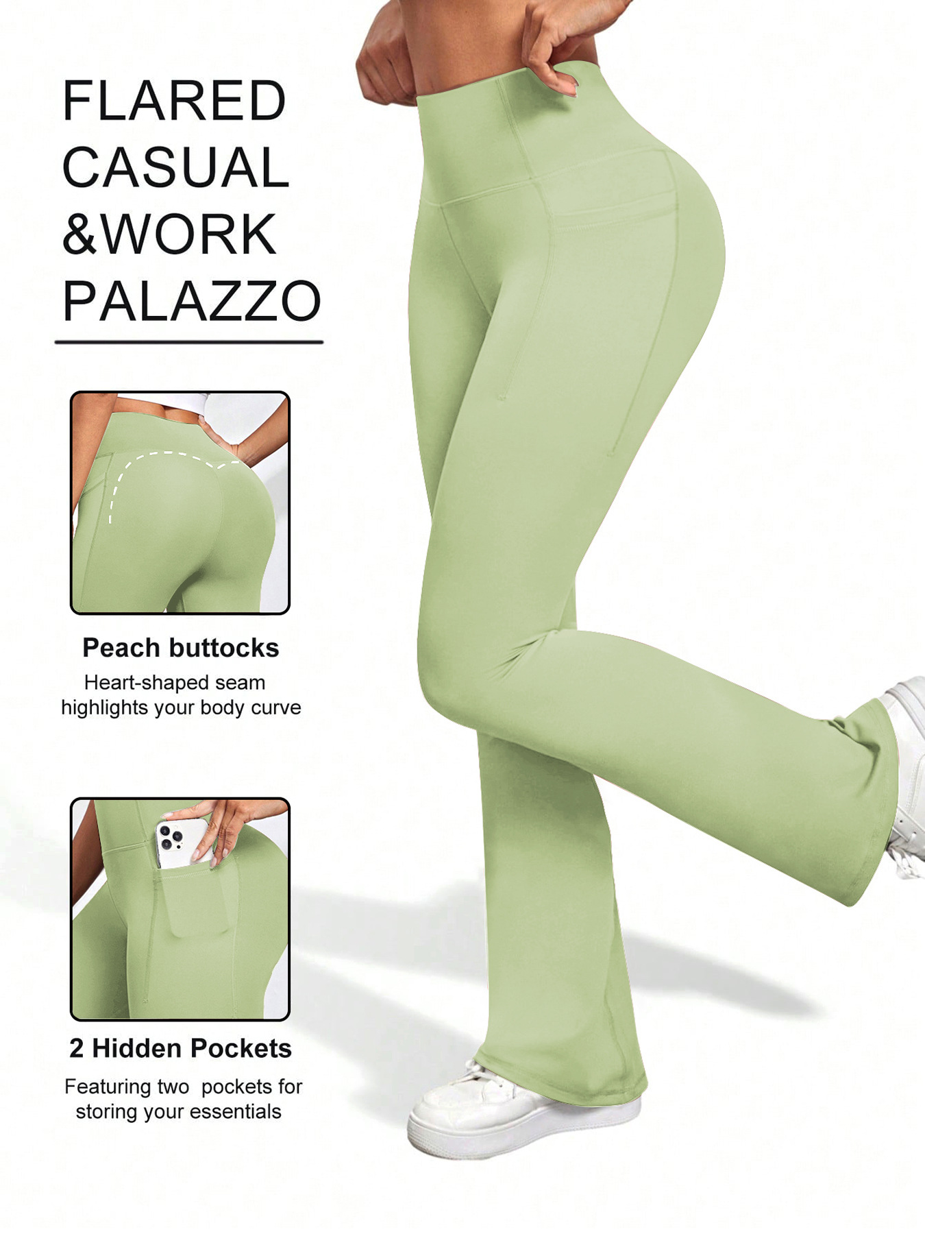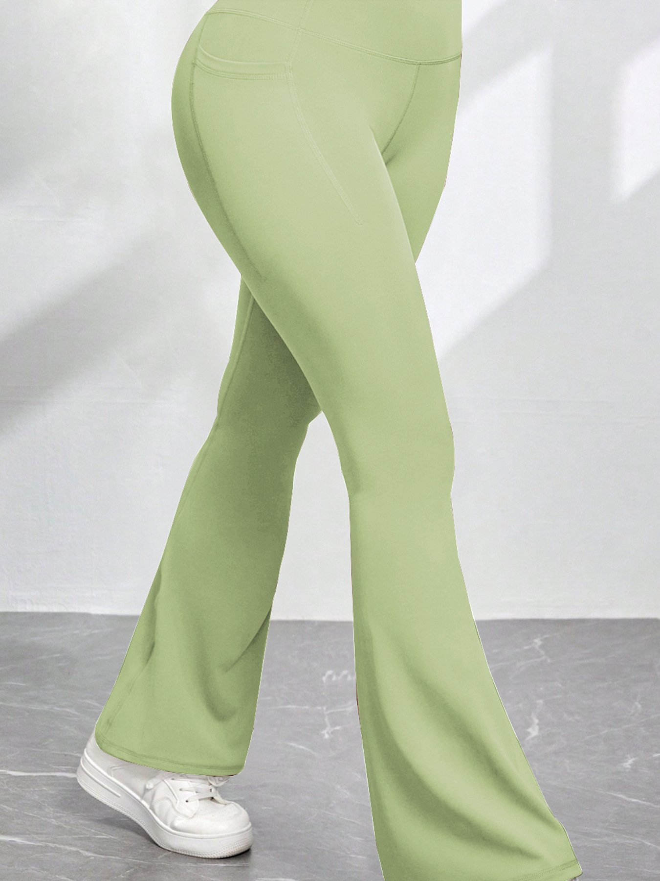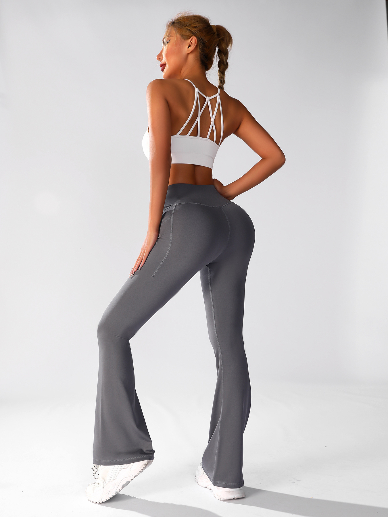 TK 아마존 핫 세일 높은 허리 엉덩이 포켓 바지 캐주얼 스포츠 플래 팬츠 슬림 핏 야외 피트니스 요가 바지 여성
