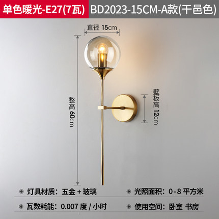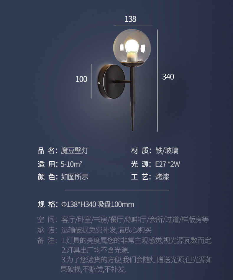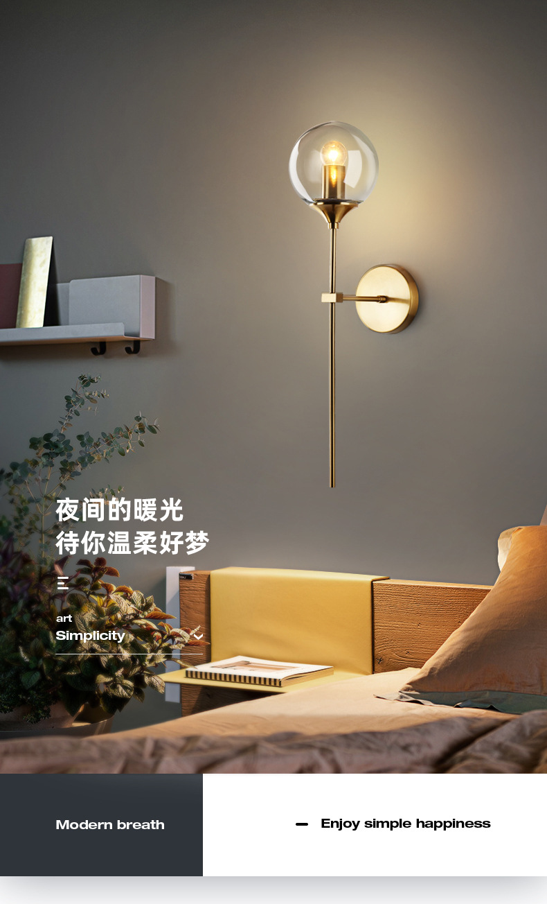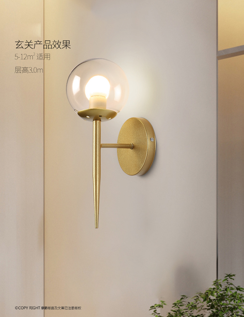 LED 벽등 침대 옆 램프 거실 복도 벽등 통로 발코니 유리 북유럽 스타일 삼색 조명 벽걸이형