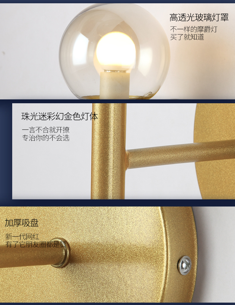 LED 벽등 침대 옆 램프 거실 복도 벽등 통로 발코니 유리 북유럽 스타일 삼색 조명 벽걸이형스토어 가기