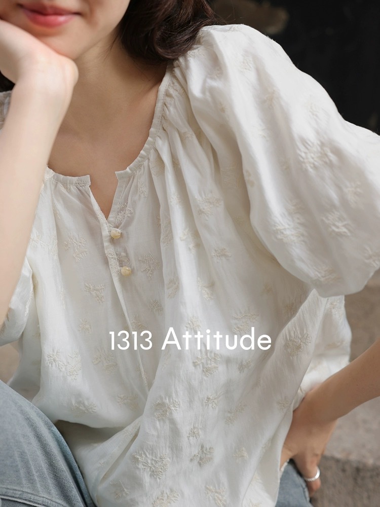 1313 프랑스 고급 크로 셰 뜨개질 꽃! 90% 쿨 텐셀 랜턴 소매 반팔 쉬폰 탑 여름 블라우스스토어 가기