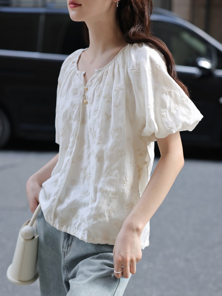 1313 프랑스 고급 크로 셰 뜨개질 꽃! 90% 쿨 텐셀 랜턴 소매 반팔 쉬폰 탑 여름 블라우스