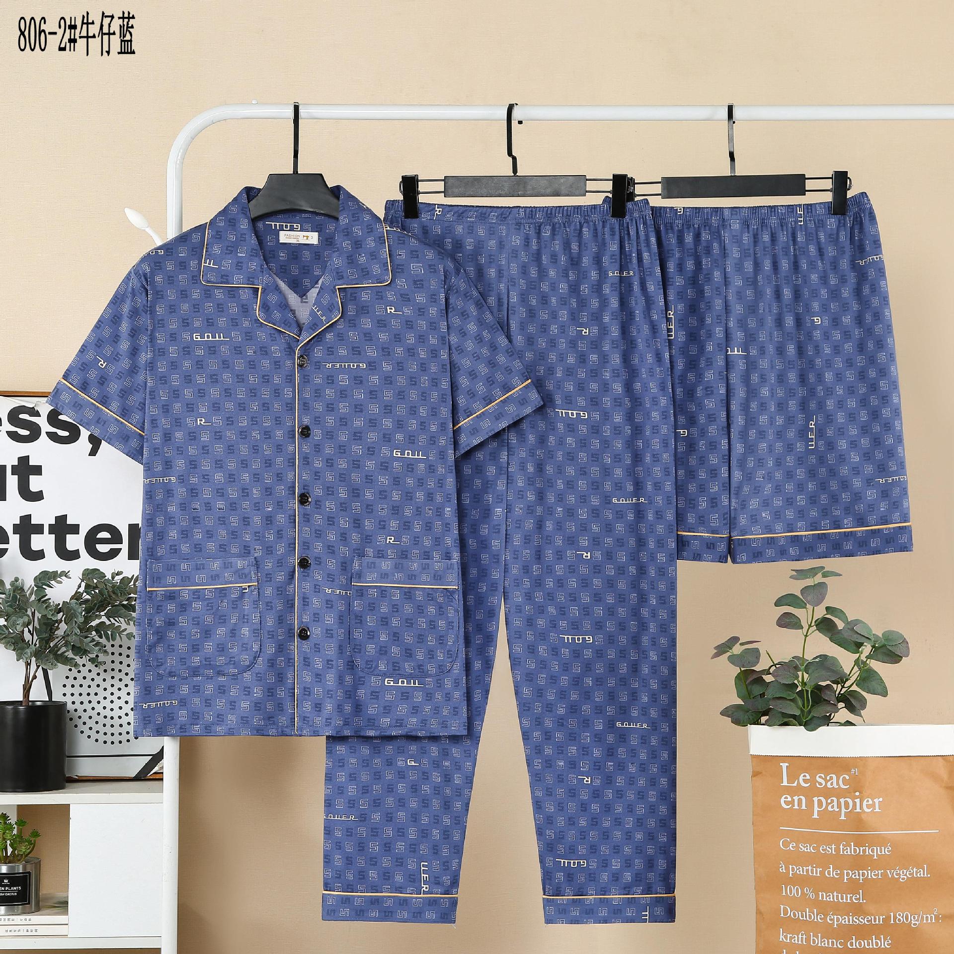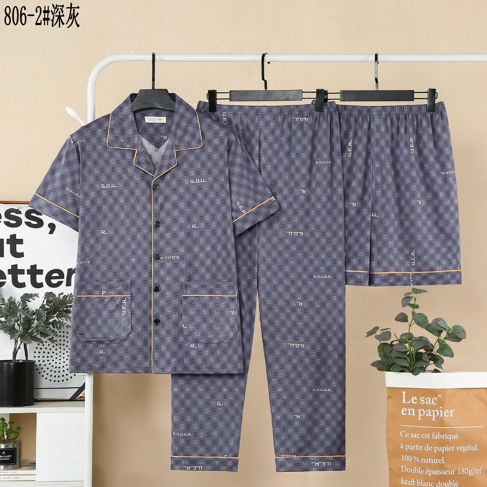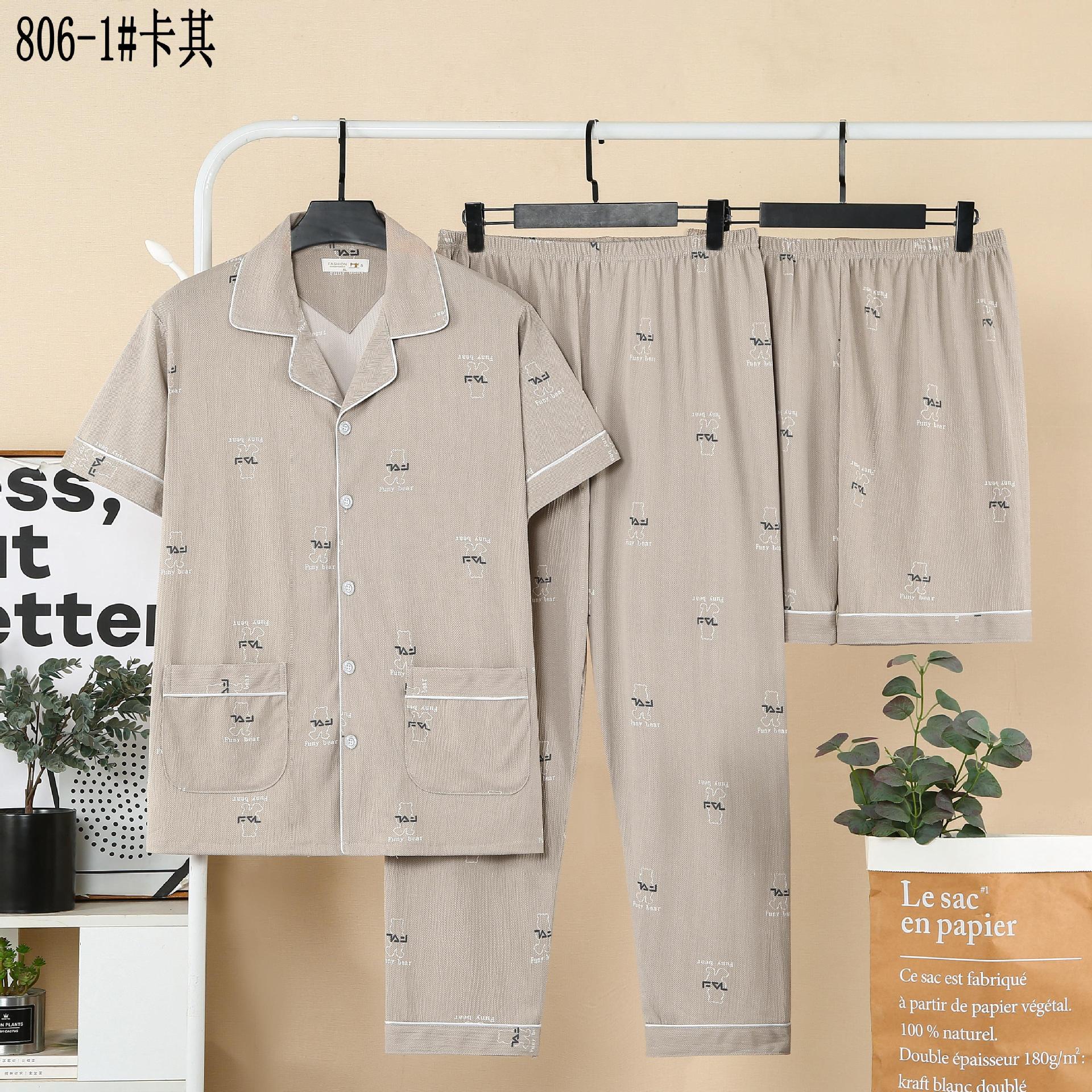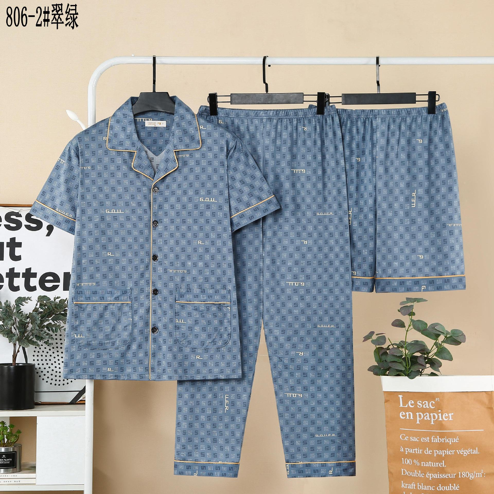 3 피스 파자마 남자 반팔 바지 반소매 중년 아빠의 봄과 여름 뚱뚱한 플러스 사이즈 느슨한 집 옷 세트스토어 가기