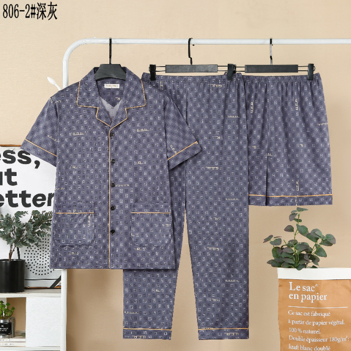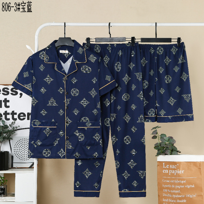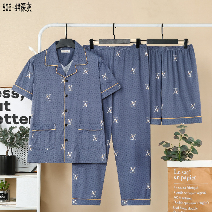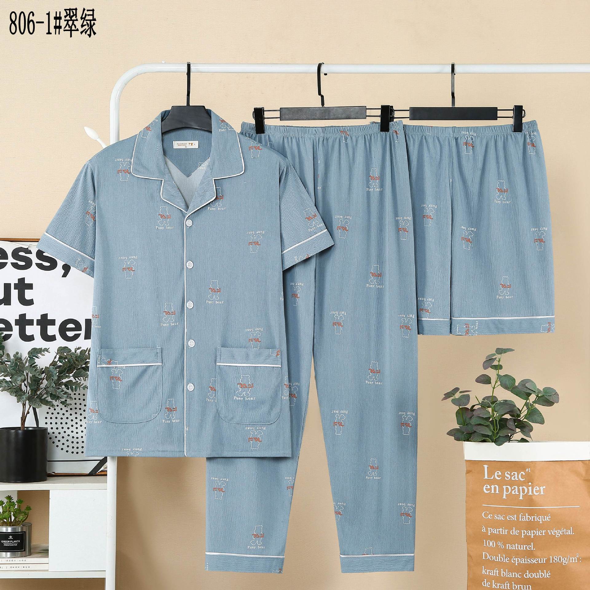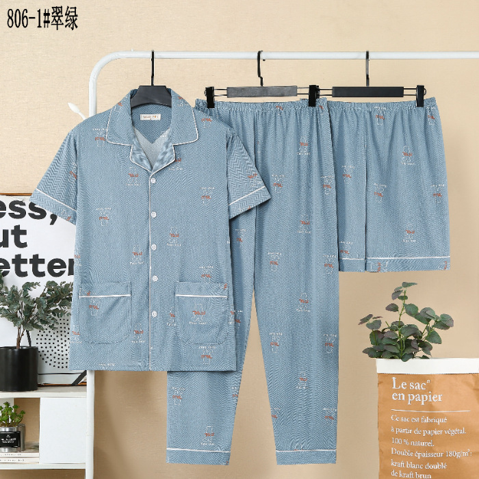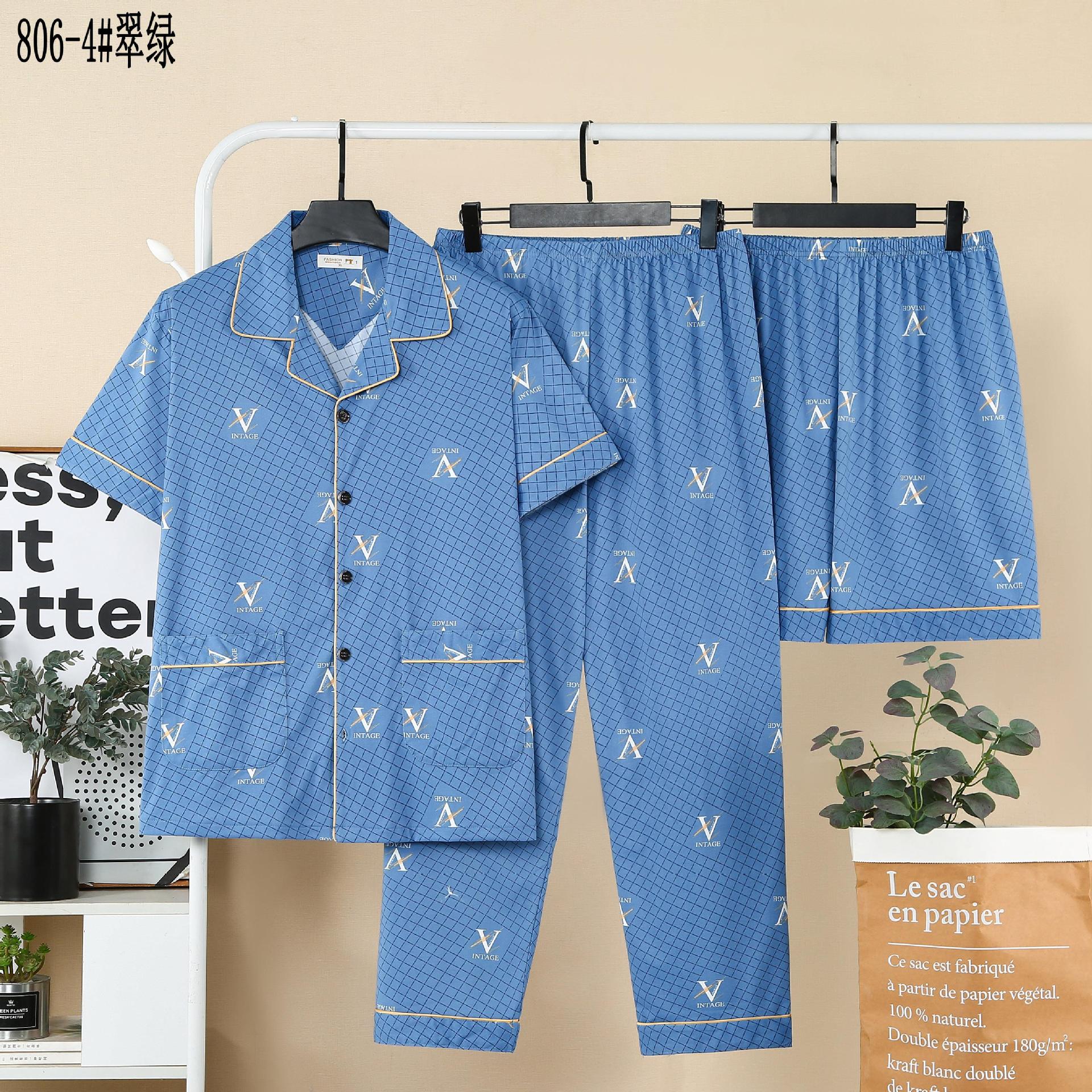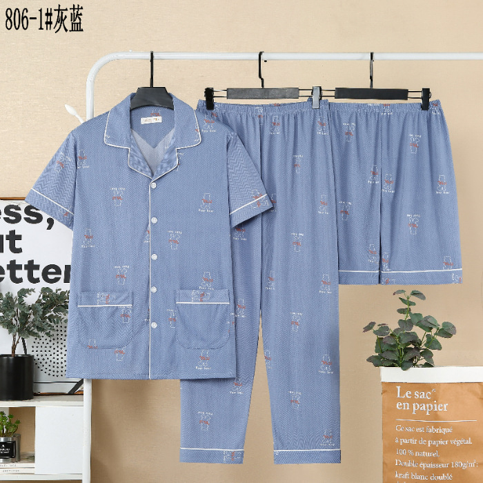 3 피스 파자마 남자 반팔 바지 반소매 중년 아빠의 봄과 여름 뚱뚱한 플러스 사이즈 느슨한 집 옷 세트스토어 가기