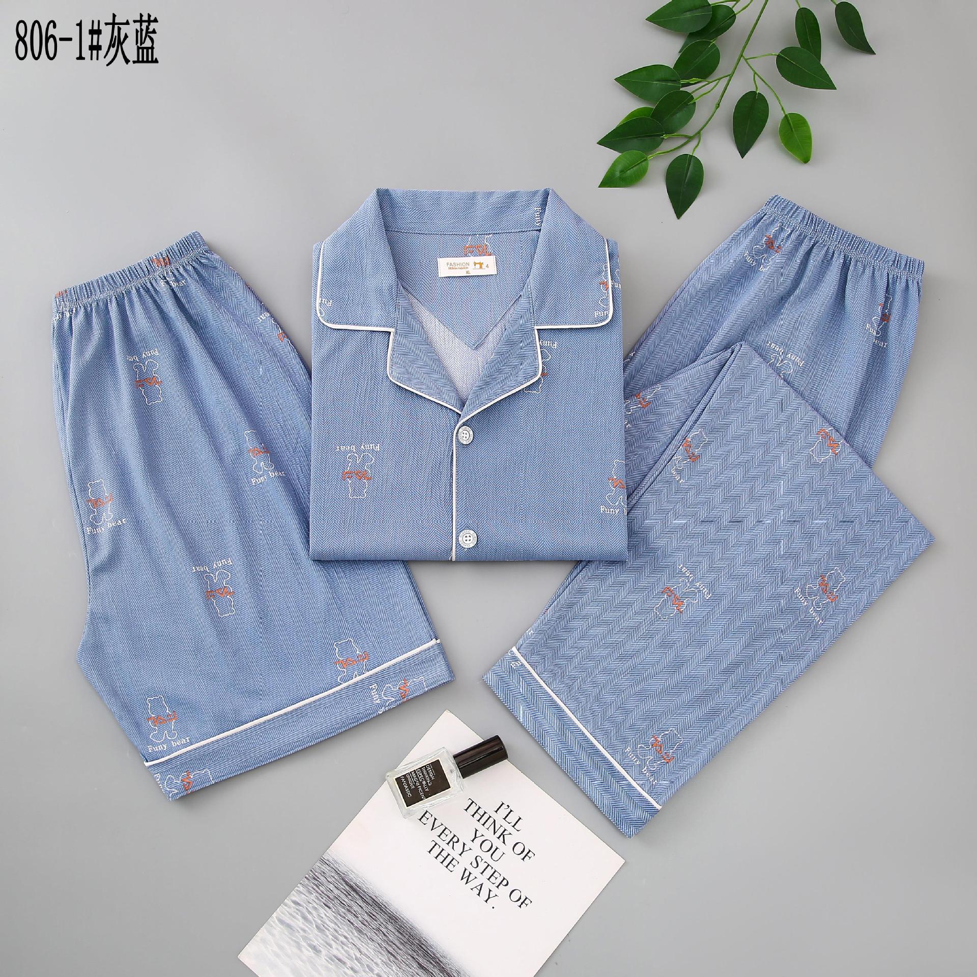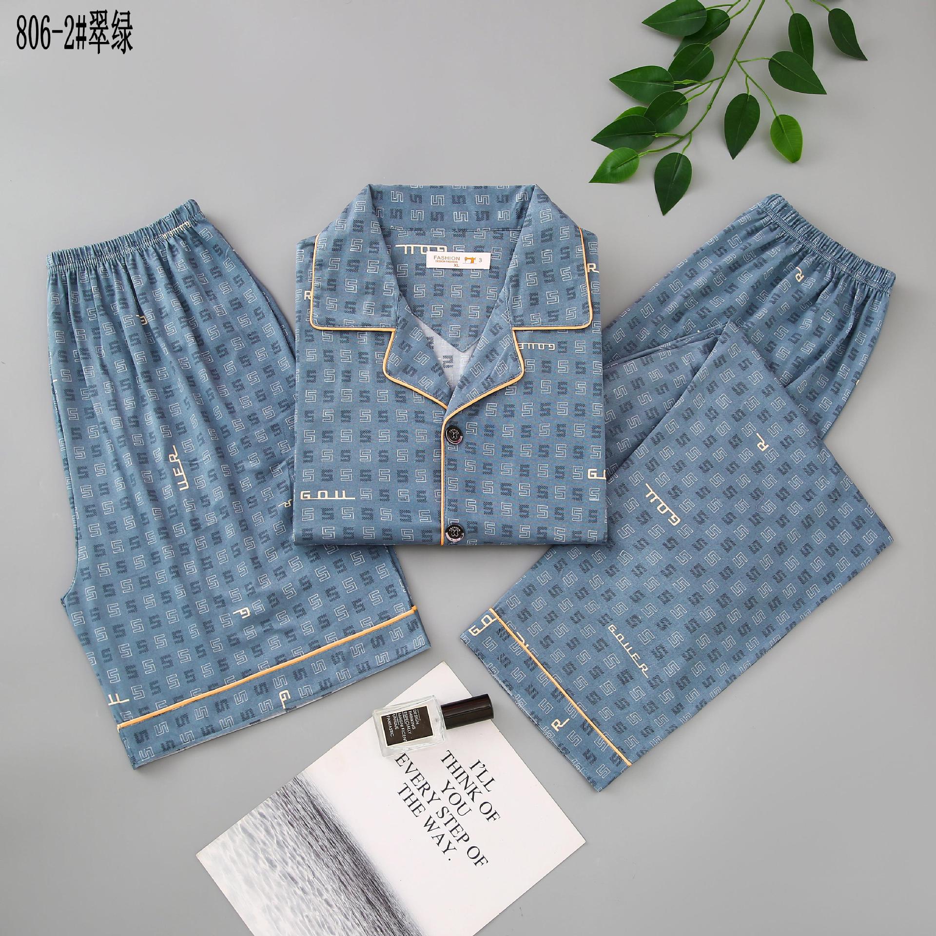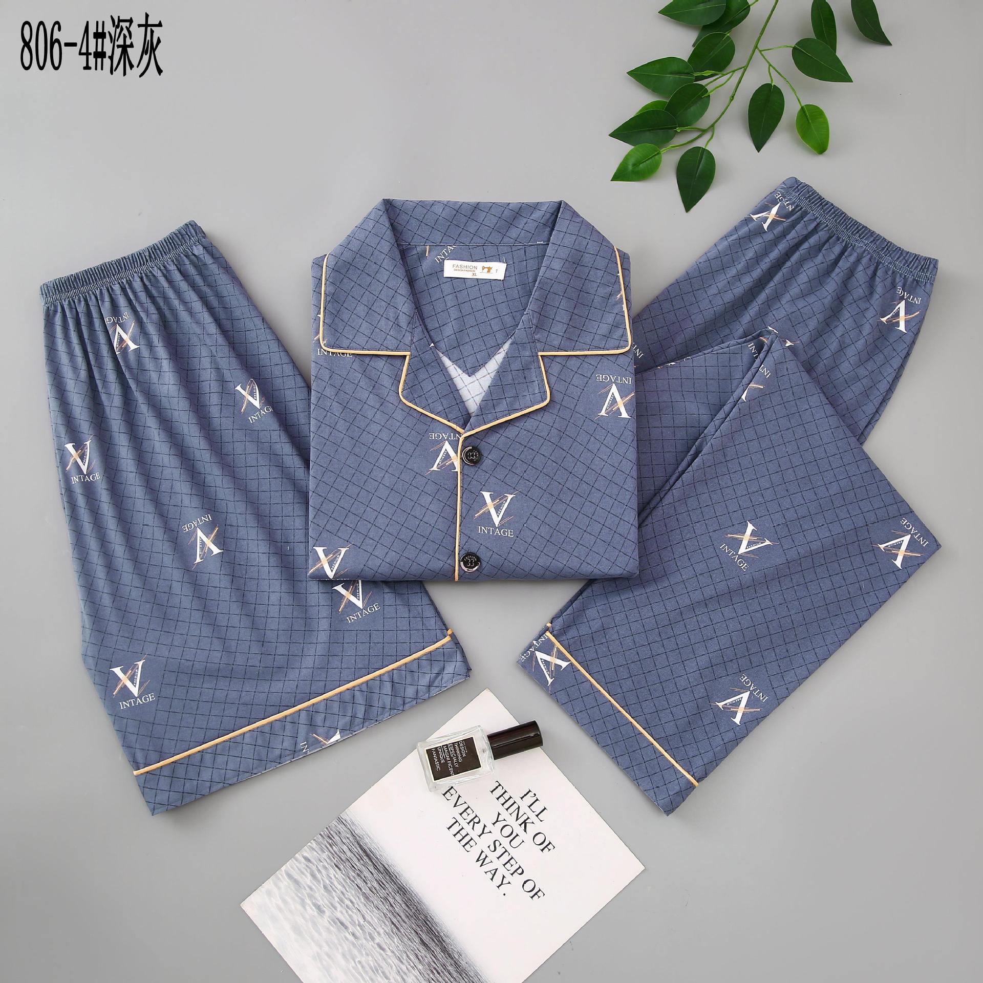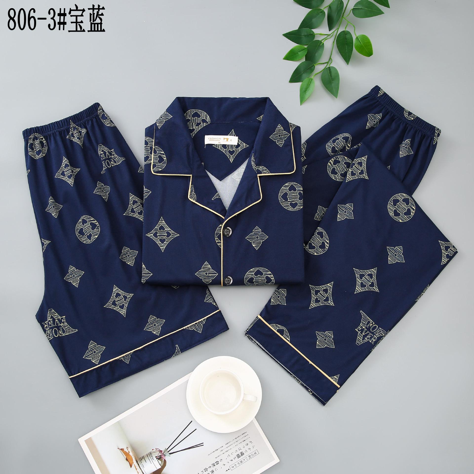 3 피스 파자마 남자 반팔 바지 반소매 중년 아빠의 봄과 여름 뚱뚱한 플러스 사이즈 느슨한 집 옷 세트스토어 가기