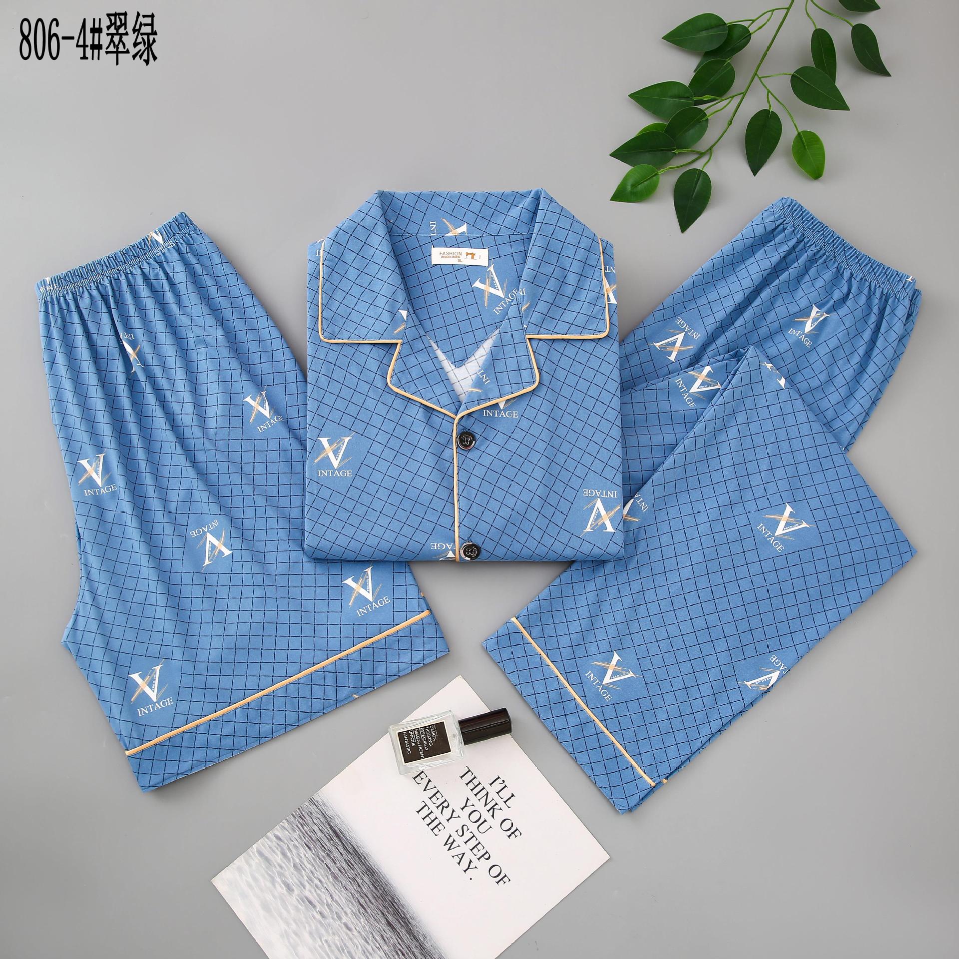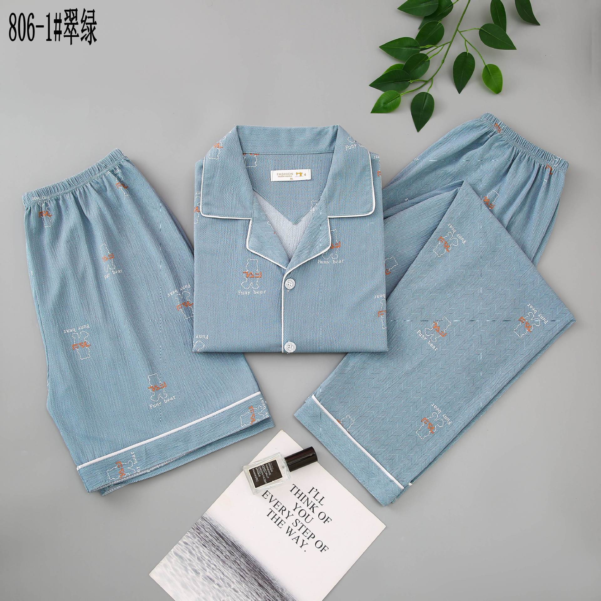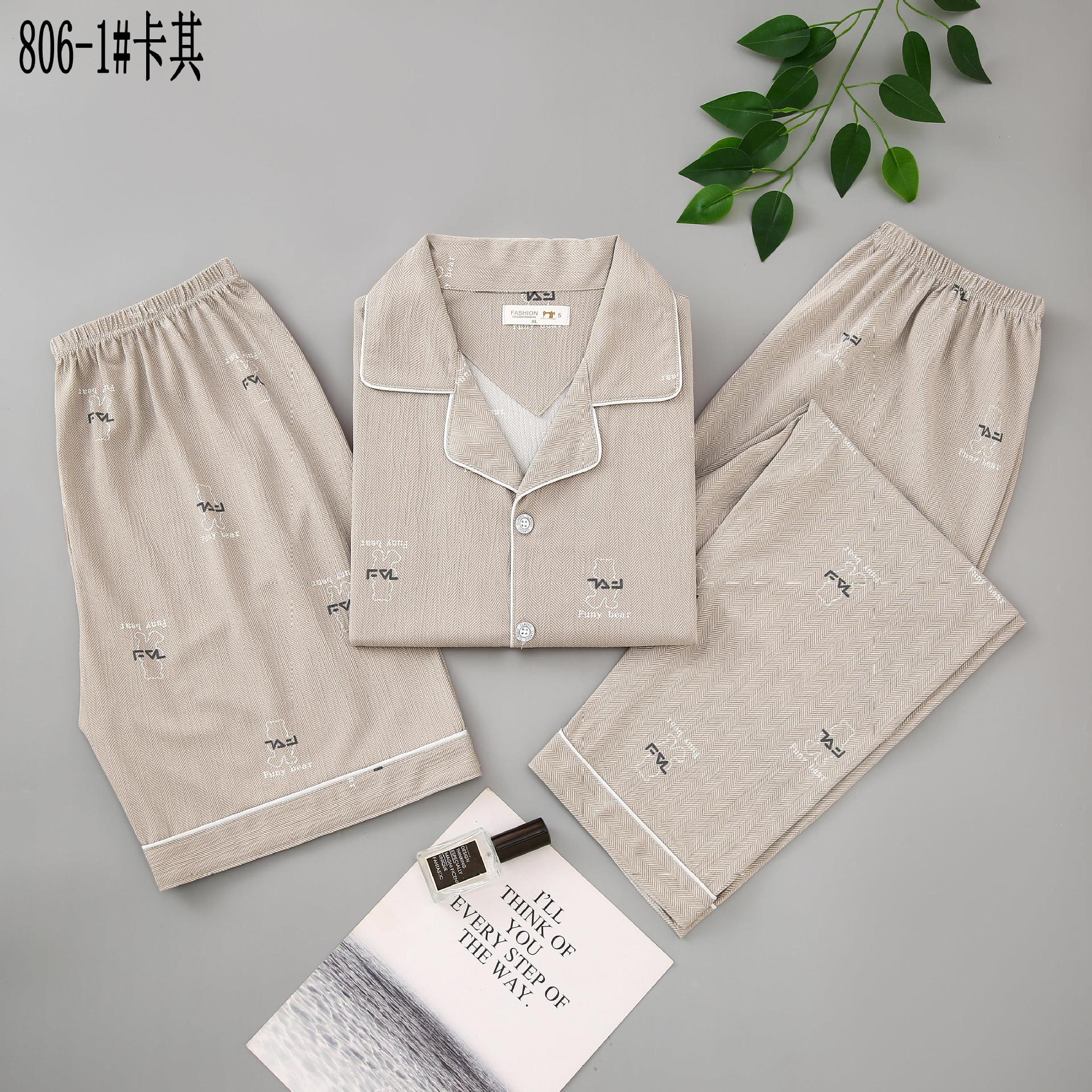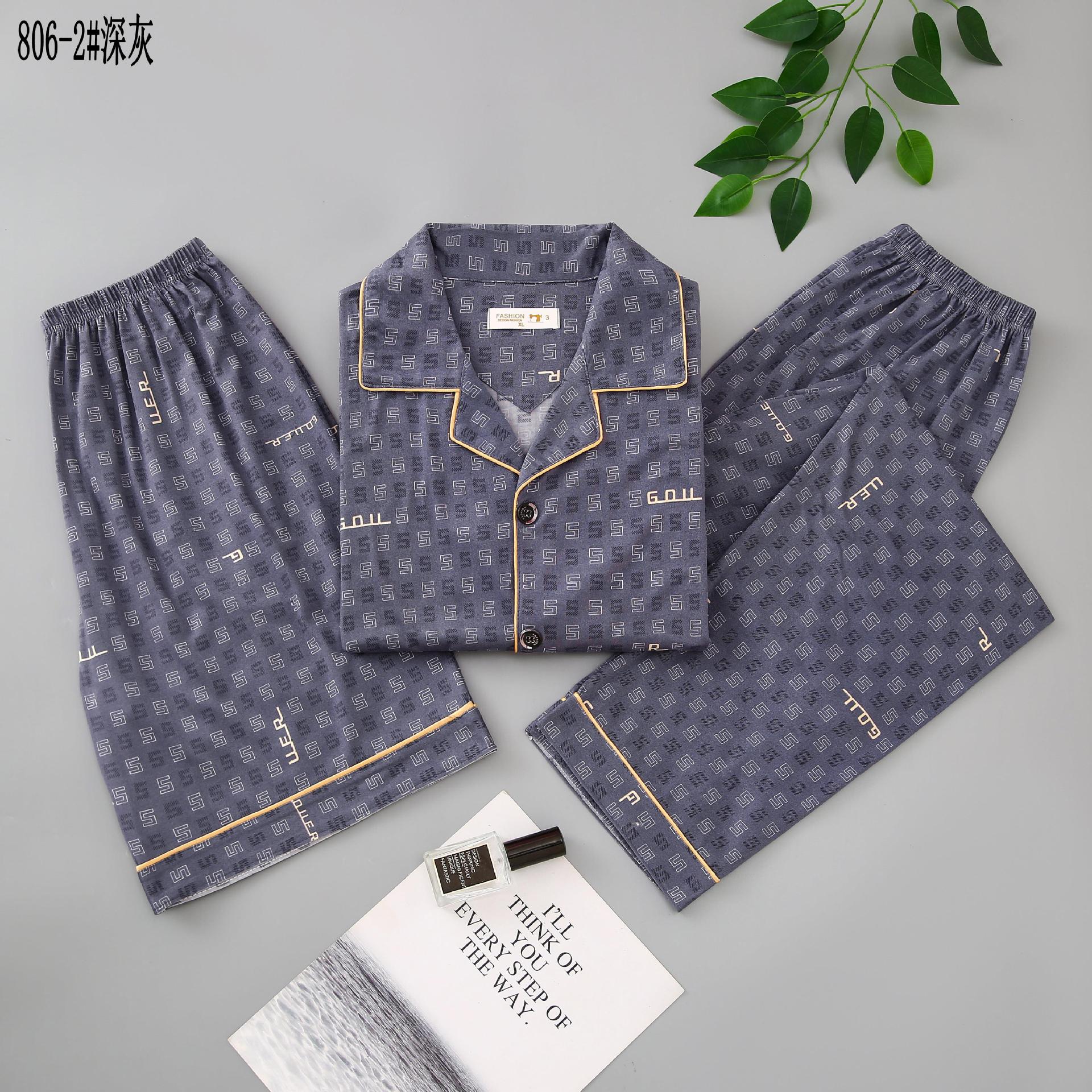 3 피스 파자마 남자 반팔 바지 반소매 중년 아빠의 봄과 여름 뚱뚱한 플러스 사이즈 느슨한 집 옷 세트스토어 가기