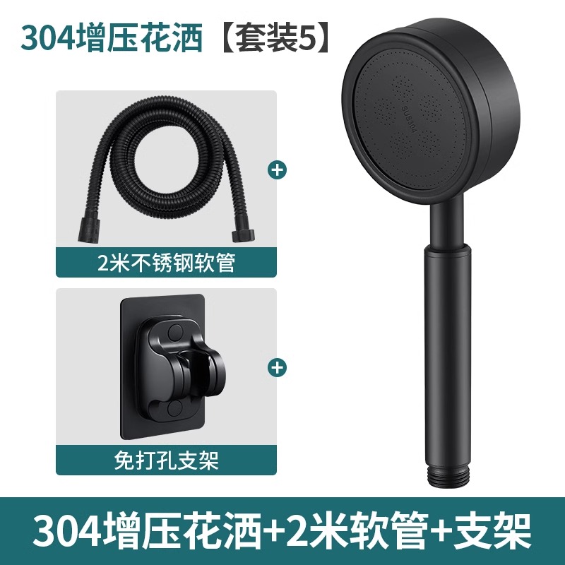 • [블랙 세트 5] 부스터 필터 샤워 헤드의 강력한 버전 + 2m 튜브 + 브래킷