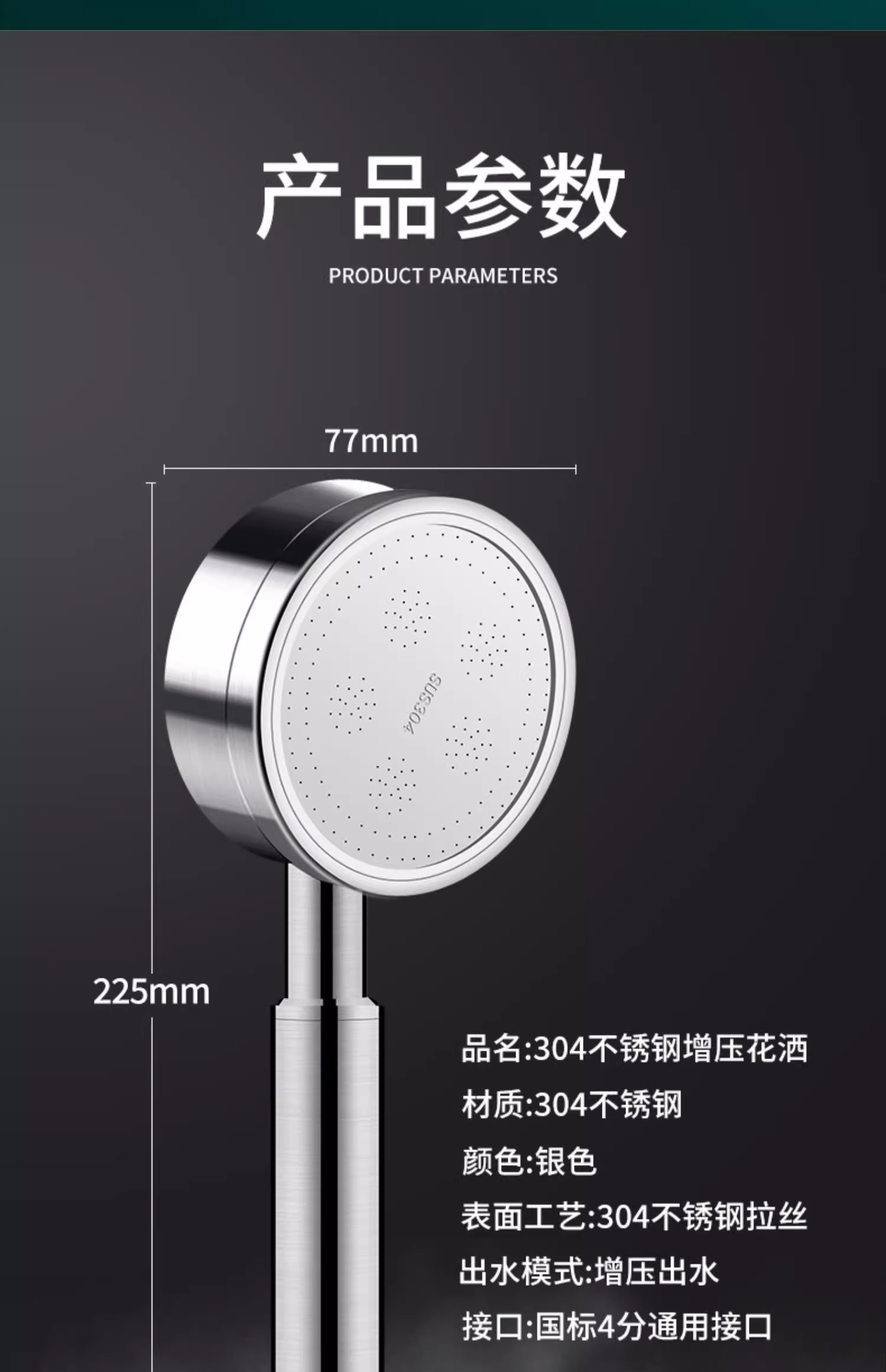 독일 304 스테인레스 스틸 압축 샤워 헤드 샤워 수도꼭지 샤워 헤드 압력 샤워 헤드스토어 가기