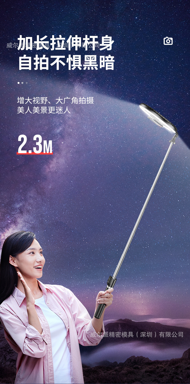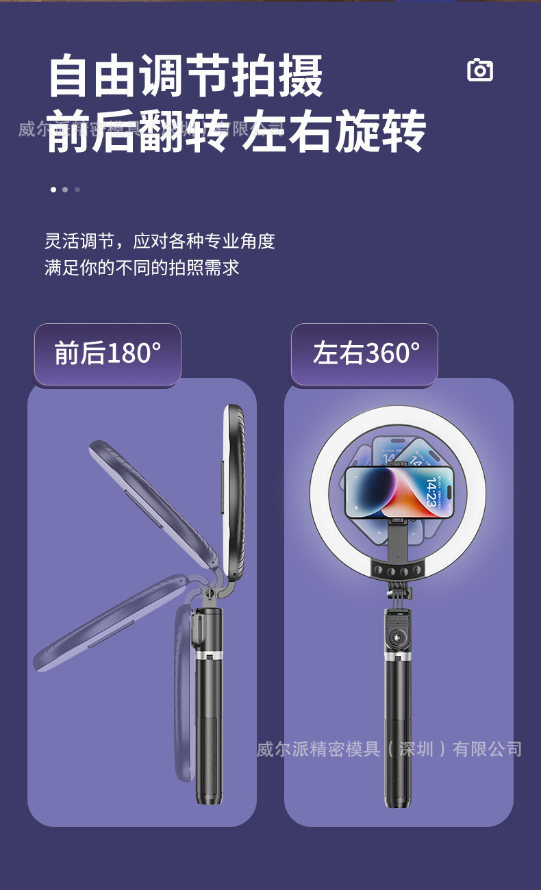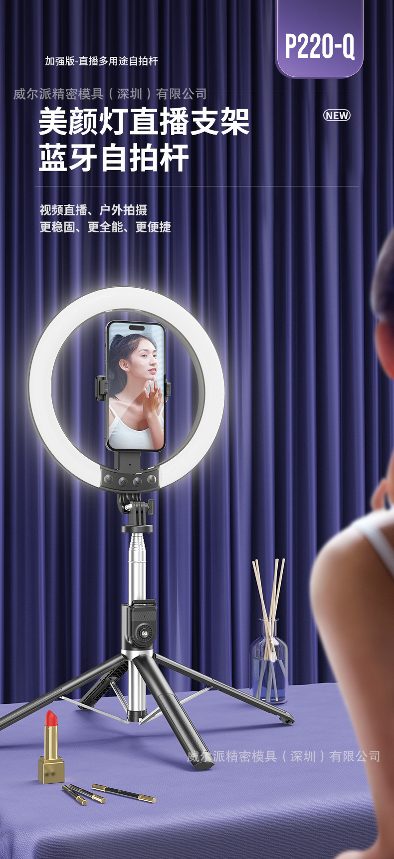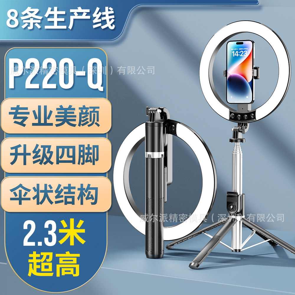 P220QRGB 큰 라운드 라이트 새로운 레벨 셀프 타이머 스틱 블루투스 라이트 보충 고성능 안정제 블루투스 셀프 타이머 스틱