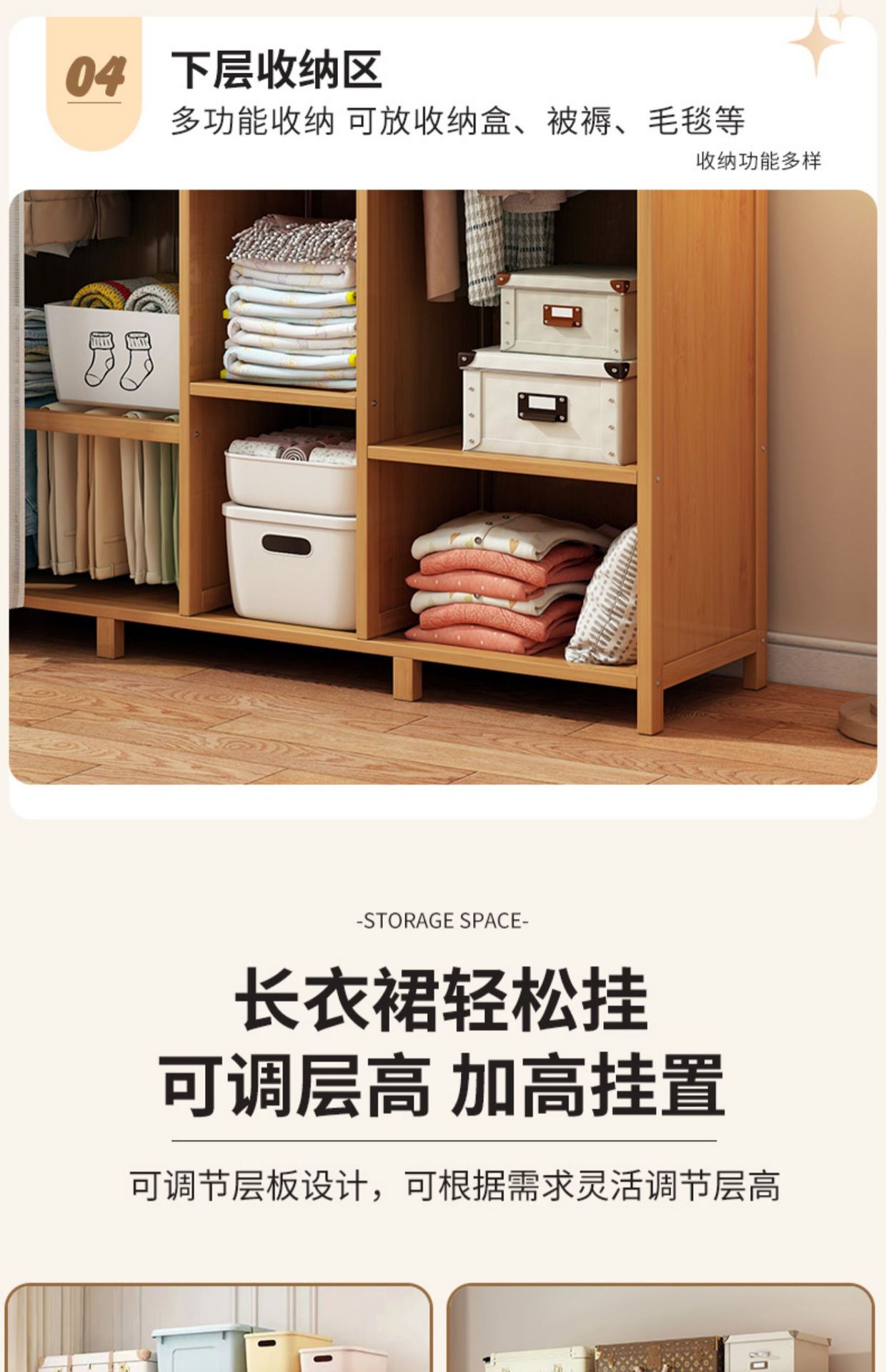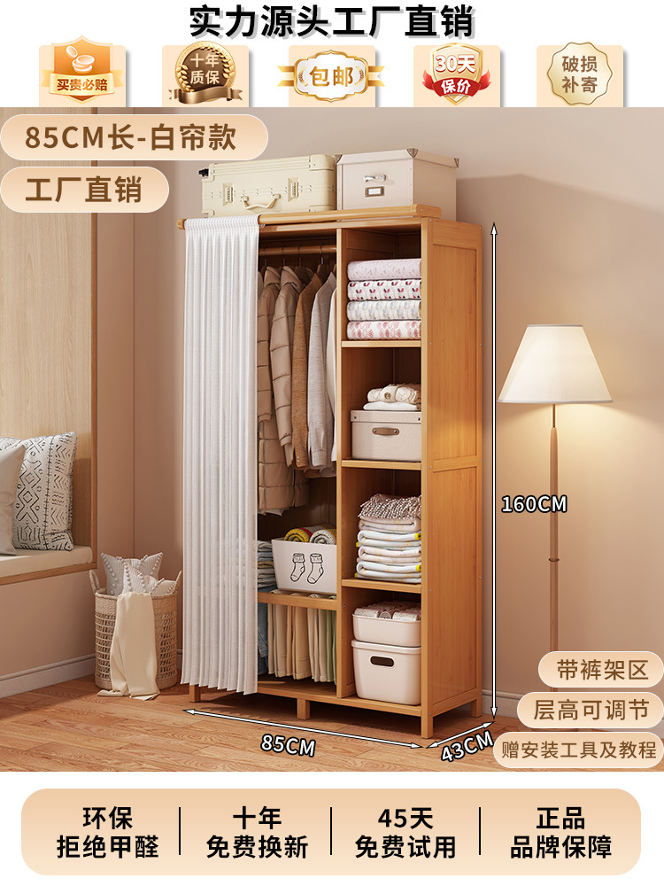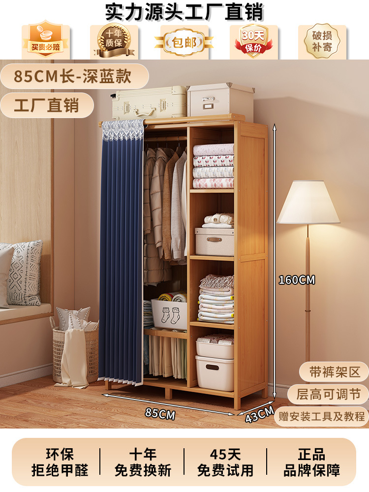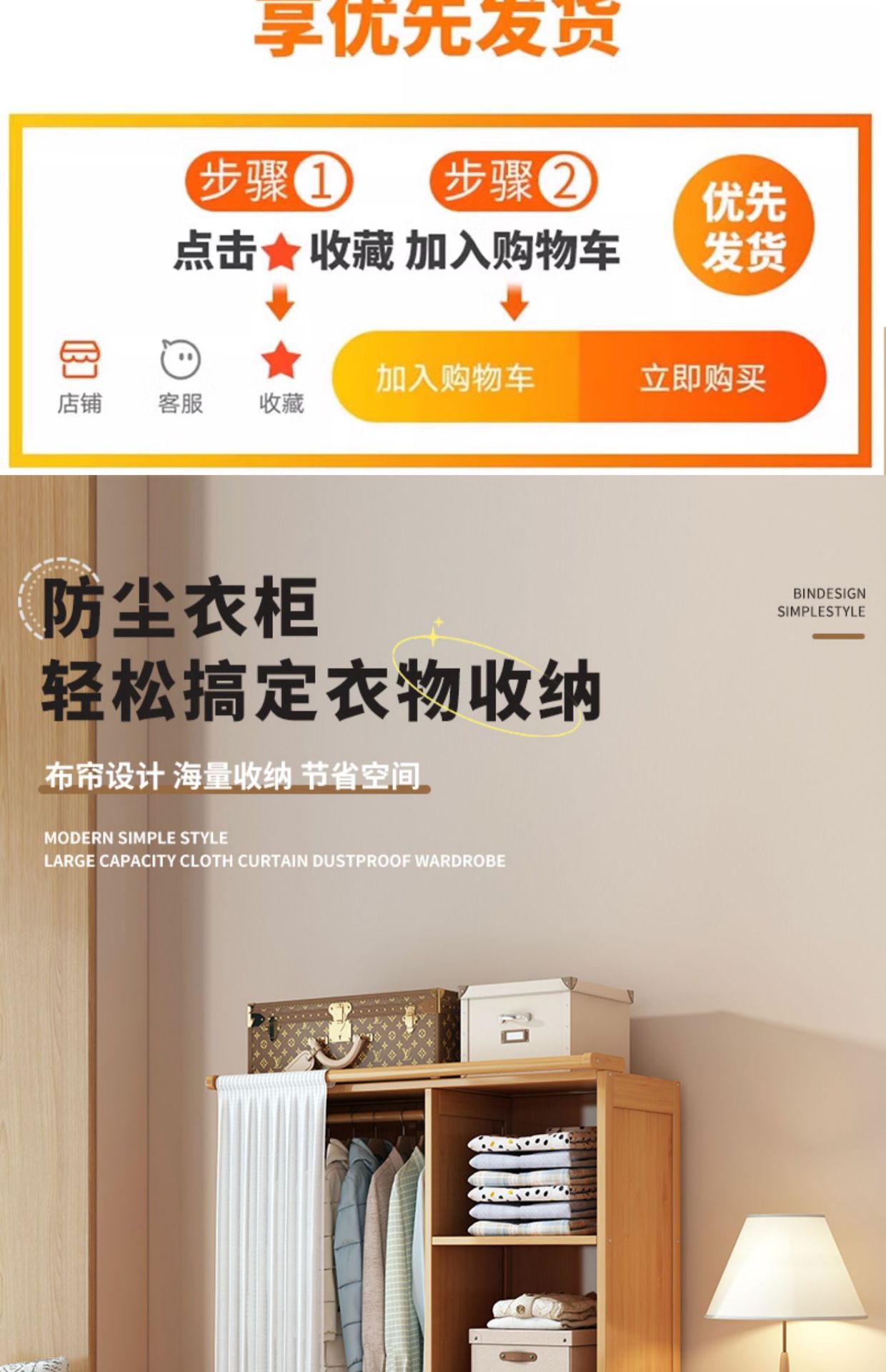 옷장 침실용 가정용 간편 조립 원목 천옷장 튼튼하고 내구성 있는 옷 수납장 임대스토어 가기
