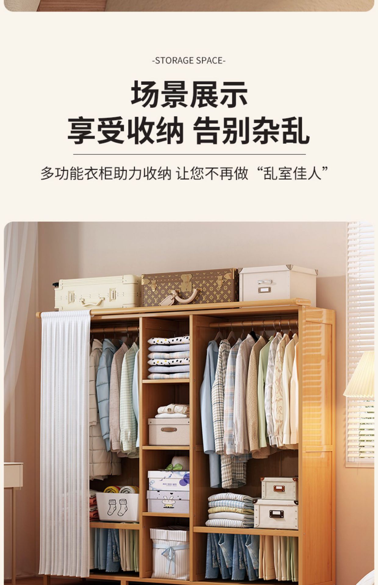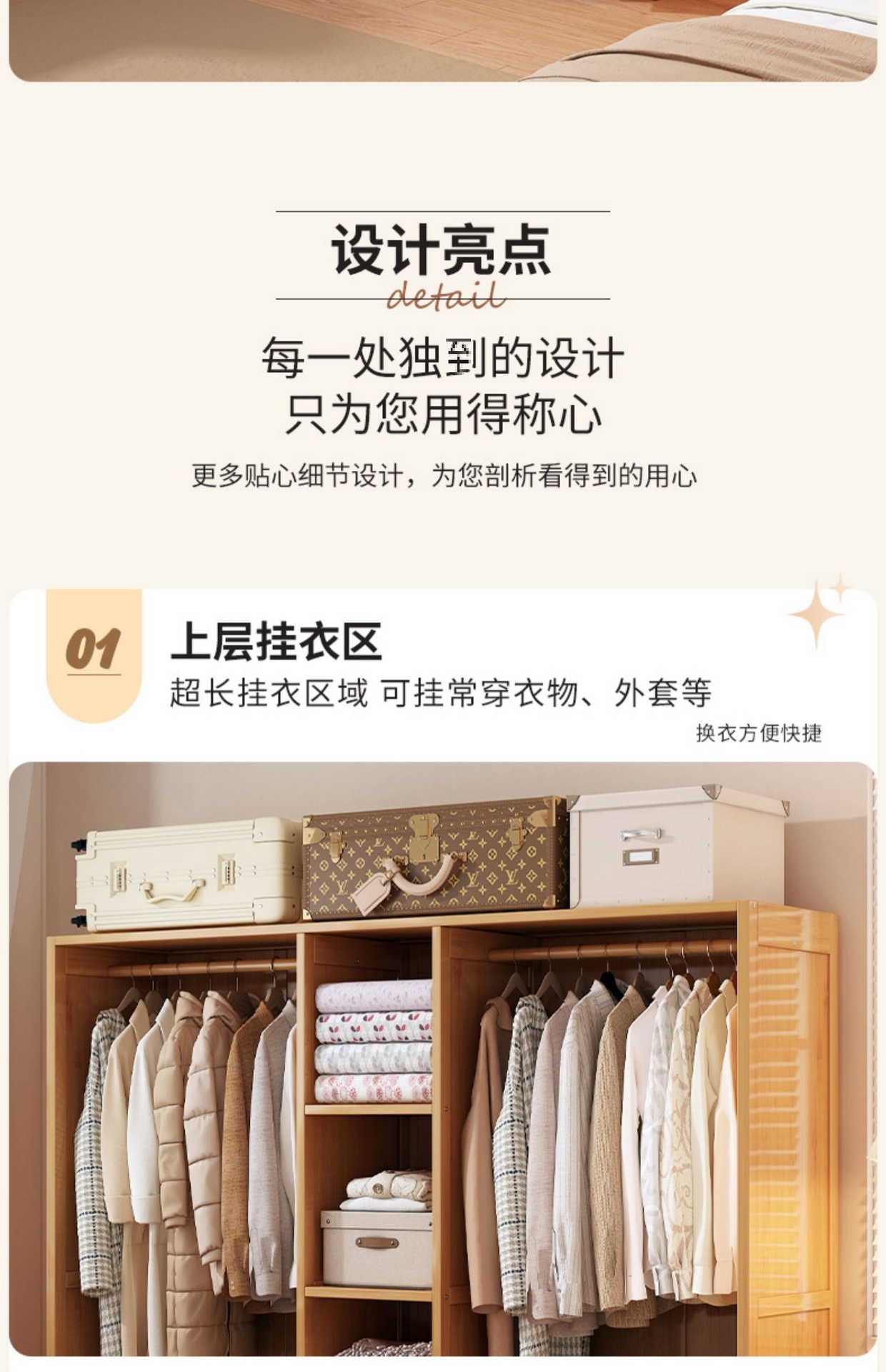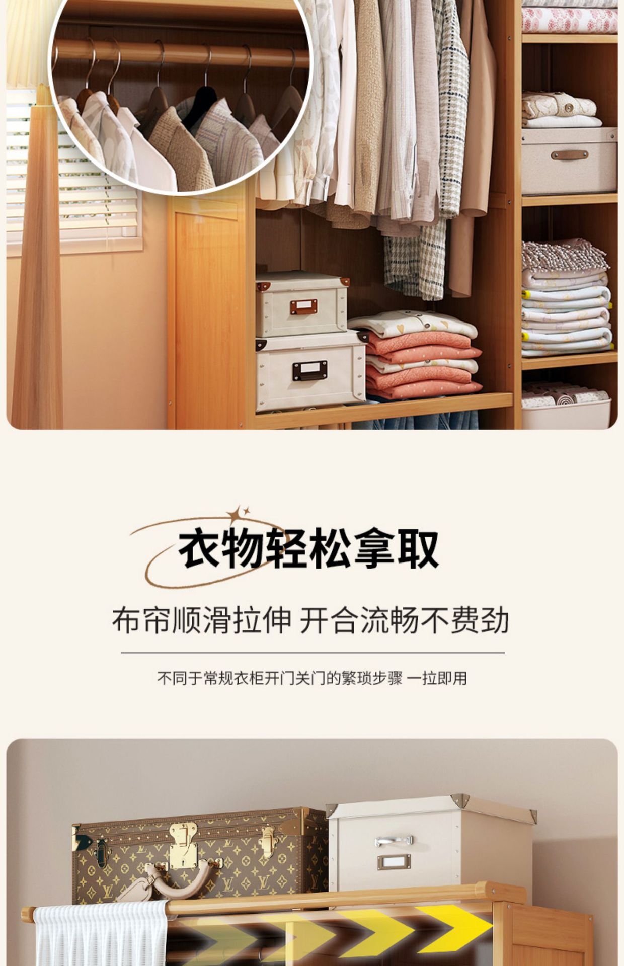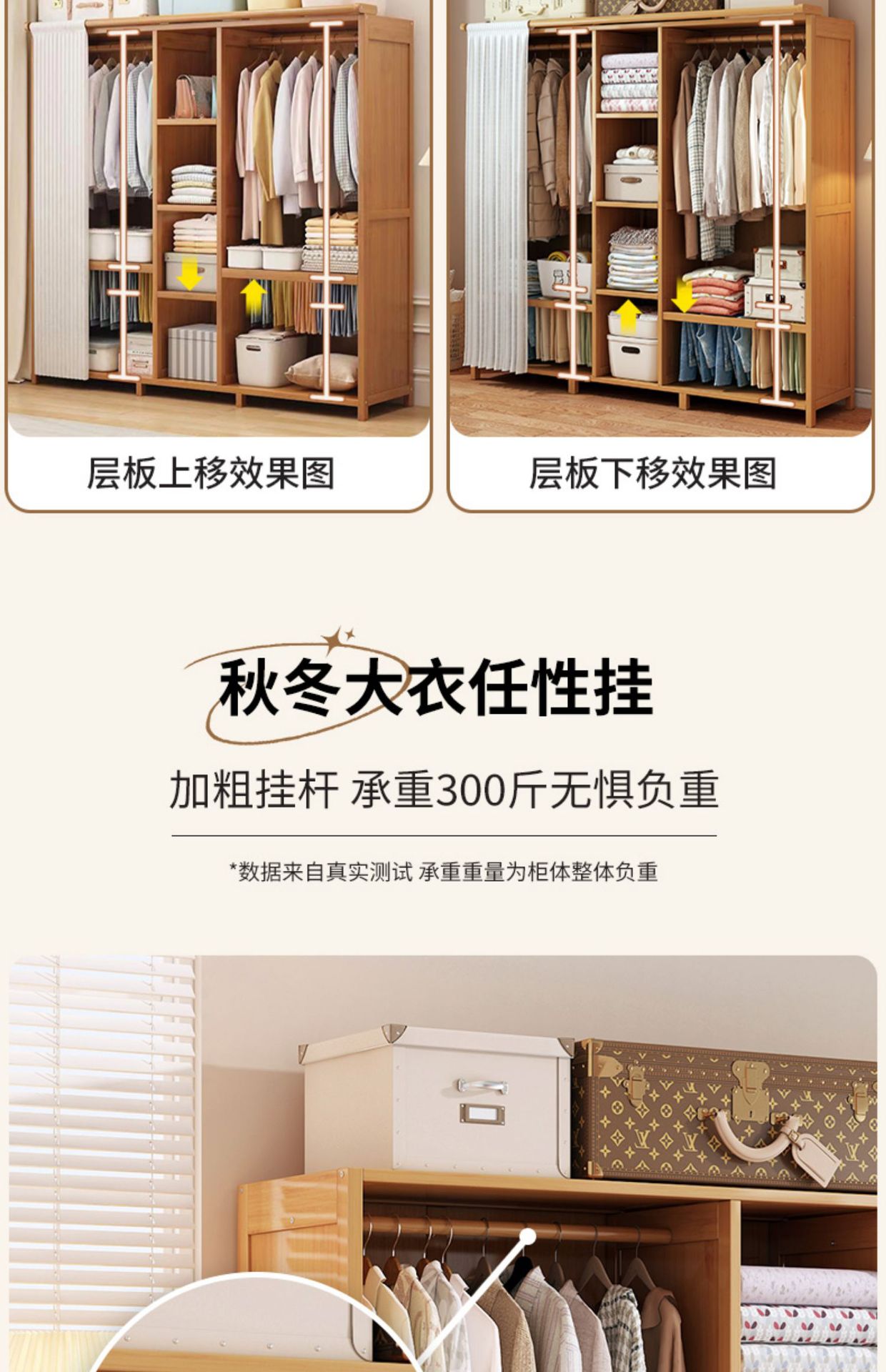 옷장 침실용 가정용 간편 조립 원목 천옷장 튼튼하고 내구성 있는 옷 수납장 임대스토어 가기