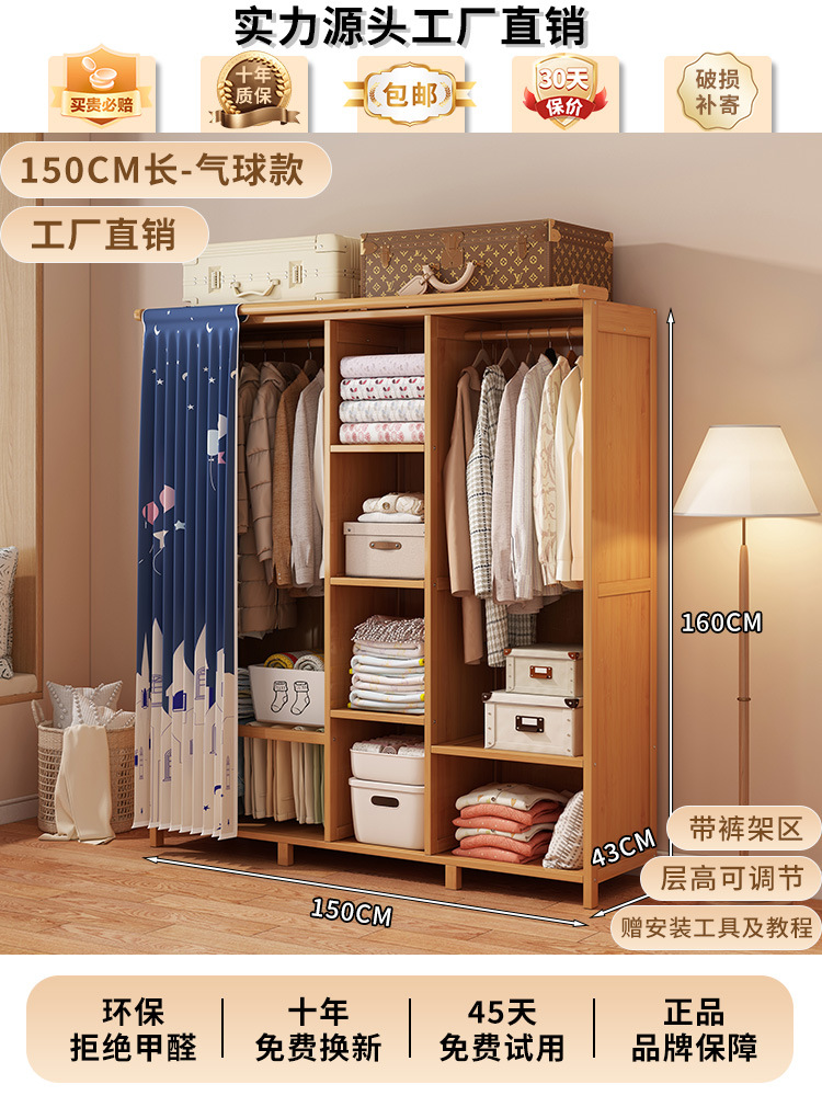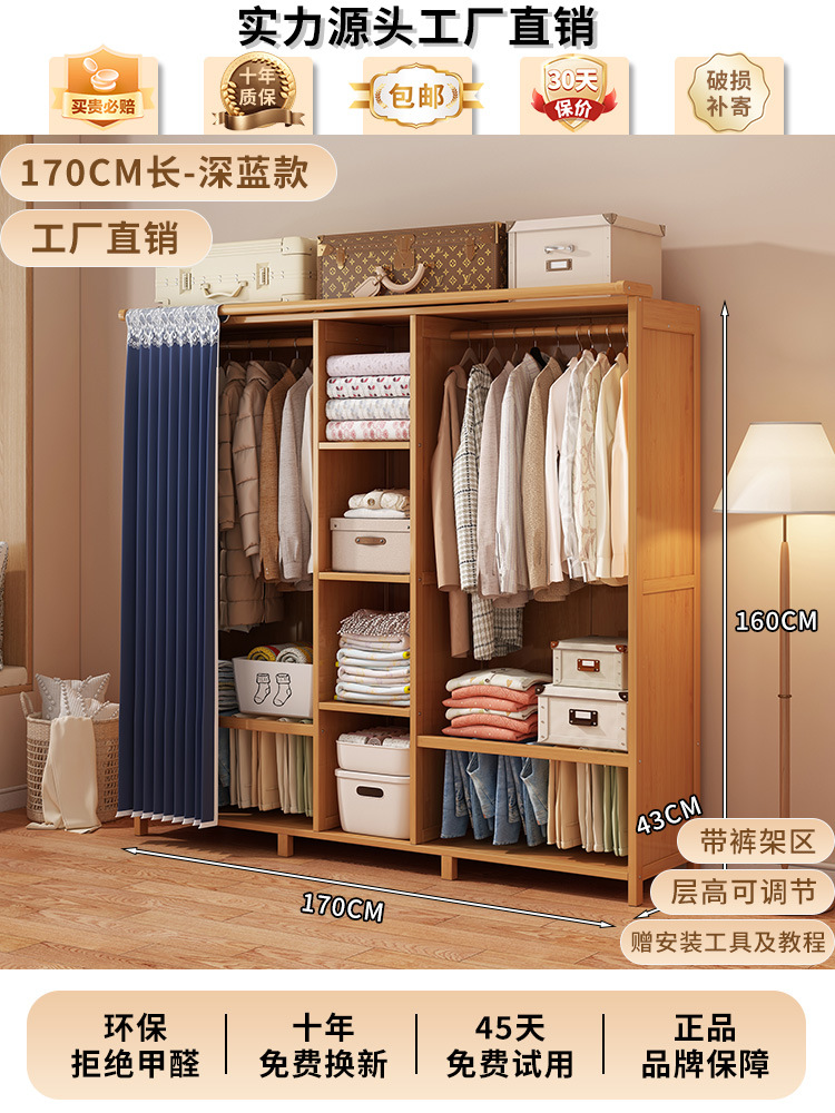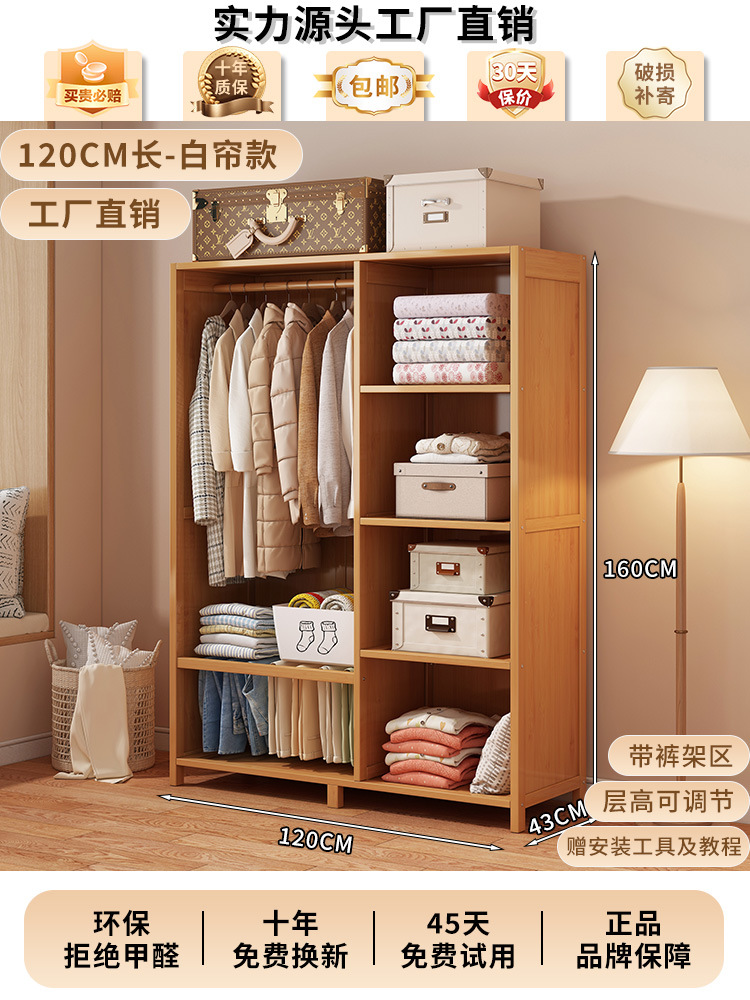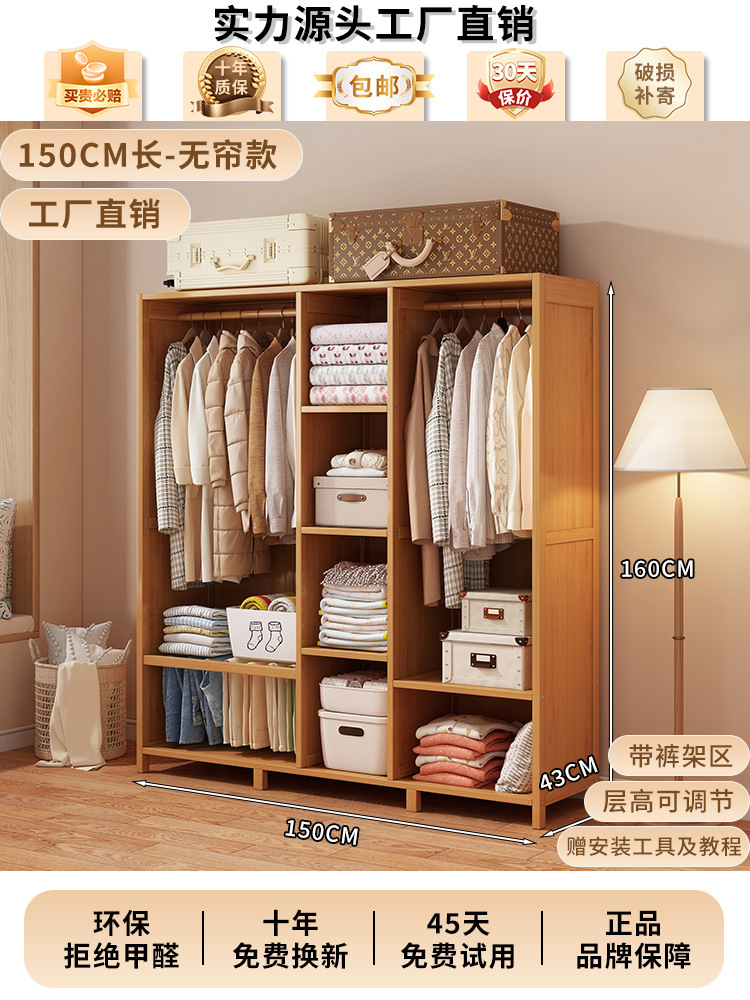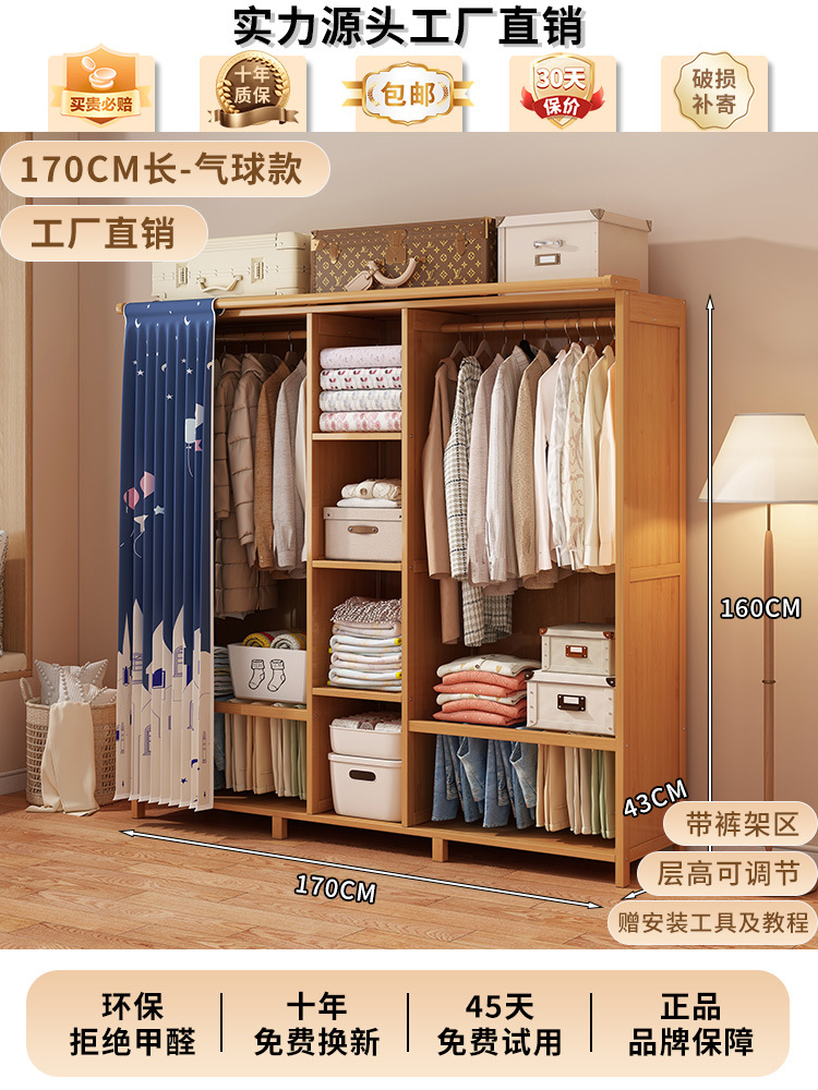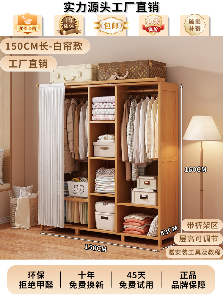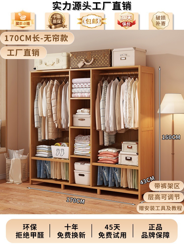옷장 침실용 가정용 간편 조립 원목 천옷장 튼튼하고 내구성 있는 옷 수납장 임대