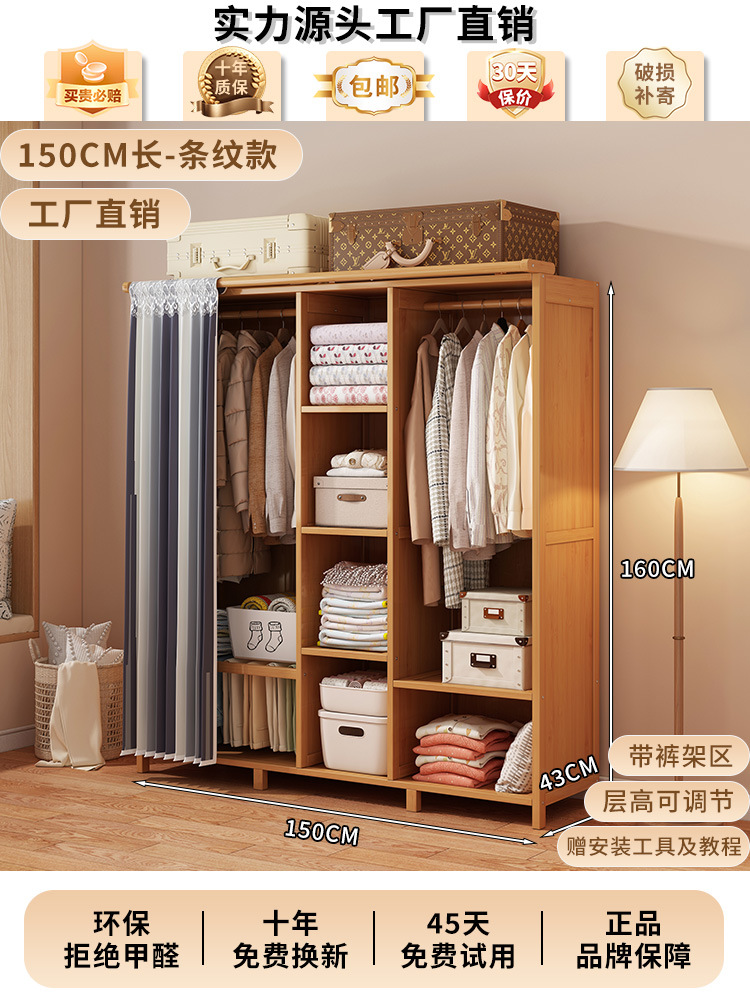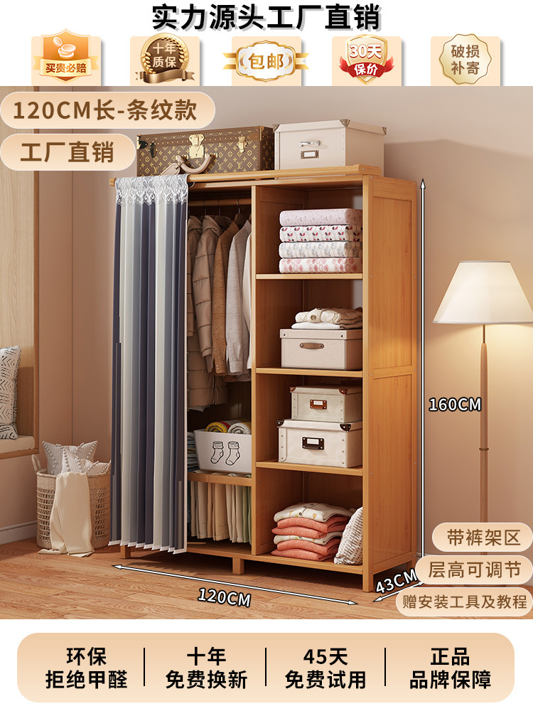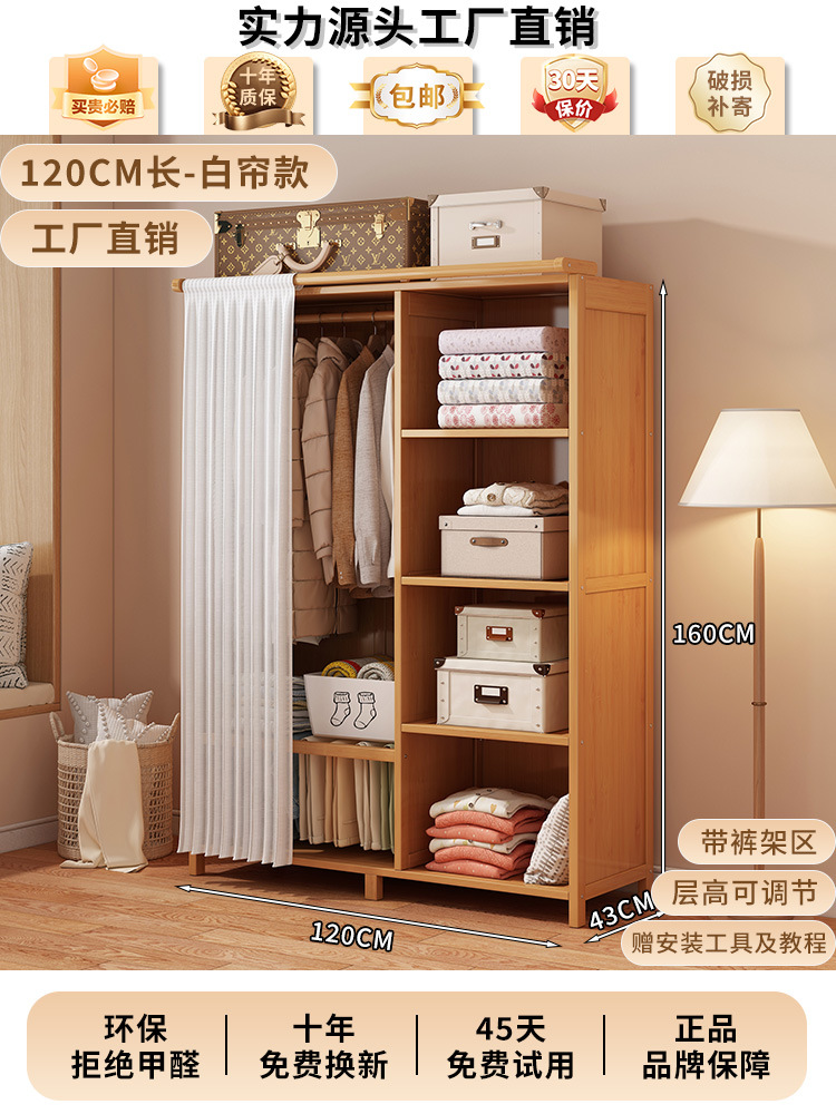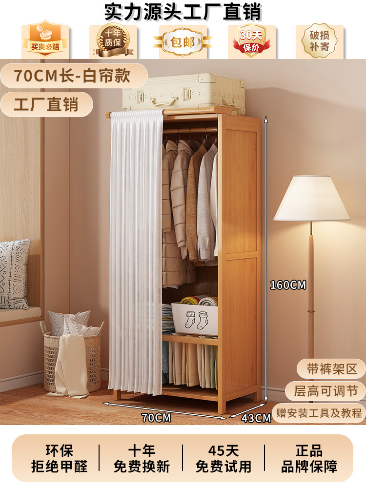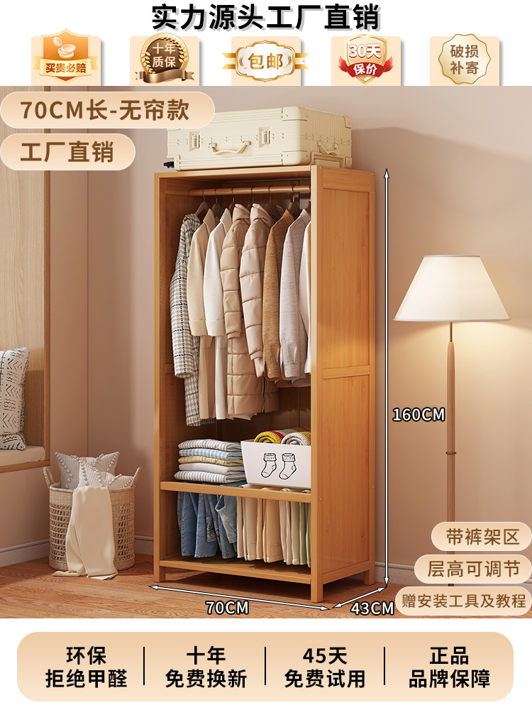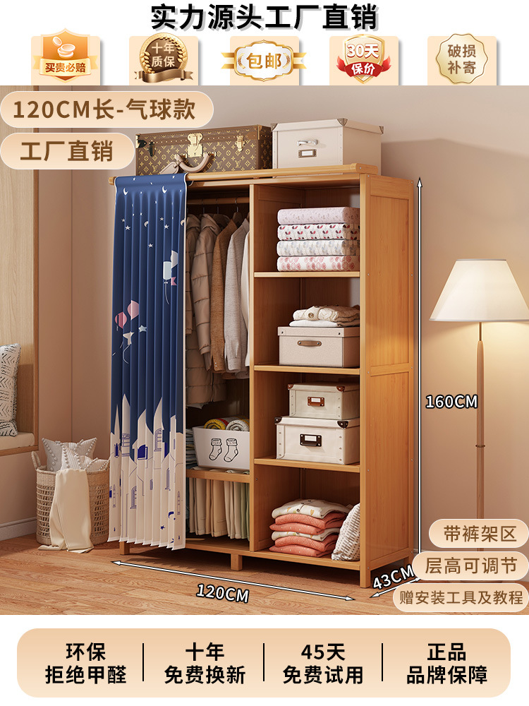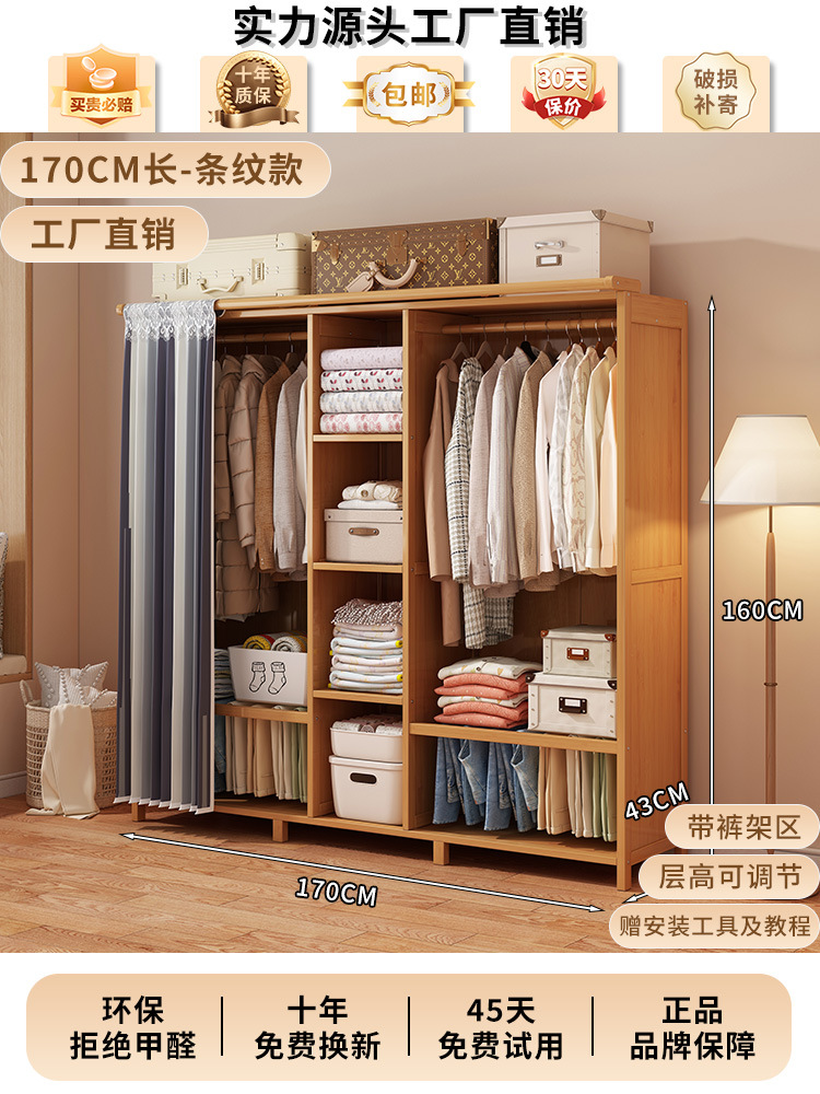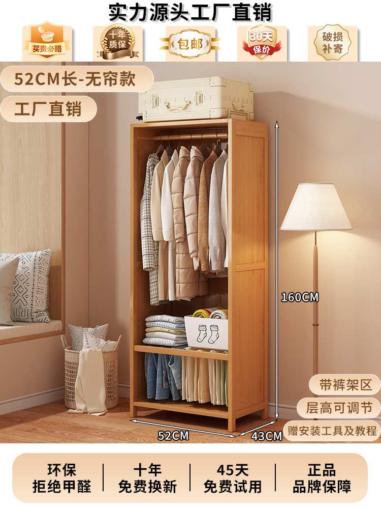 옷장 침실용 가정용 간편 조립 원목 천옷장 튼튼하고 내구성 있는 옷 수납장 임대