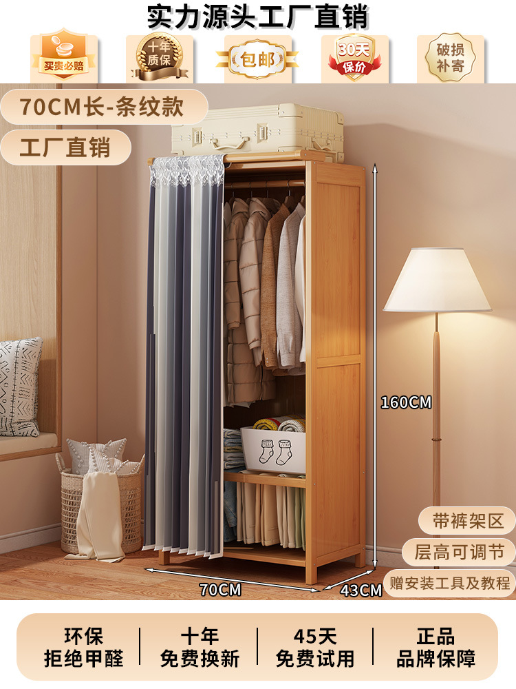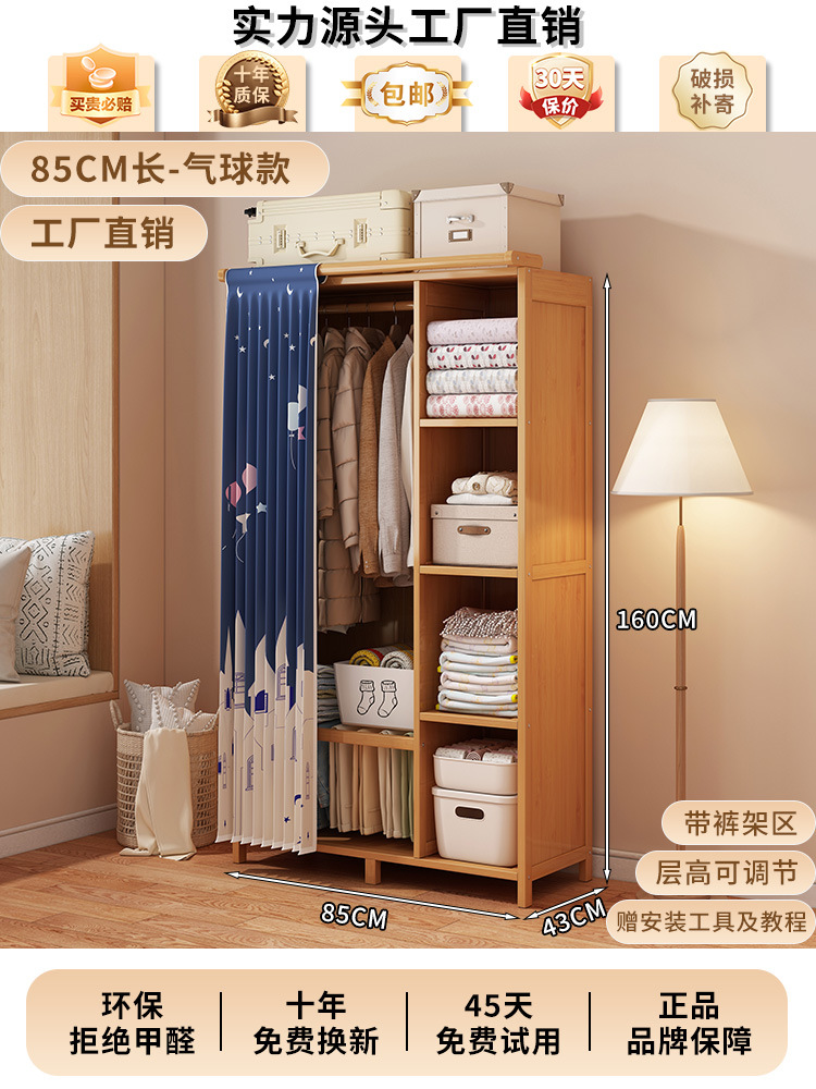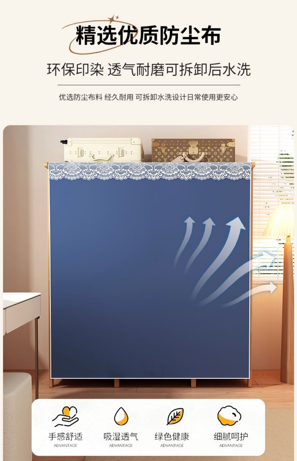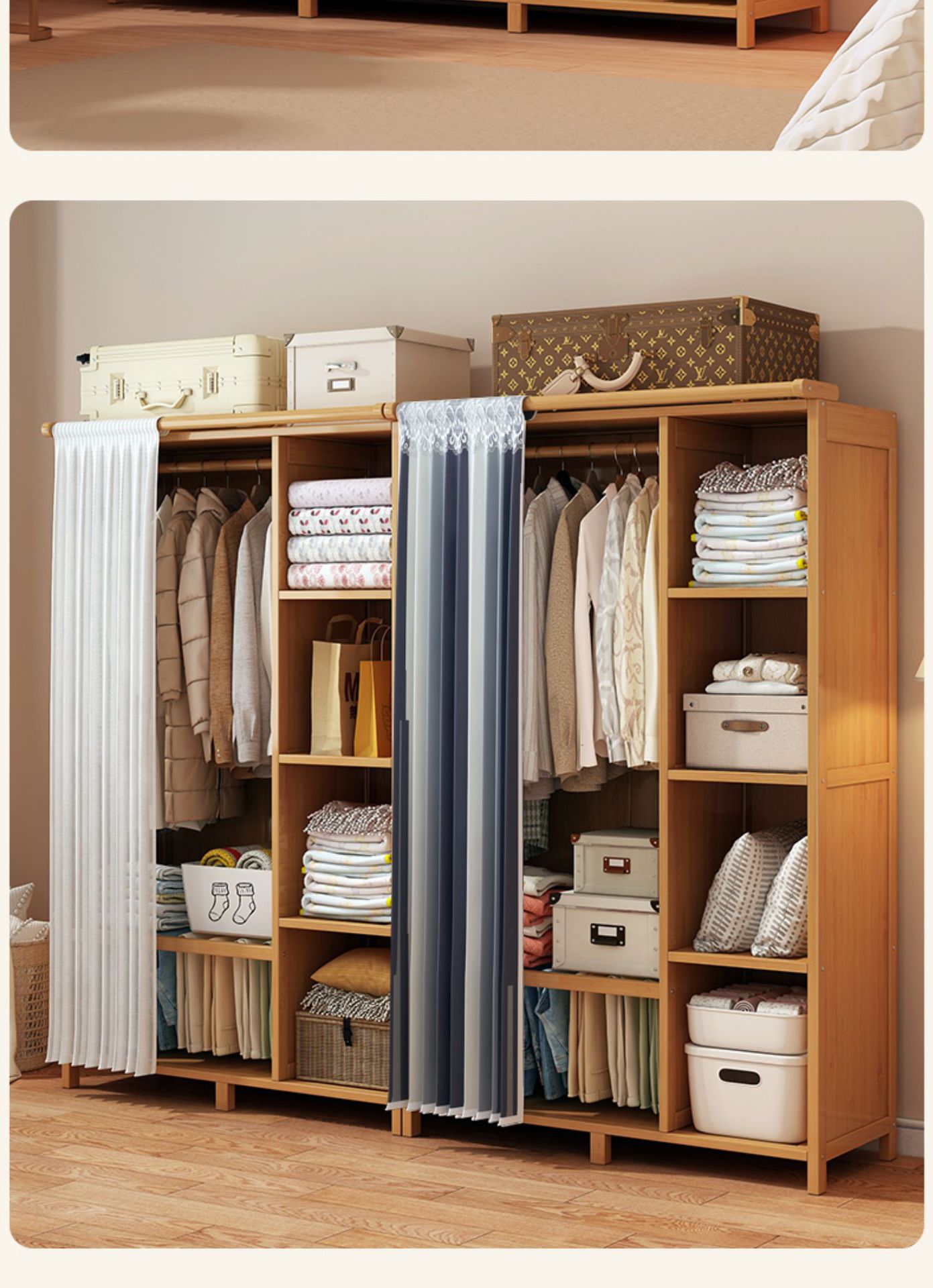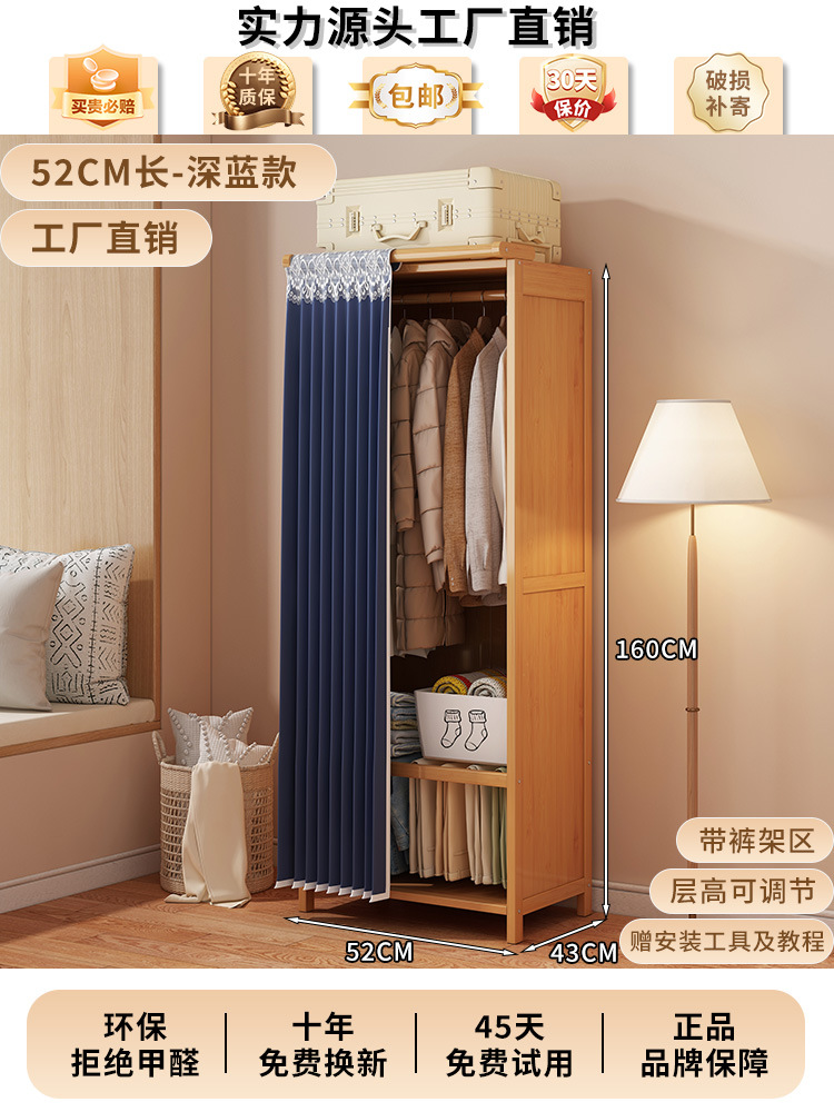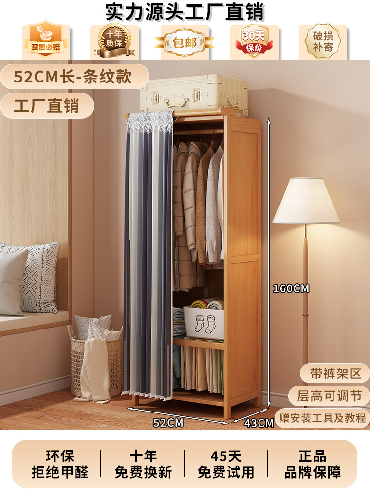 옷장 침실용 가정용 간편 조립 원목 천옷장 튼튼하고 내구성 있는 옷 수납장 임대