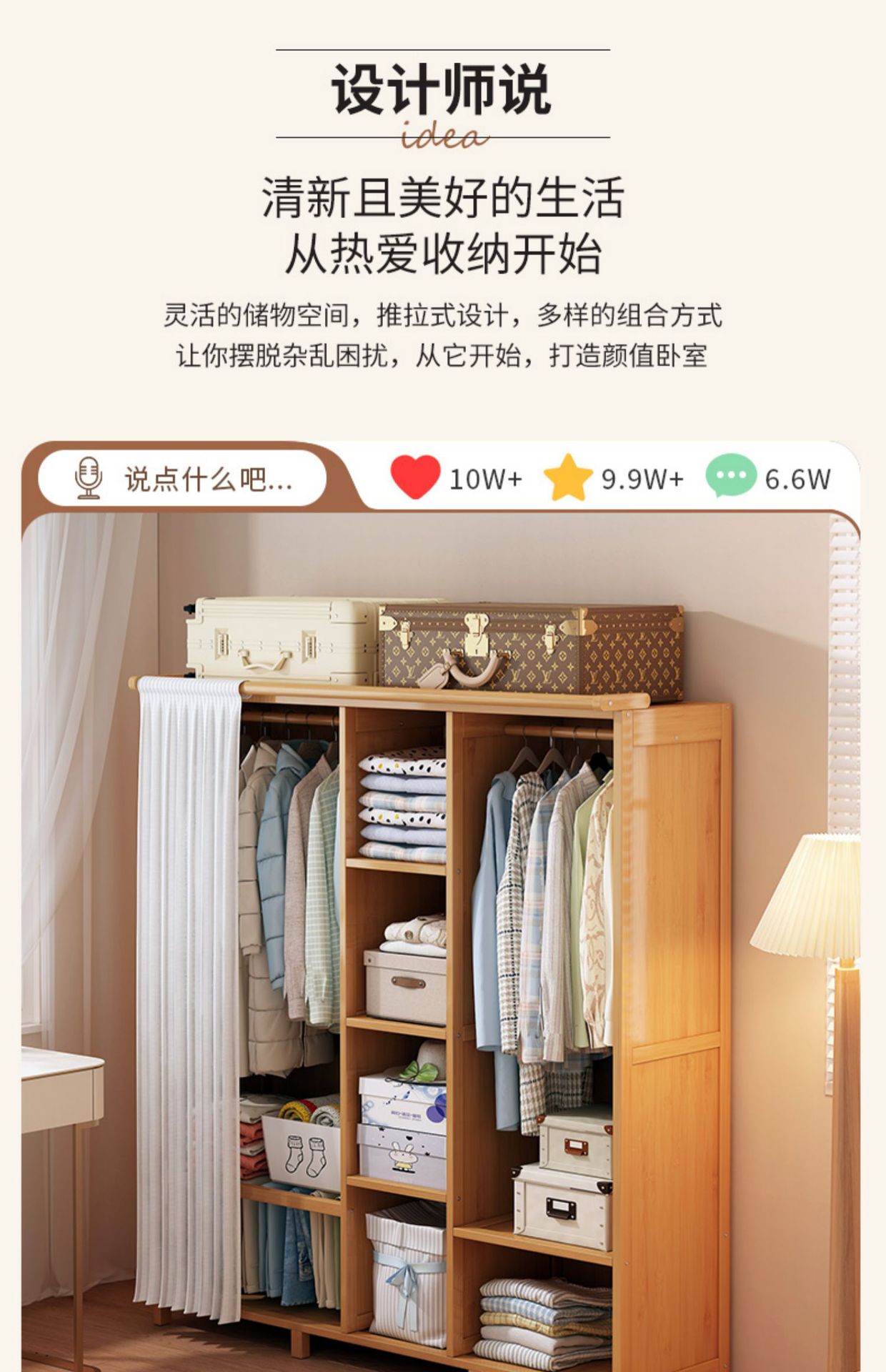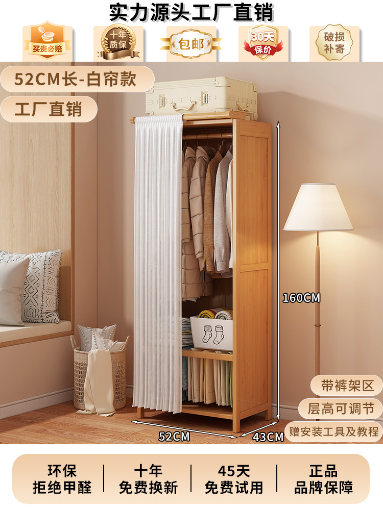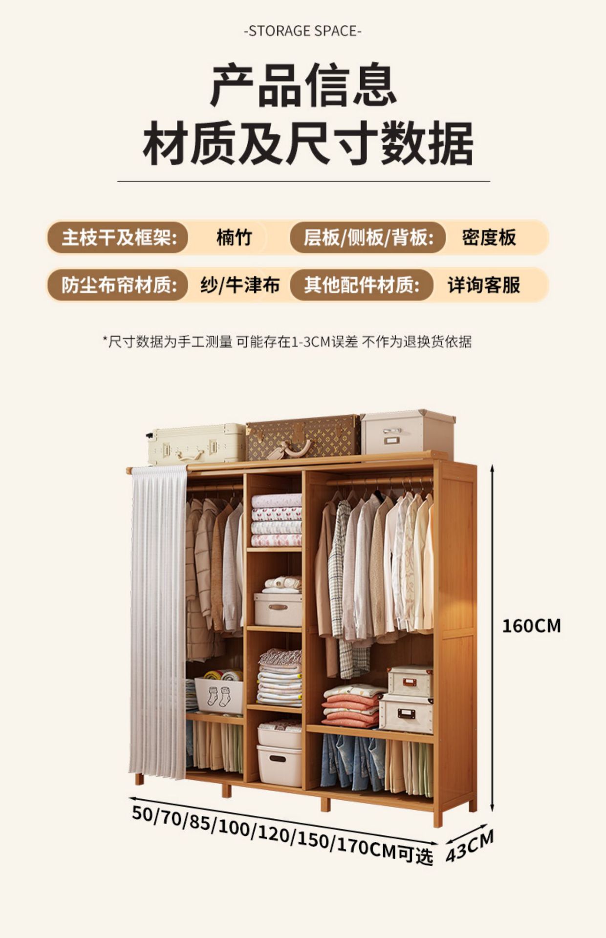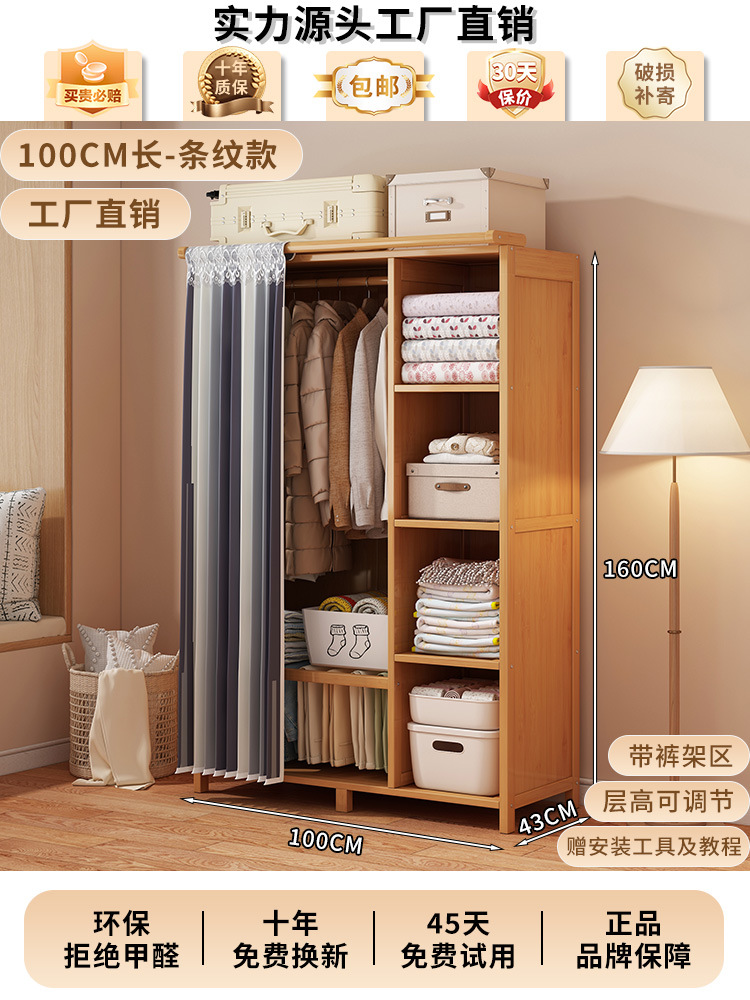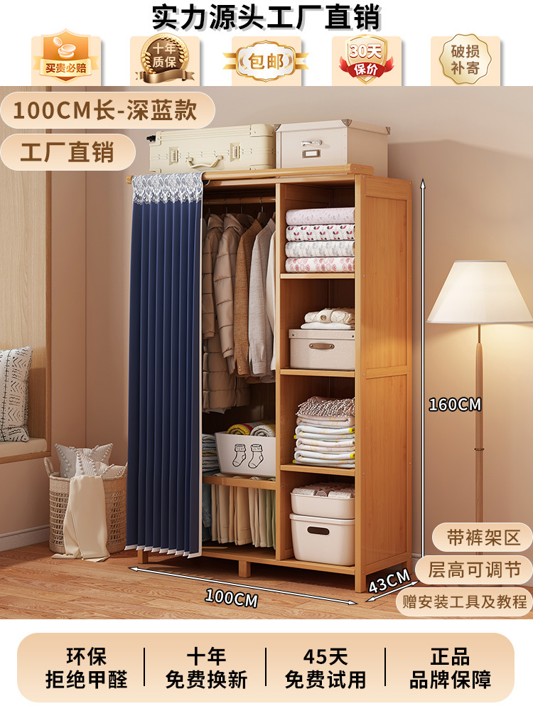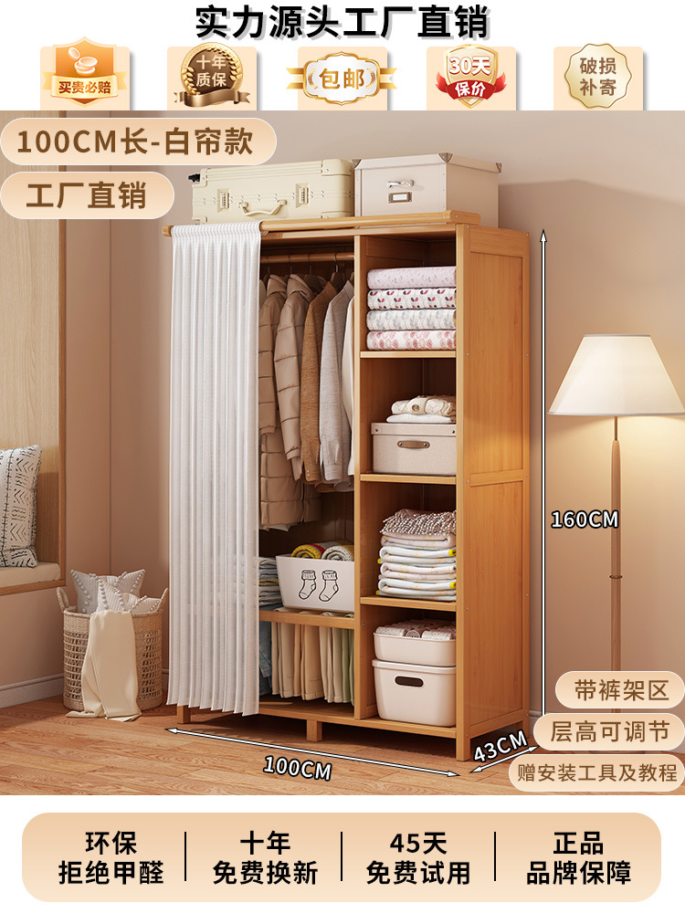 옷장 침실용 가정용 간편 조립 원목 천옷장 튼튼하고 내구성 있는 옷 수납장 임대