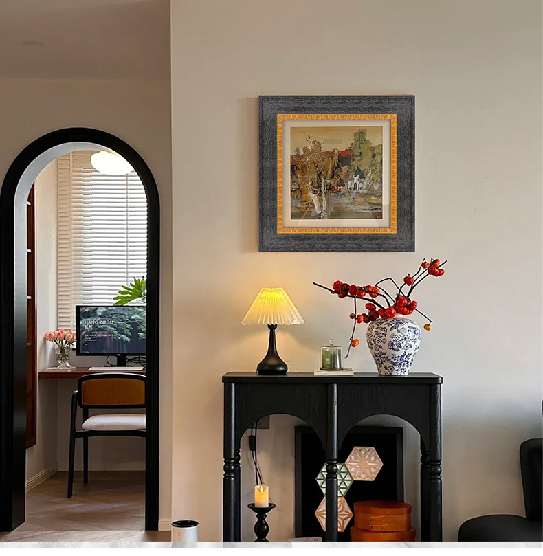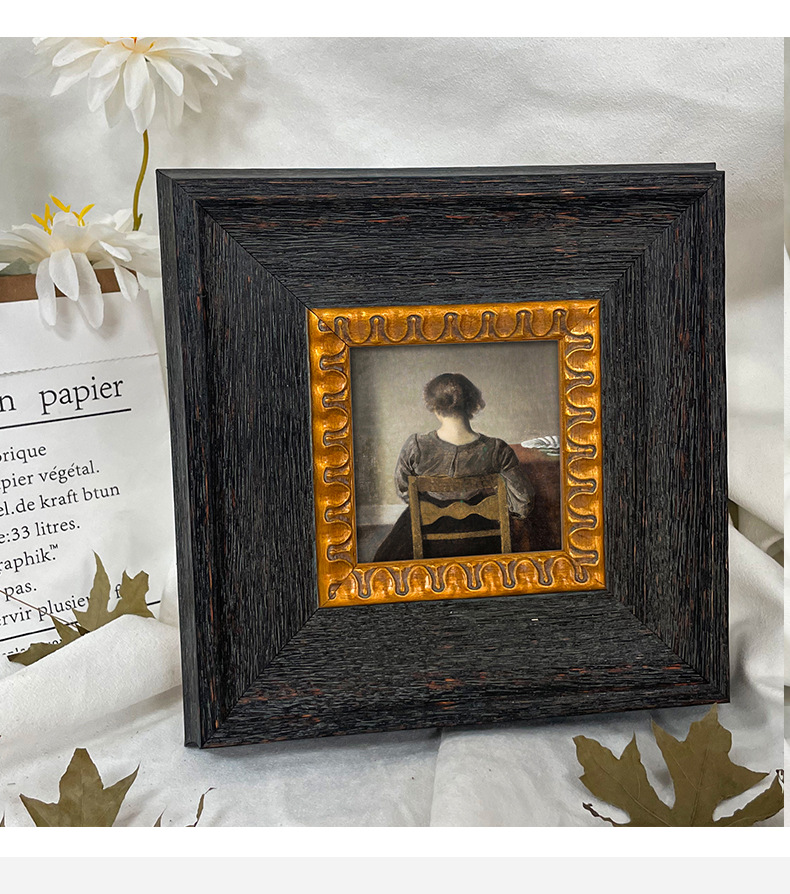 골동품 우드 그레인 프놈펜 유화 프레임 블랙 골드 컬러 매칭 레트로 간단한 스타일 사진 프레임 벽 교수형 장착 테이블