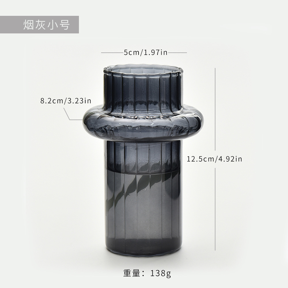 북유럽 빛 럭셔리 연기 회색 대나무 유리 꽃병 간단한 창조적 인 데스크탑 아로마 테라피 병 장식품 수경 꽃병