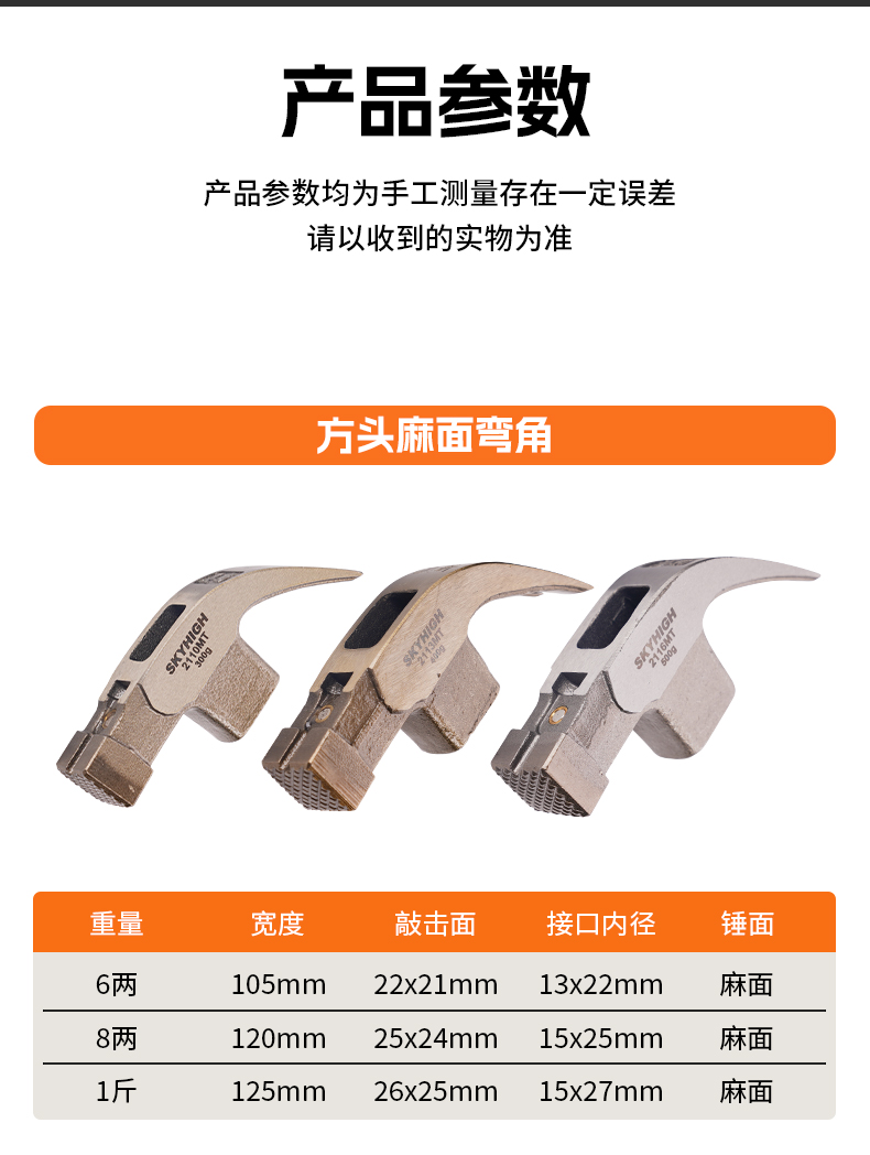 • 사각헤드, 움푹 패인 모서리( 0.5kg )