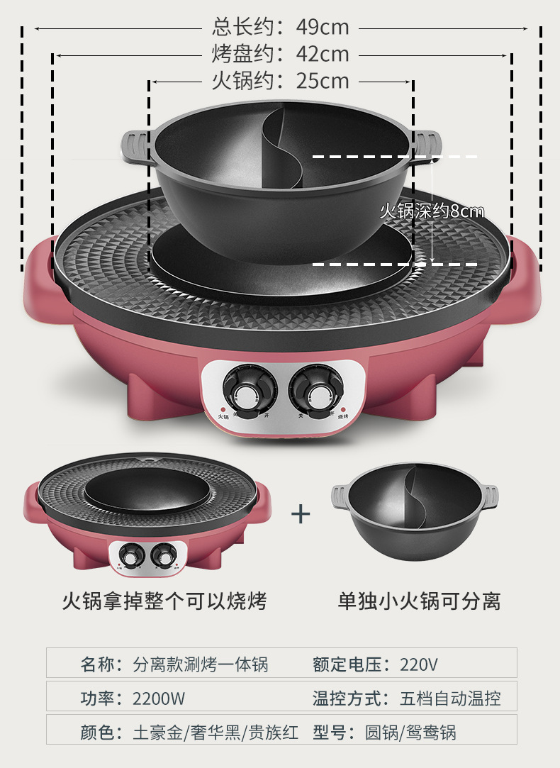 • 52.5CM 거대한 빨간색 전체 분리 + 파우더 학생 냄비 + 배달 랙 및 둥근 냄비