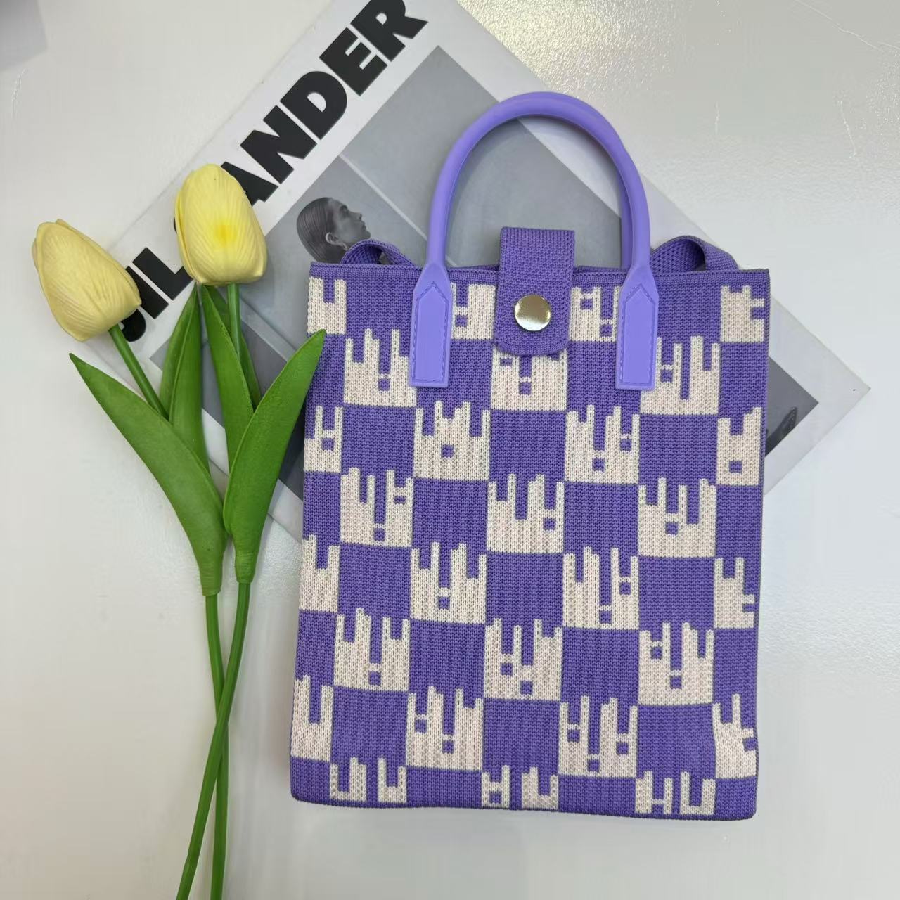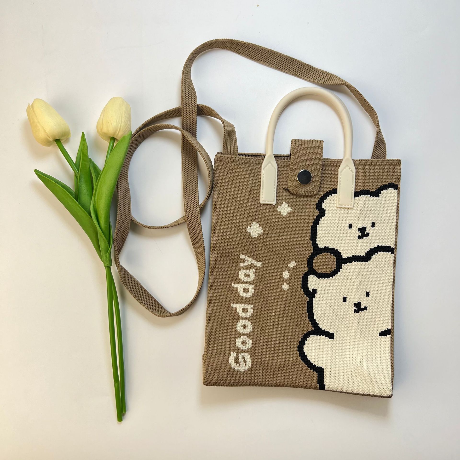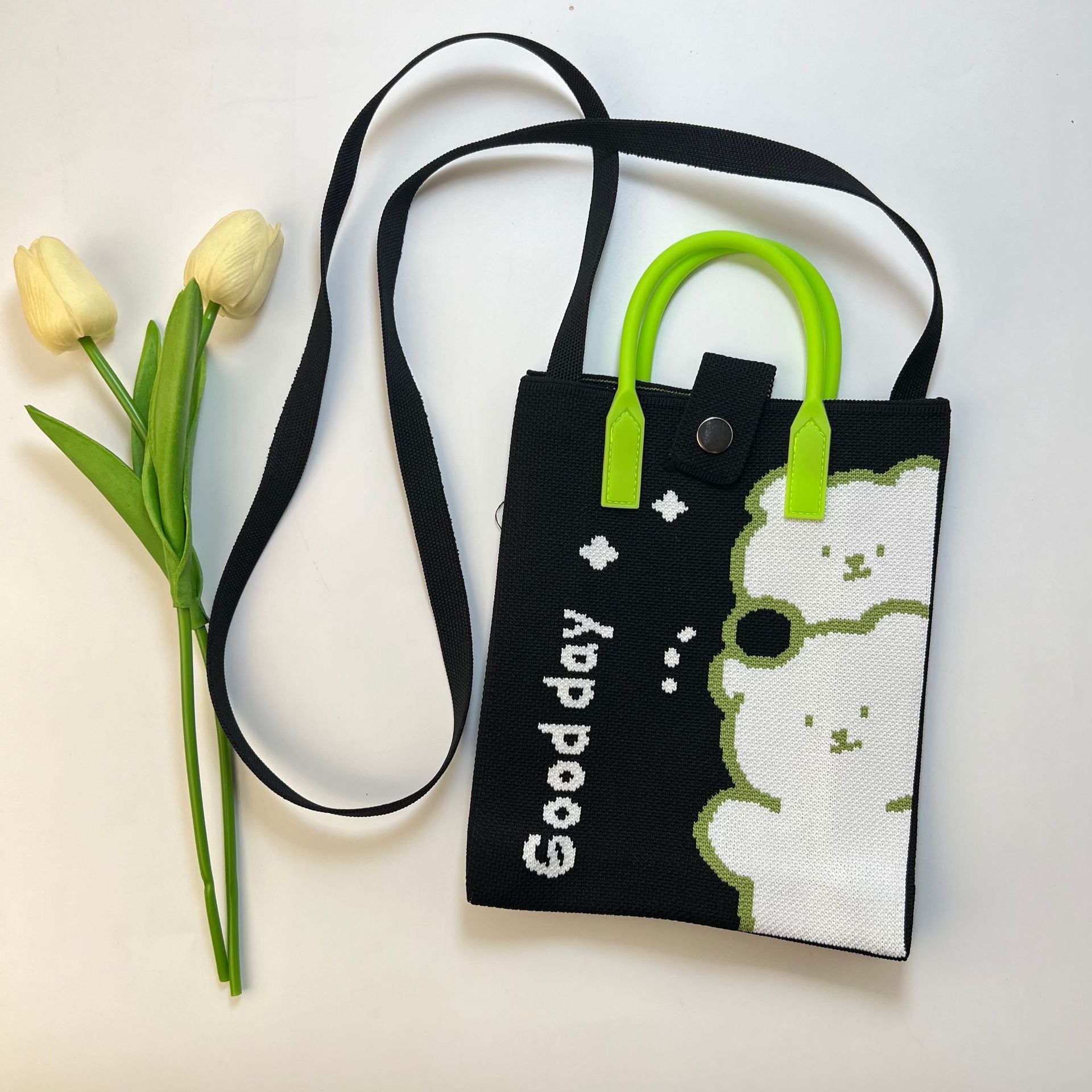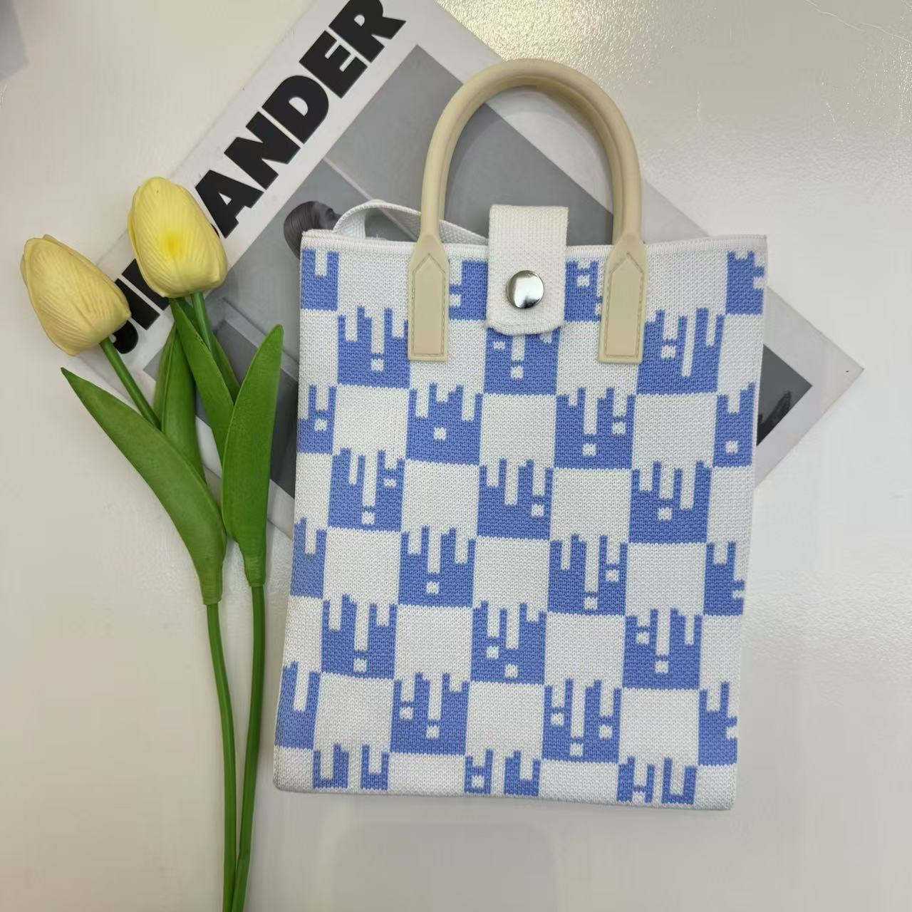 2024 새로운 도파민 만화 니트 휴대 전화 가방 여성 한국식 올 매치 숄더 백 크로스 바디 백 니트 핸드백
