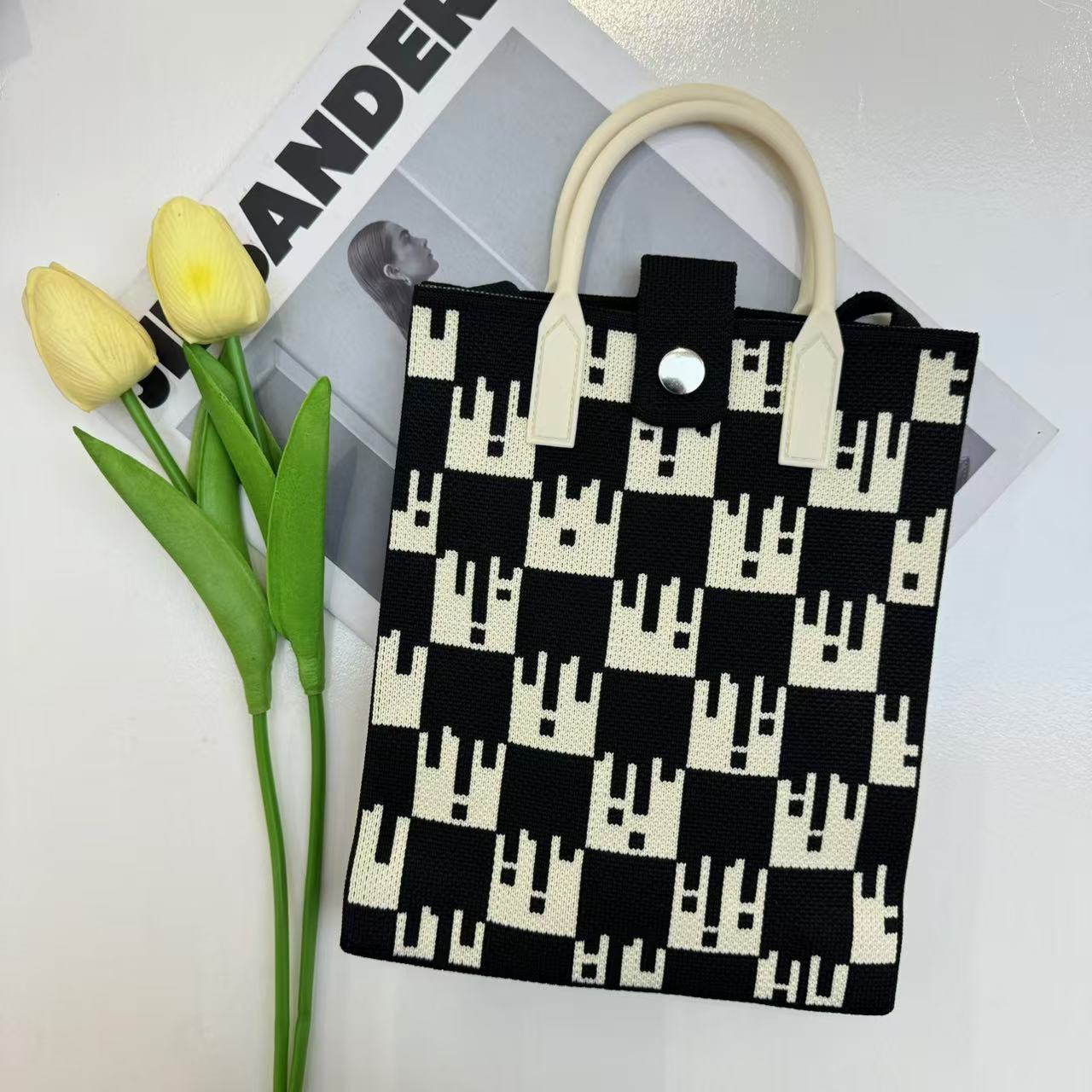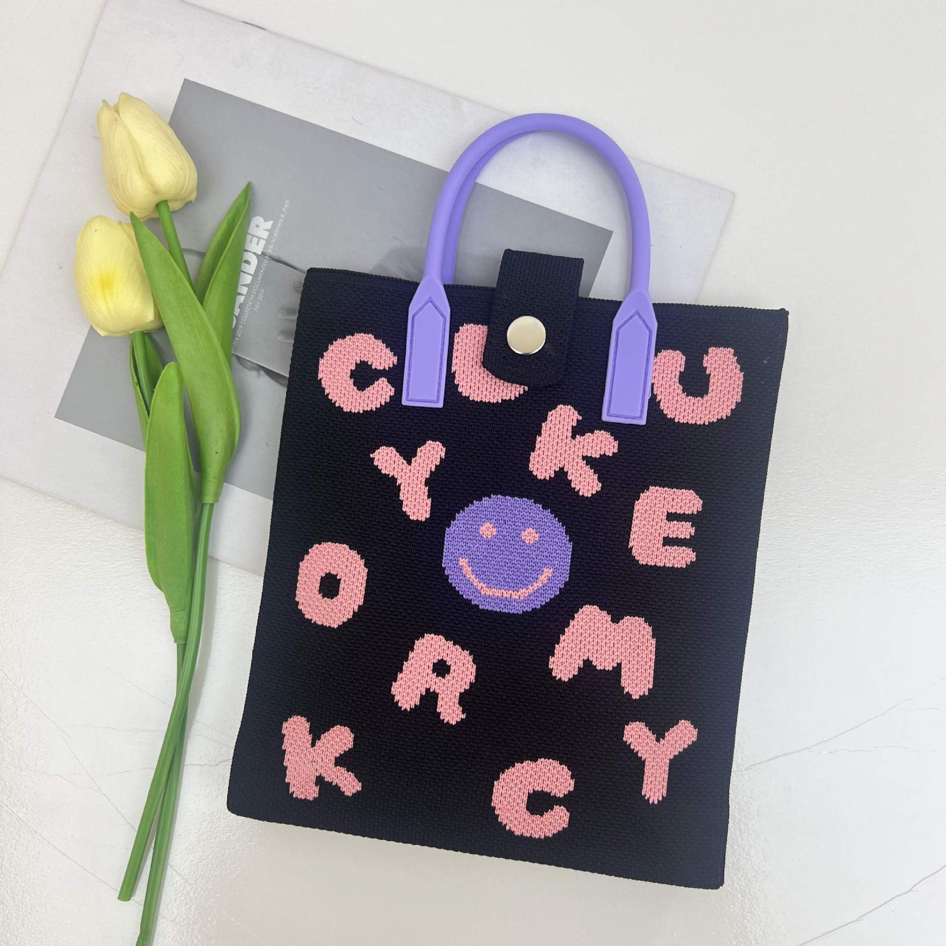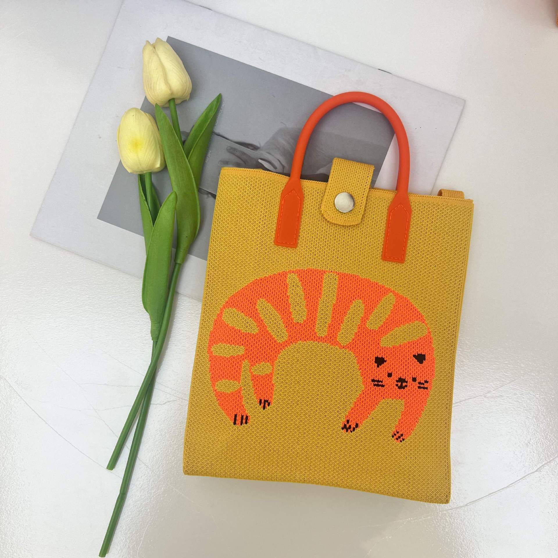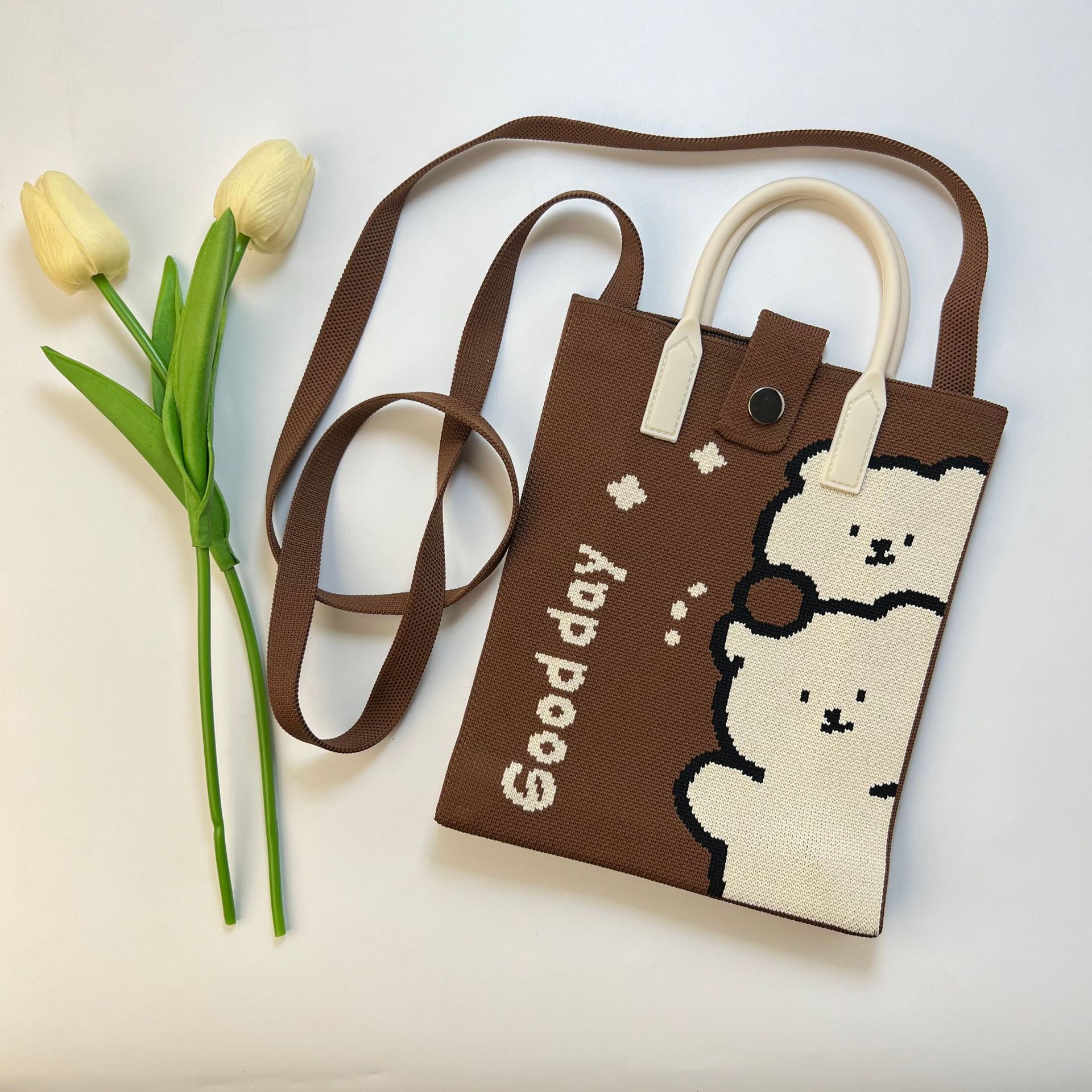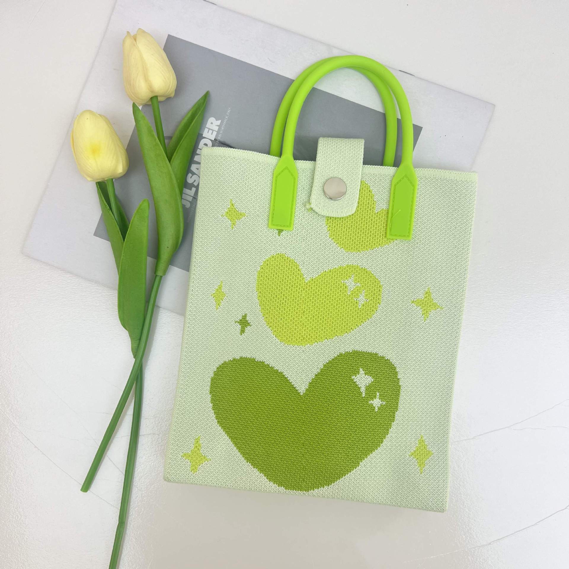 2024 새로운 도파민 만화 니트 휴대 전화 가방 여성 한국식 올 매치 숄더 백 크로스 바디 백 니트 핸드백