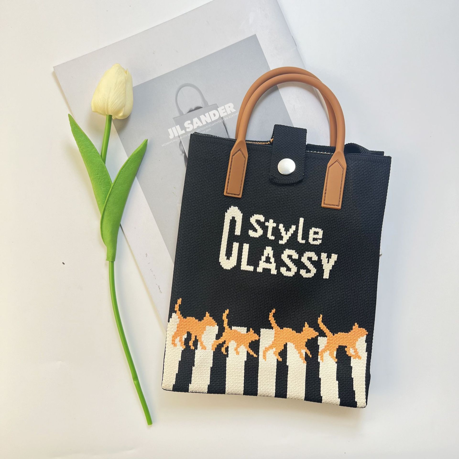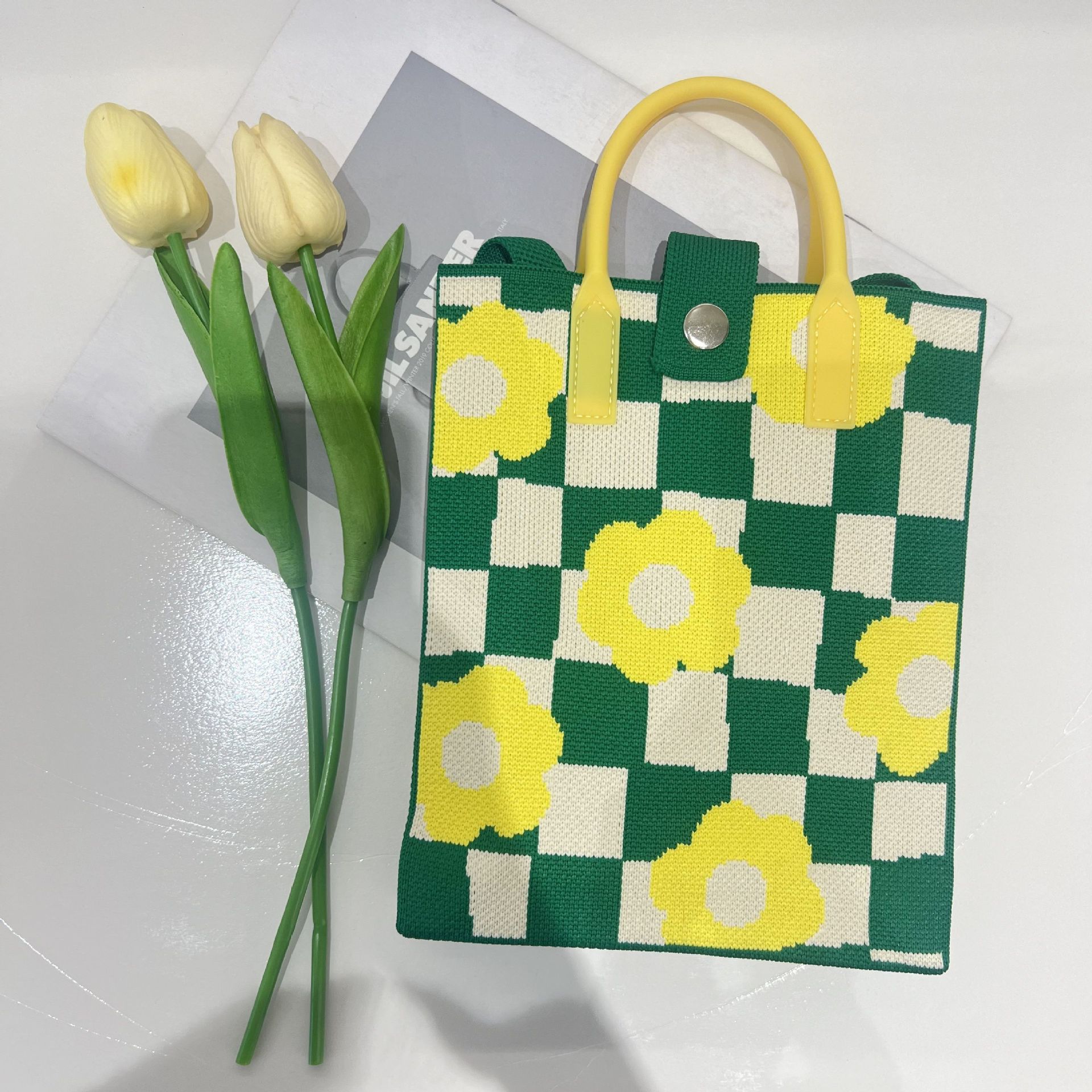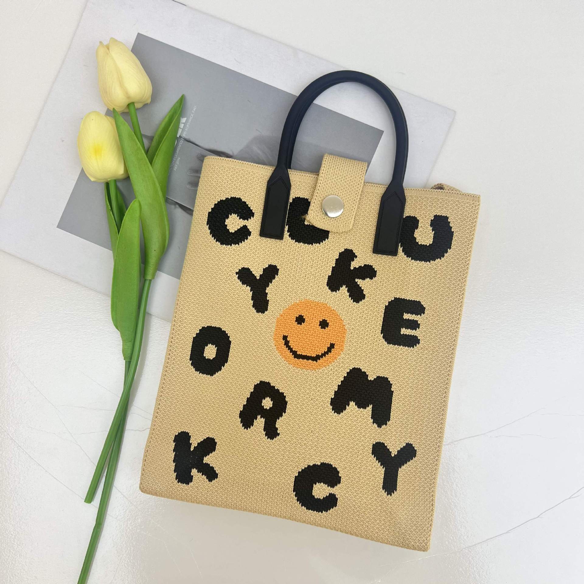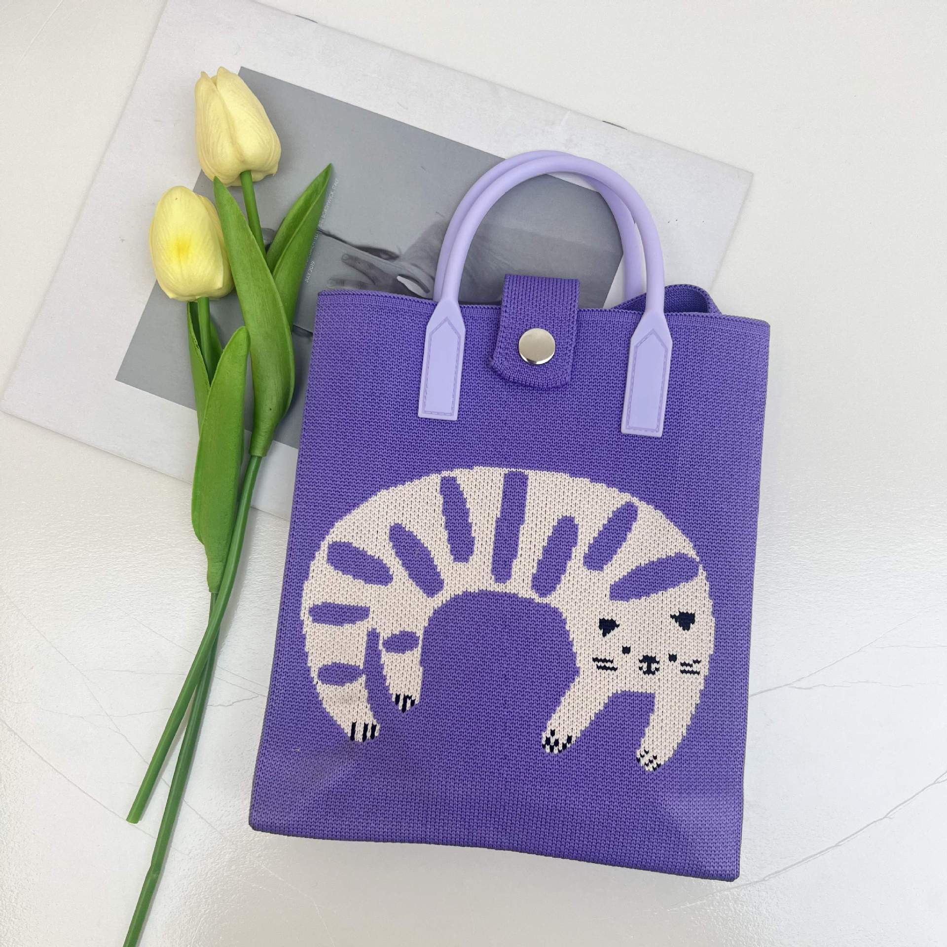 2024 새로운 도파민 만화 니트 휴대 전화 가방 여성 한국식 올 매치 숄더 백 크로스 바디 백 니트 핸드백