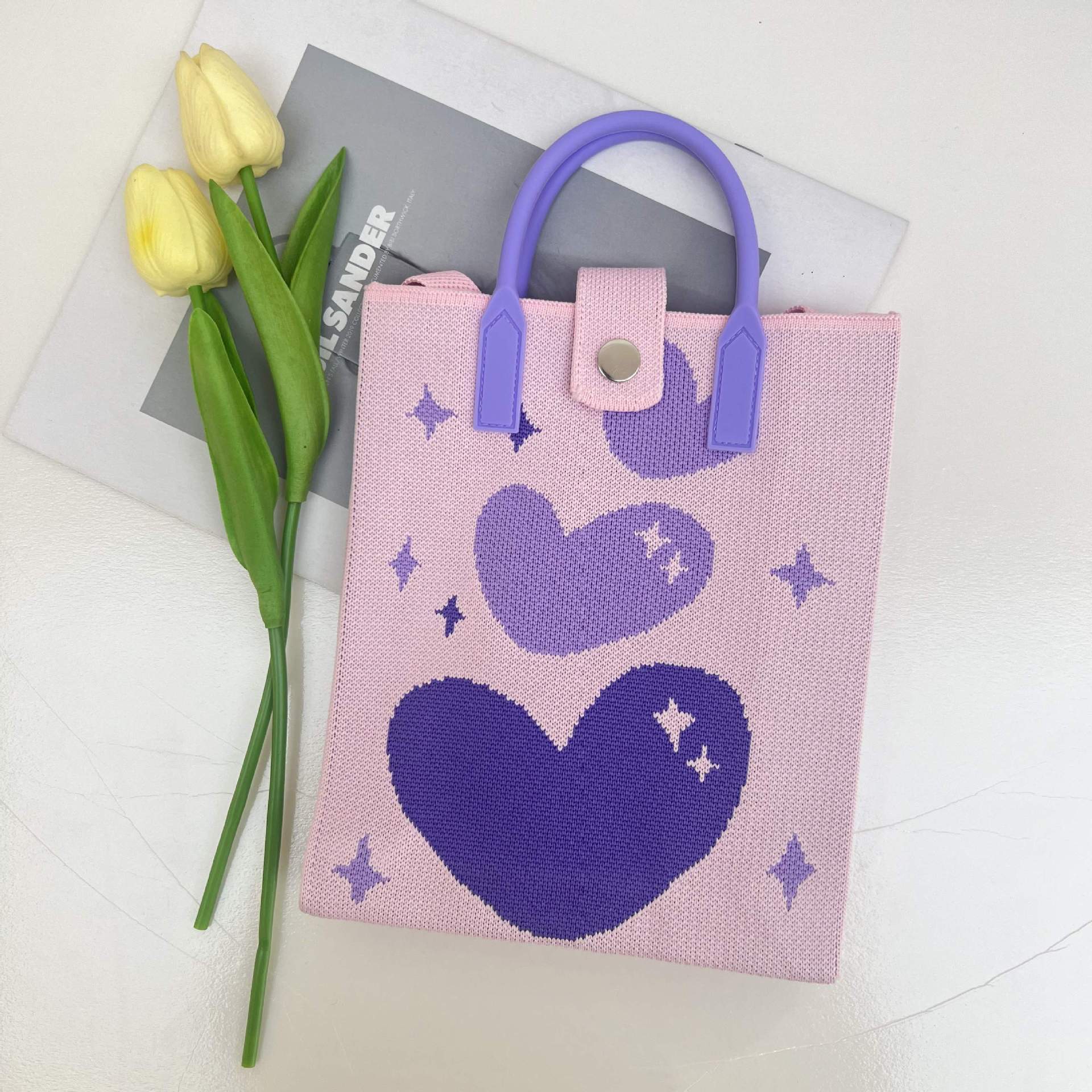 2024 새로운 도파민 만화 니트 휴대 전화 가방 여성 한국식 올 매치 숄더 백 크로스 바디 백 니트 핸드백스토어 가기