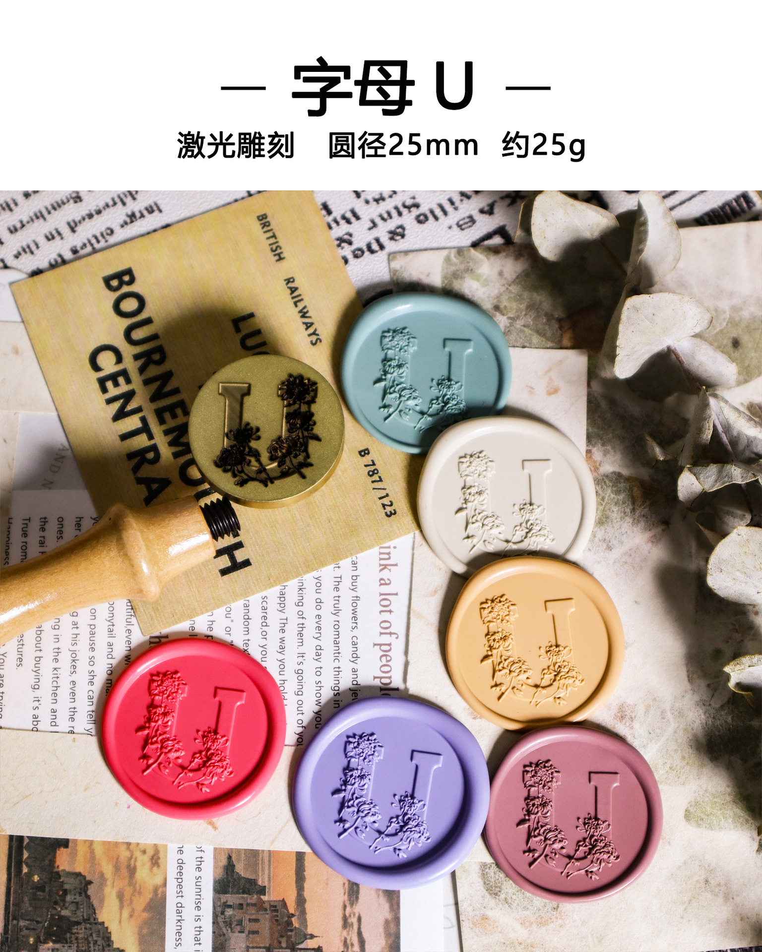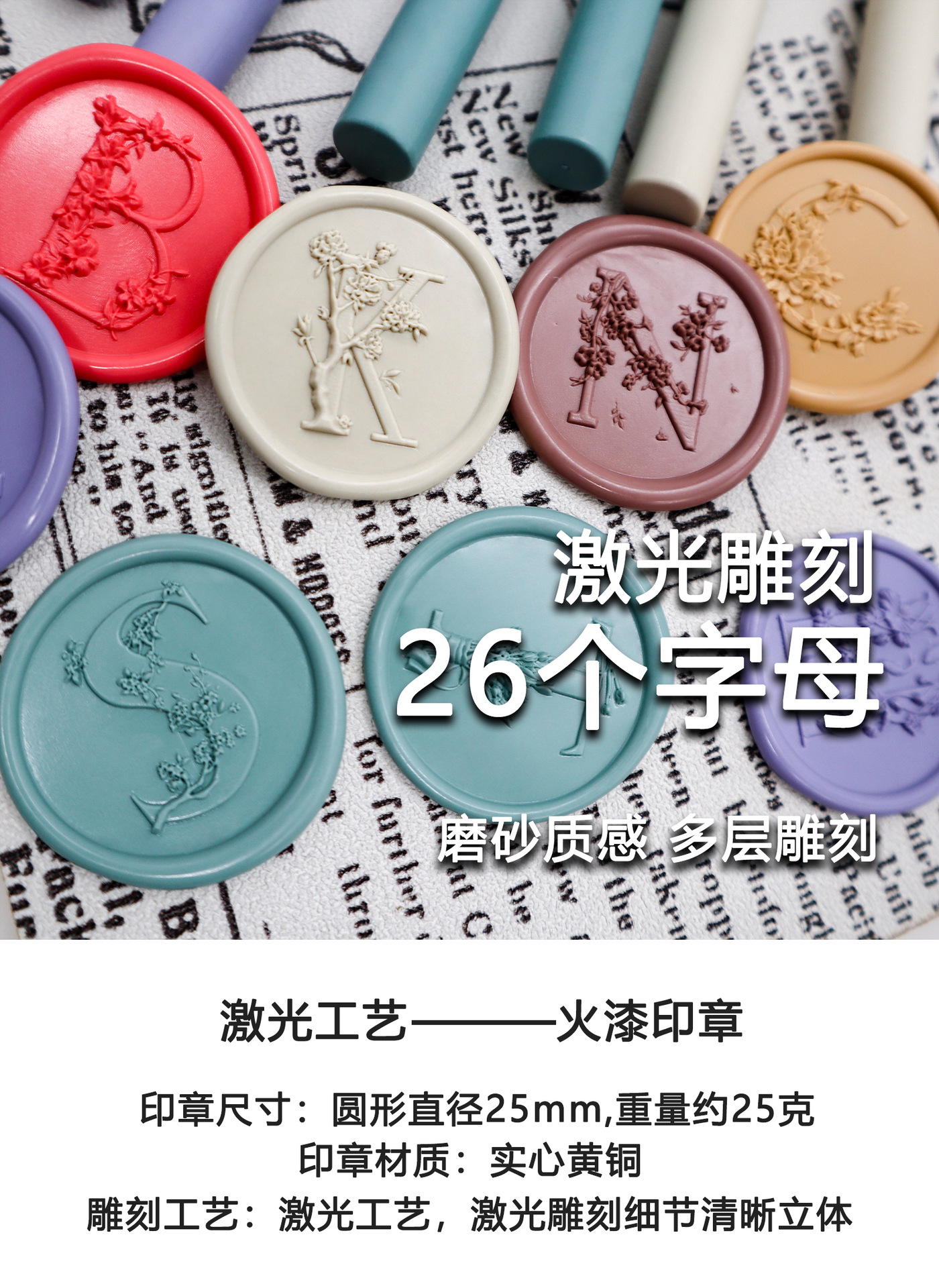 레이저 프로세스 화재 페인트 씰 26 글자 플랫 조각 프로스트 멀티 레이어 손 계정 황동 씰스토어 가기