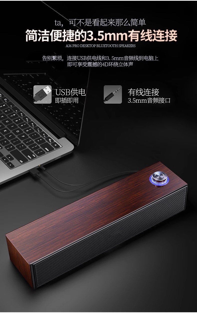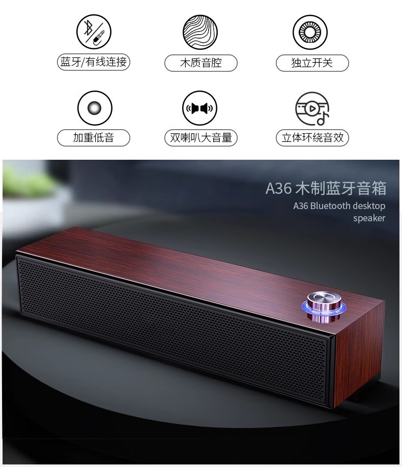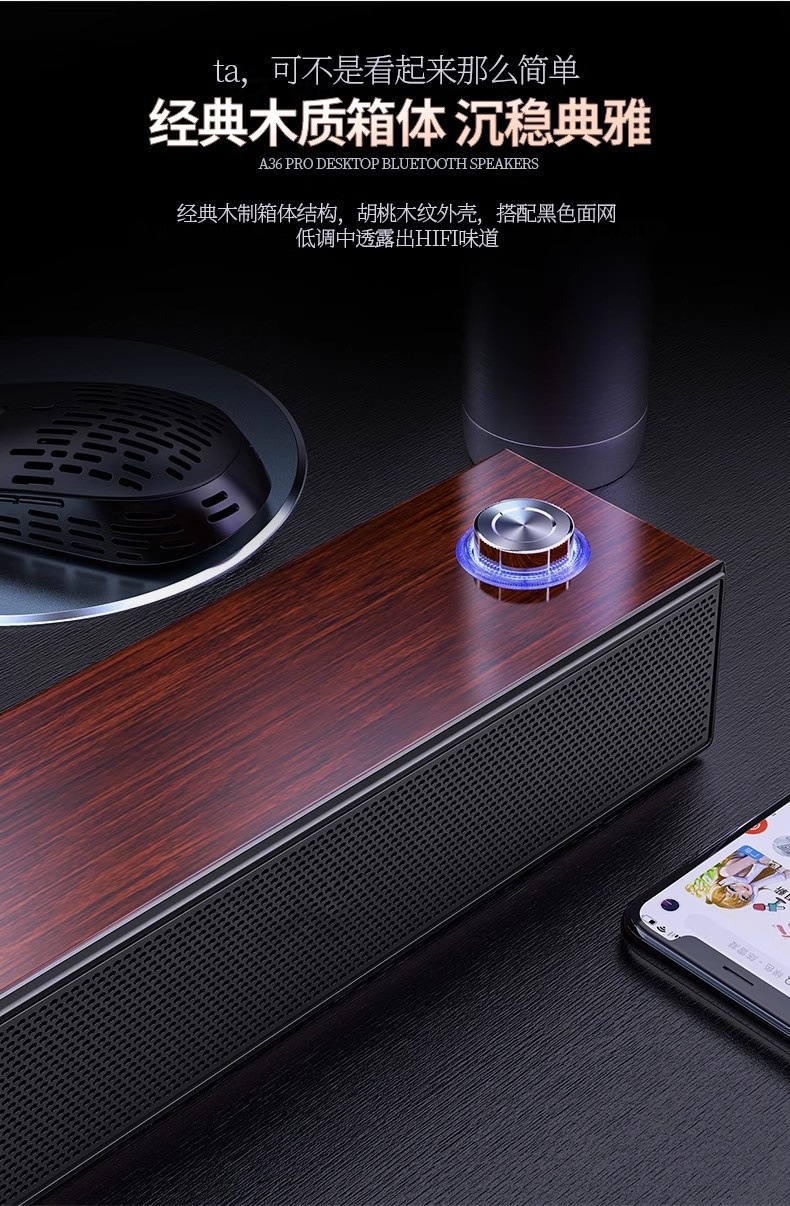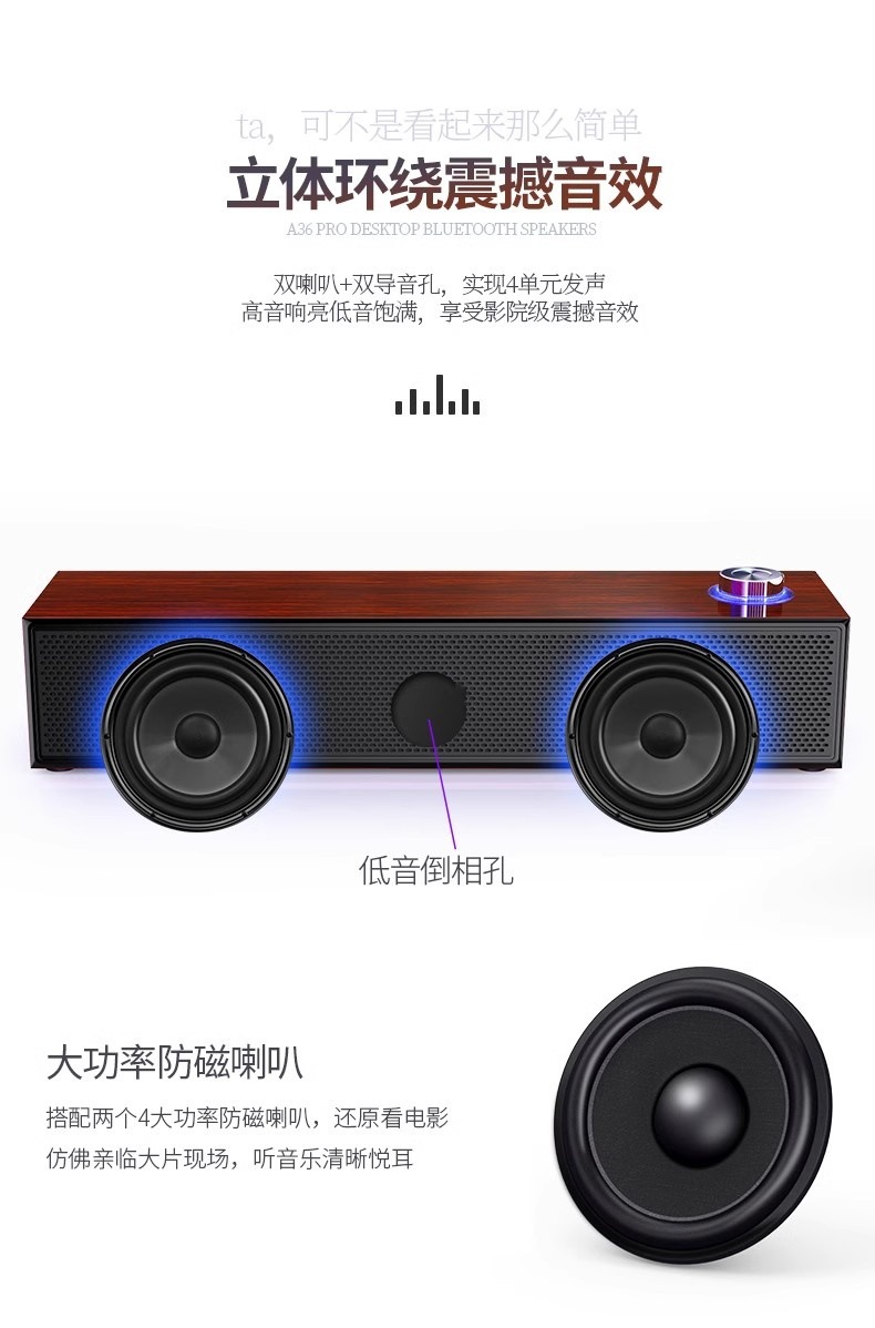 더블 혼 라이트 멀티미디어 오디오 블루투스 스피커 미니 우드 무거운 서브 우퍼 컴퓨터 데스크톱 노트북스토어 가기