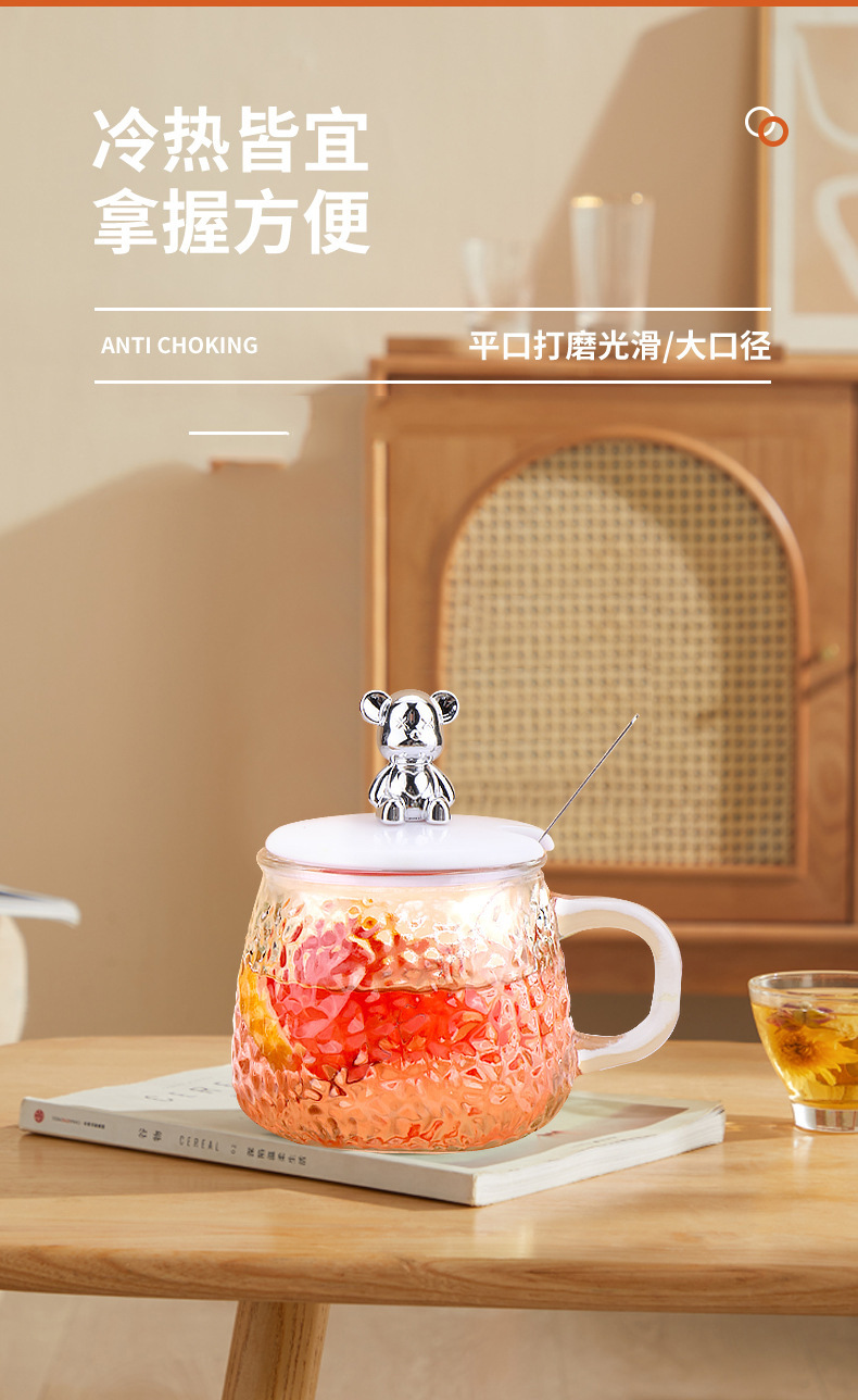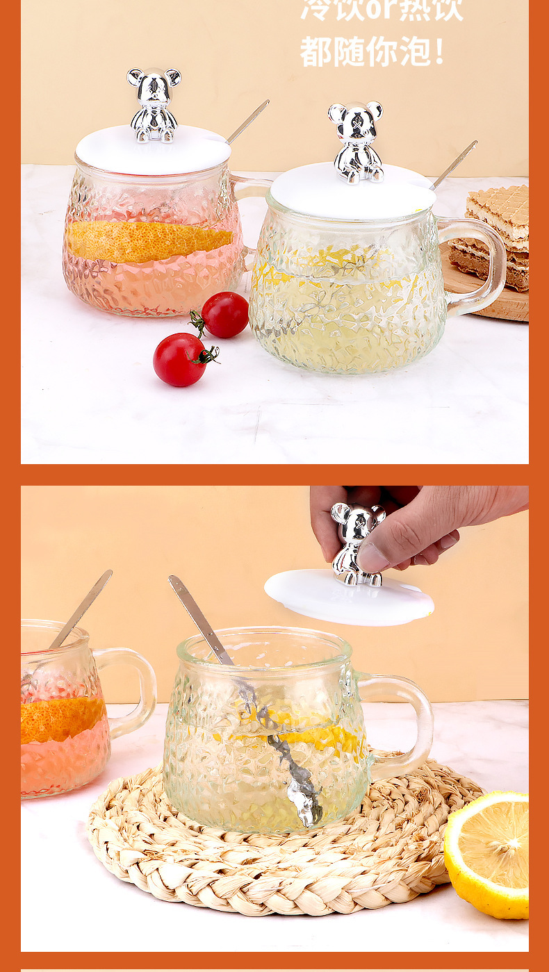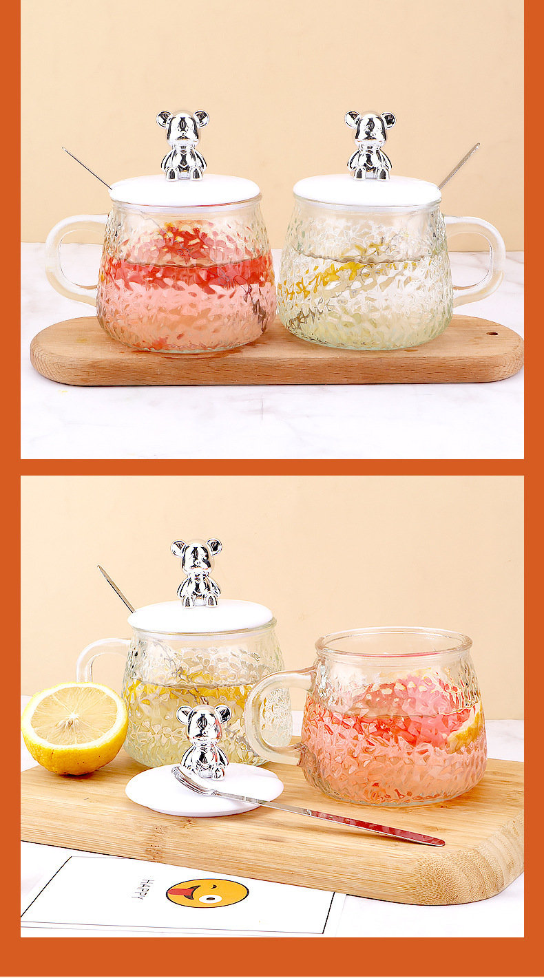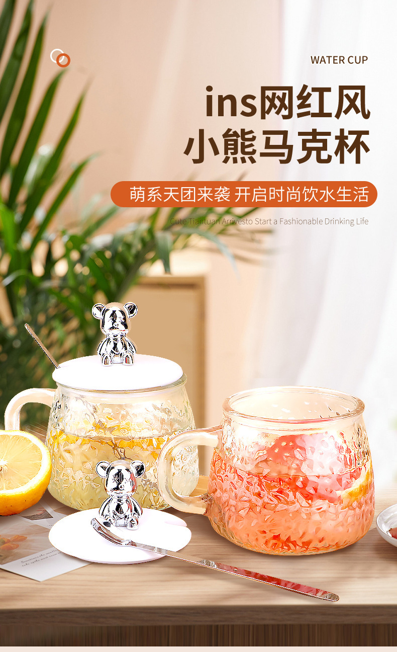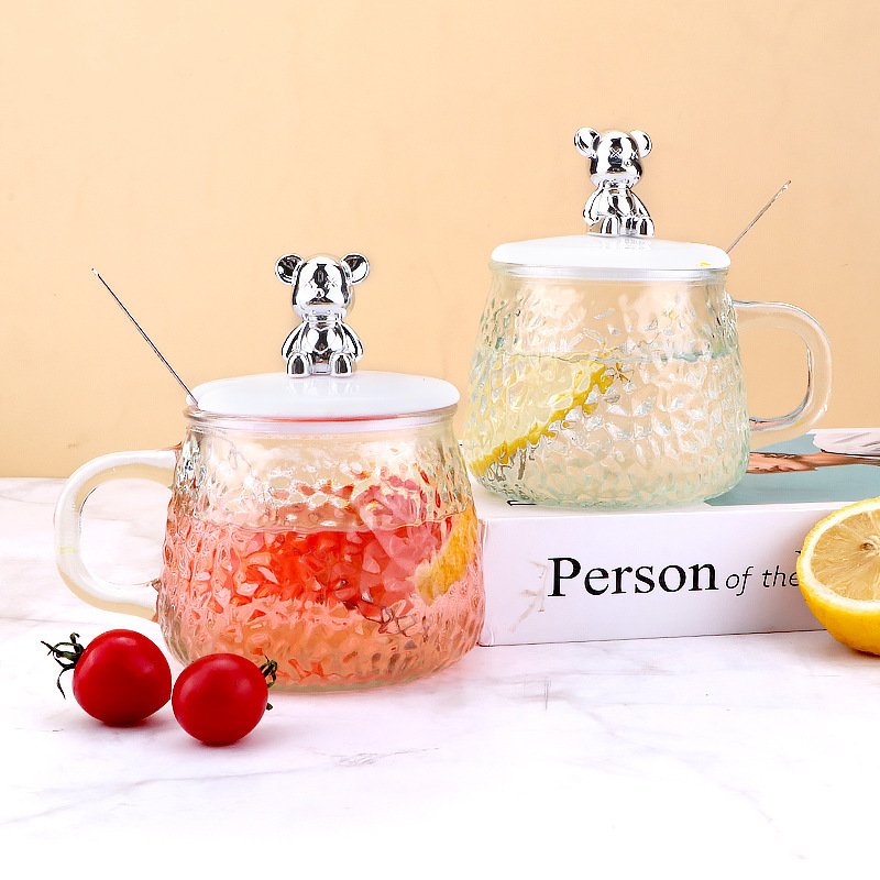 인터넷 유명인의 예쁜 곰돌이 유리컵, 고급스러운 물컵, 사무실 및 가정용 아침식사컵, 주스 및 커피컵스토어 가기
