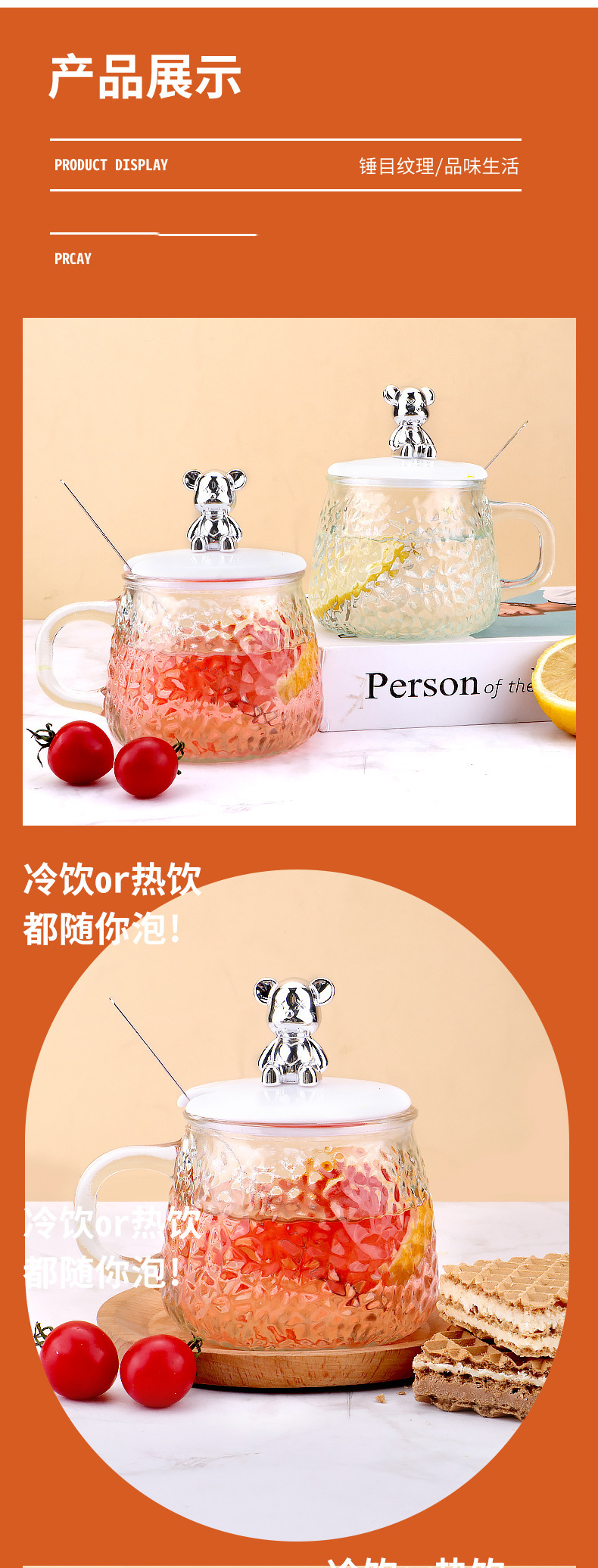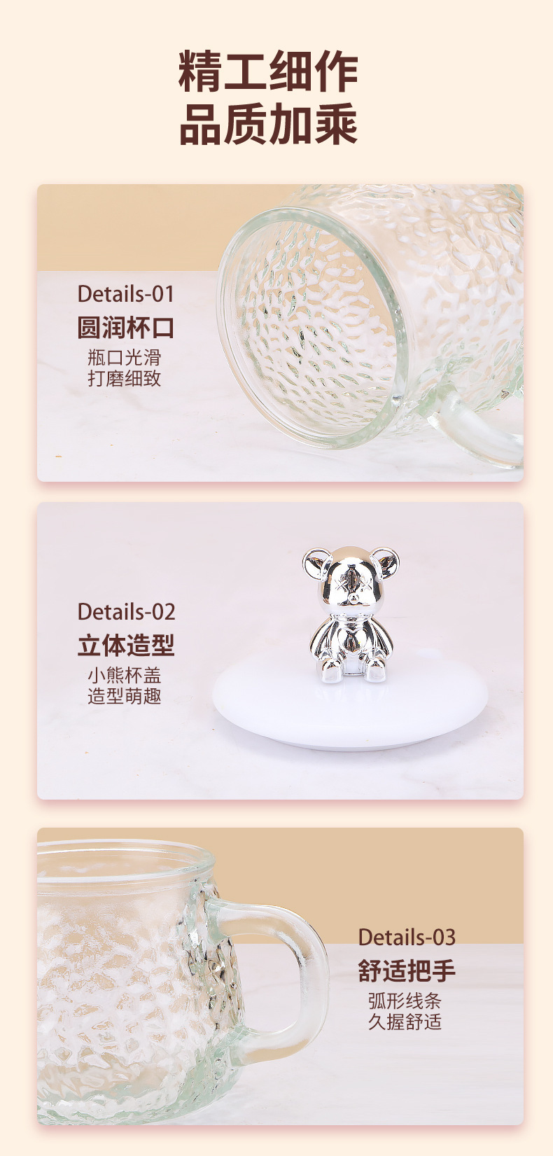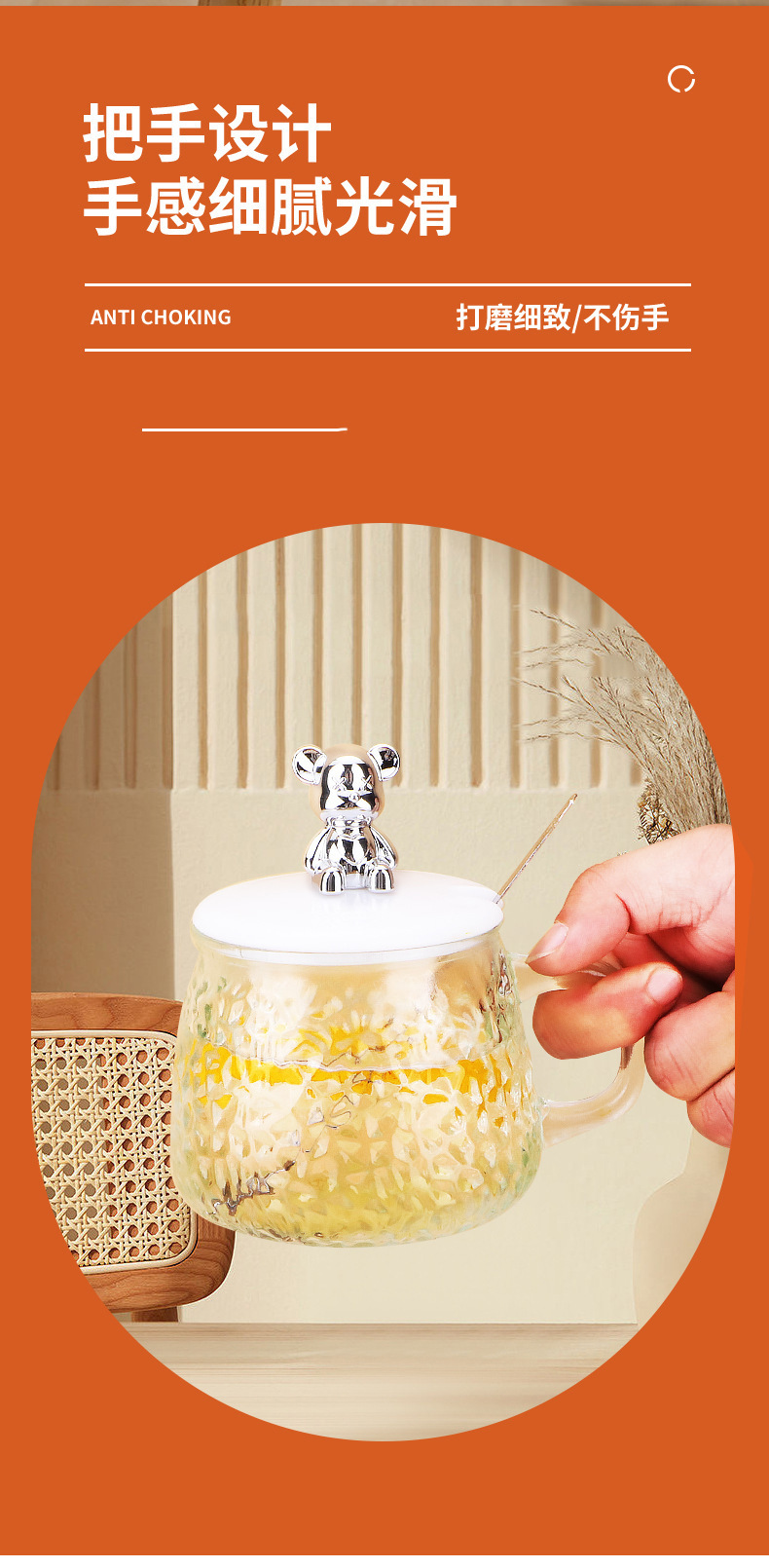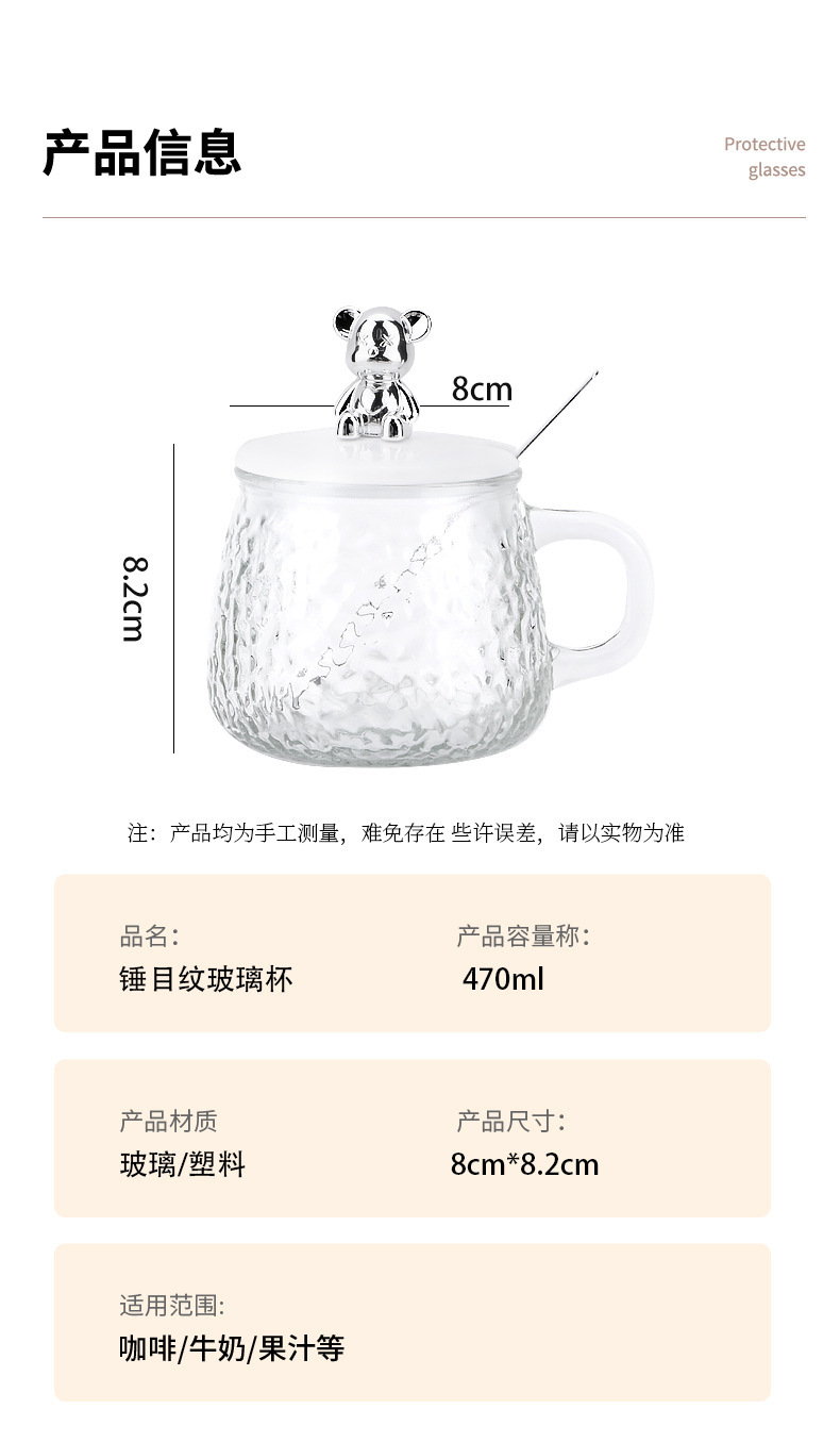 인터넷 유명인의 예쁜 곰돌이 유리컵, 고급스러운 물컵, 사무실 및 가정용 아침식사컵, 주스 및 커피컵스토어 가기