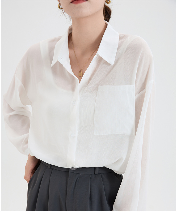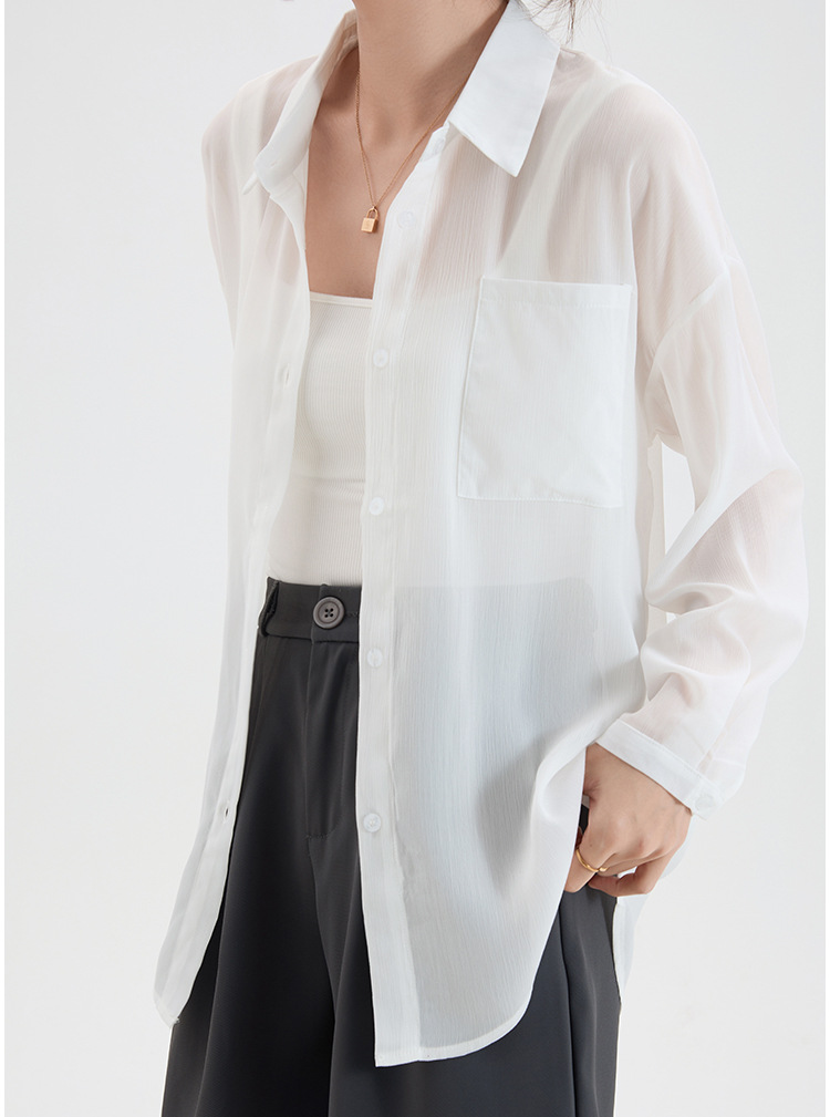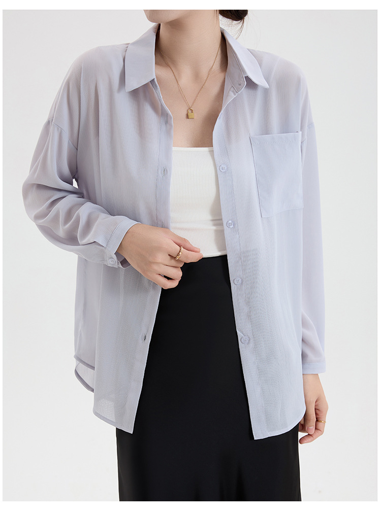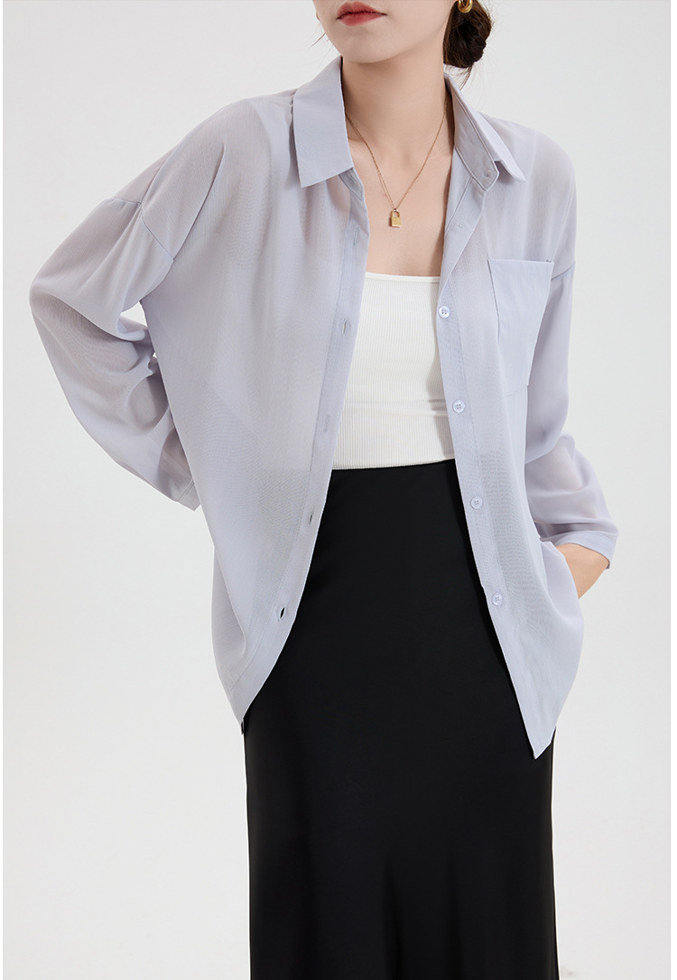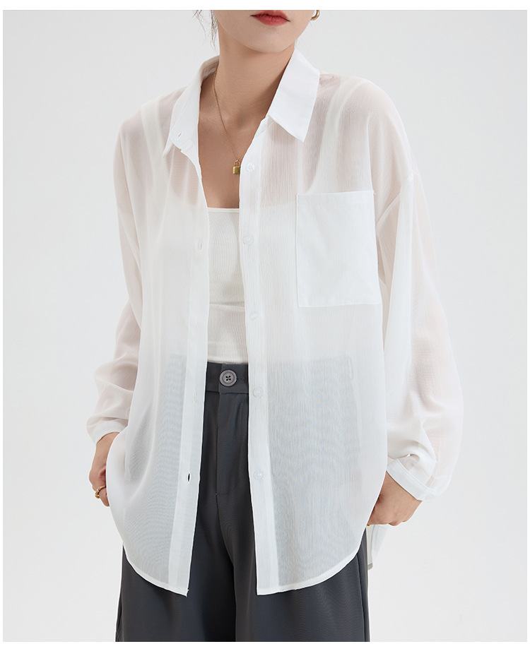 리얼 샷 여름 해변 휴일 화이트 셔츠 여성용 선스크린 셔츠 경량 외부 카디건 긴 소매 아이스 실크 셔츠 에어컨 셔츠